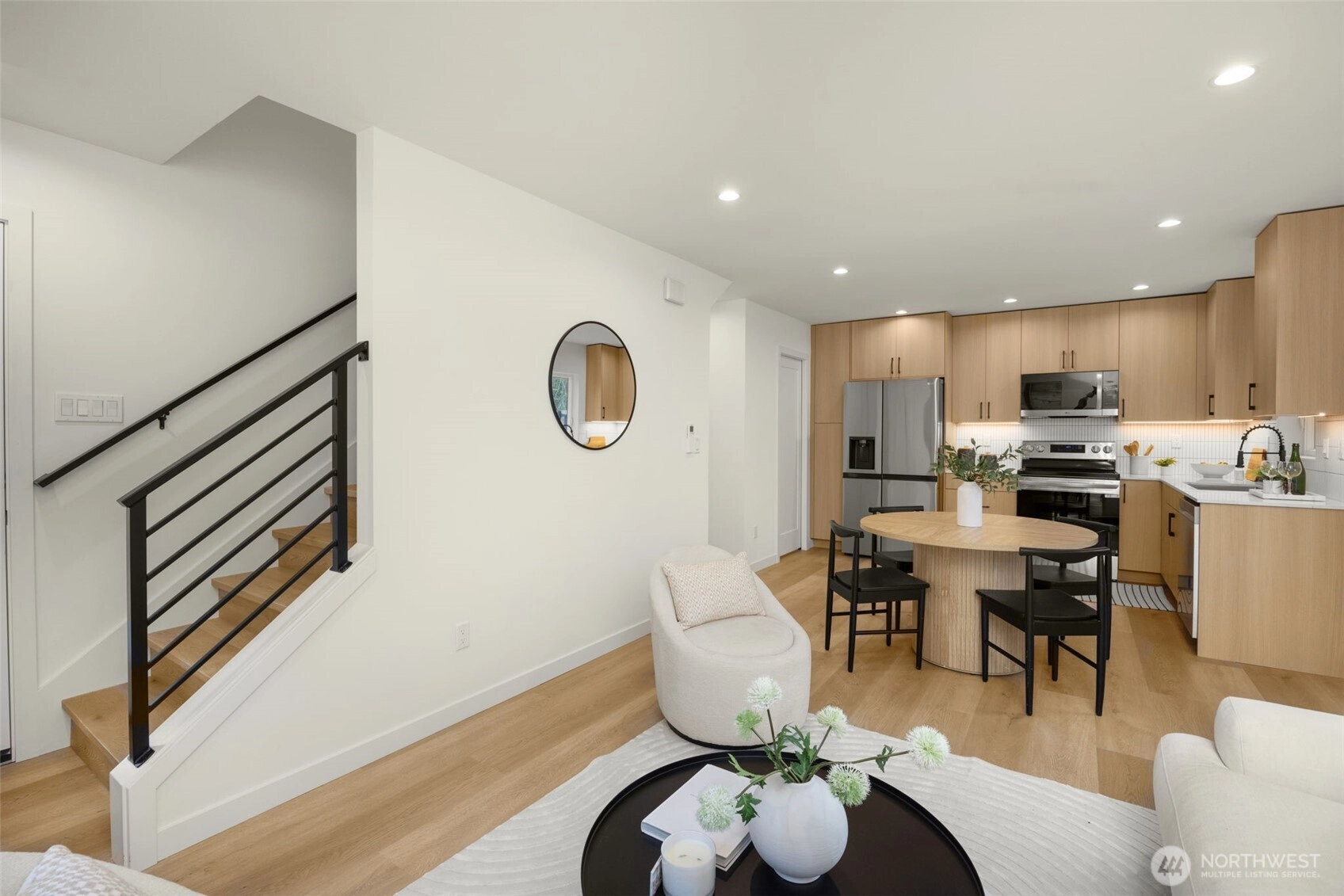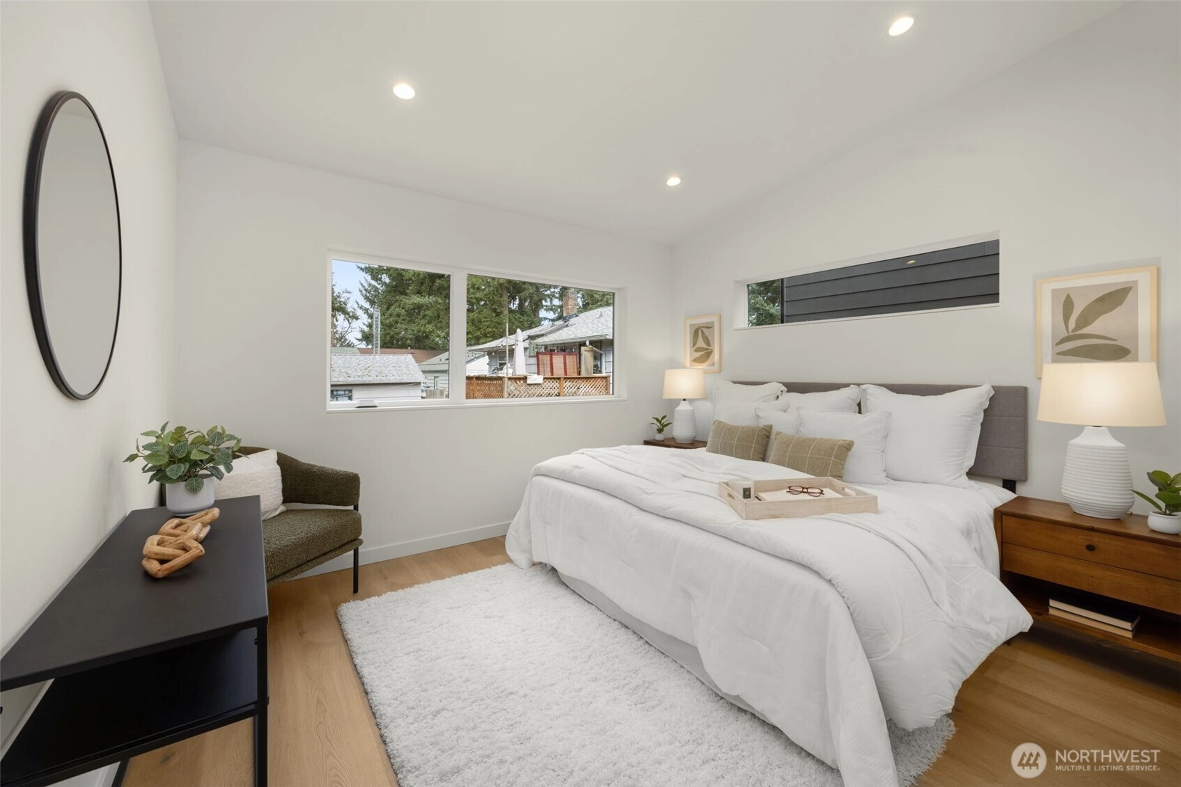 A standout, newly built 3-bedroom standalone DADU offering modern living and exceptional privacy in Haller Lake. This rare home perfectly blends space and functionality. The open-concept main level is ideal for entertaining, featuring bright areas, contemporary finishes, and a well-designed kitchen with sleek cabinetry and stainless steel appliances. Upstairs, the large primary suite is a true retreat with a generous layout and walk-in closet. Two flexible bedrooms suit guests, an office, or hobbies. Enjoy the unique benefit of a full private yard for gardening, pets, or outdoor hangouts. A dedicated garage along with an additional parking spot provides convenience and storage—a very uncommon perk for a DADU here! This home offers comfort, privacy, and accessibility. Garage comes EV-Ready as well!