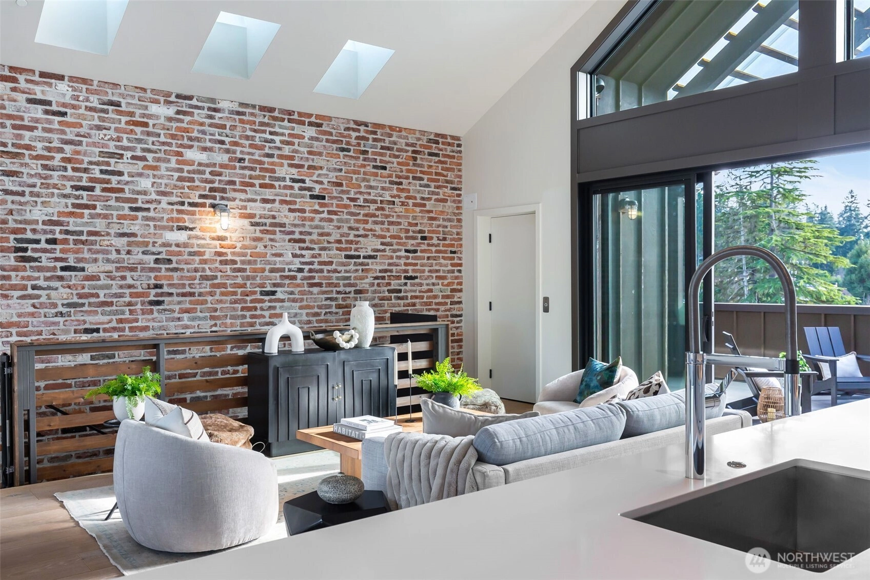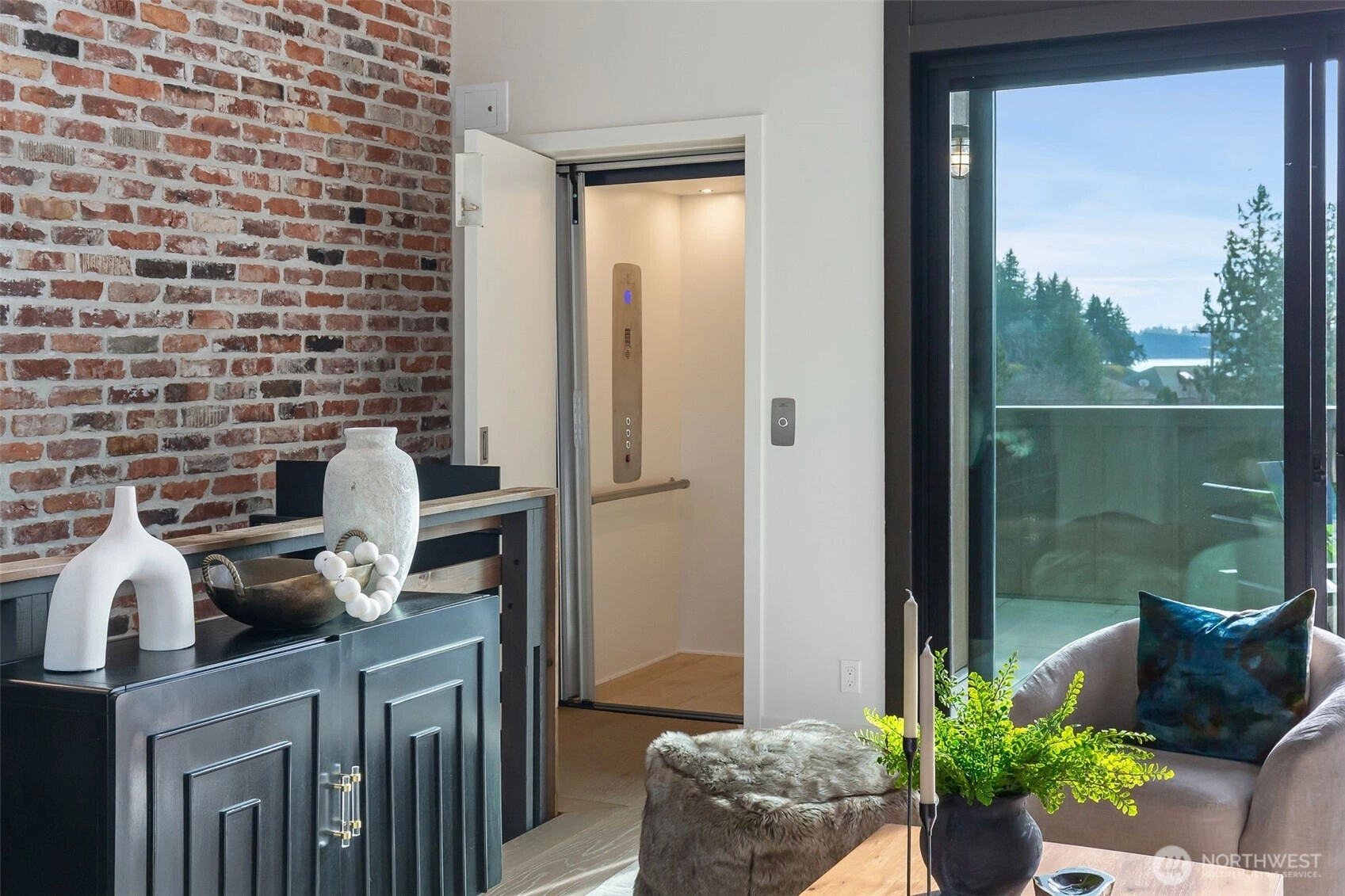 Discover the pinnacle of island sophistication in this sun-drenched, loft-inspired townhome within the acclaimed Roost community. Serviced by a private elevator the residence flows seamlessly across three levels of architectural excellence. The interior radiates a Scandinavian aesthetic, featuring soaring vaulted ceilings, reclaimed brick accents, and expansive Pella sliders that frame views of Rich Passage. The heart of the home is an entertainer’s dream, anchored by a chef’s kitchen with a massive quartz waterfall island and premium Bosch appliances. Step out onto the covered deck to enjoy year-round alfresco living by the fire pit while watching ferries glide past. The primary suite offers a spa-like escape with heated floors and a deep soaking tub, while "Level 5" finishes throughout provide a gallery-quality backdrop for your art collection. Located just steps from the vibrant Lynwood Center, Pleasant Beach Village, and a nearby playground, you are perfectly positioned to enjoy historic cinema, coffee, wine tasting, and live music, along with the scenic trails of both Fort Ward and Gazzam Lake—all while dipping your toes in the Sound each evening at sunset. This is more than a home; it is an effortless, luxurious retreat in the heart of Bainbridge Island’s most walkable enclave.