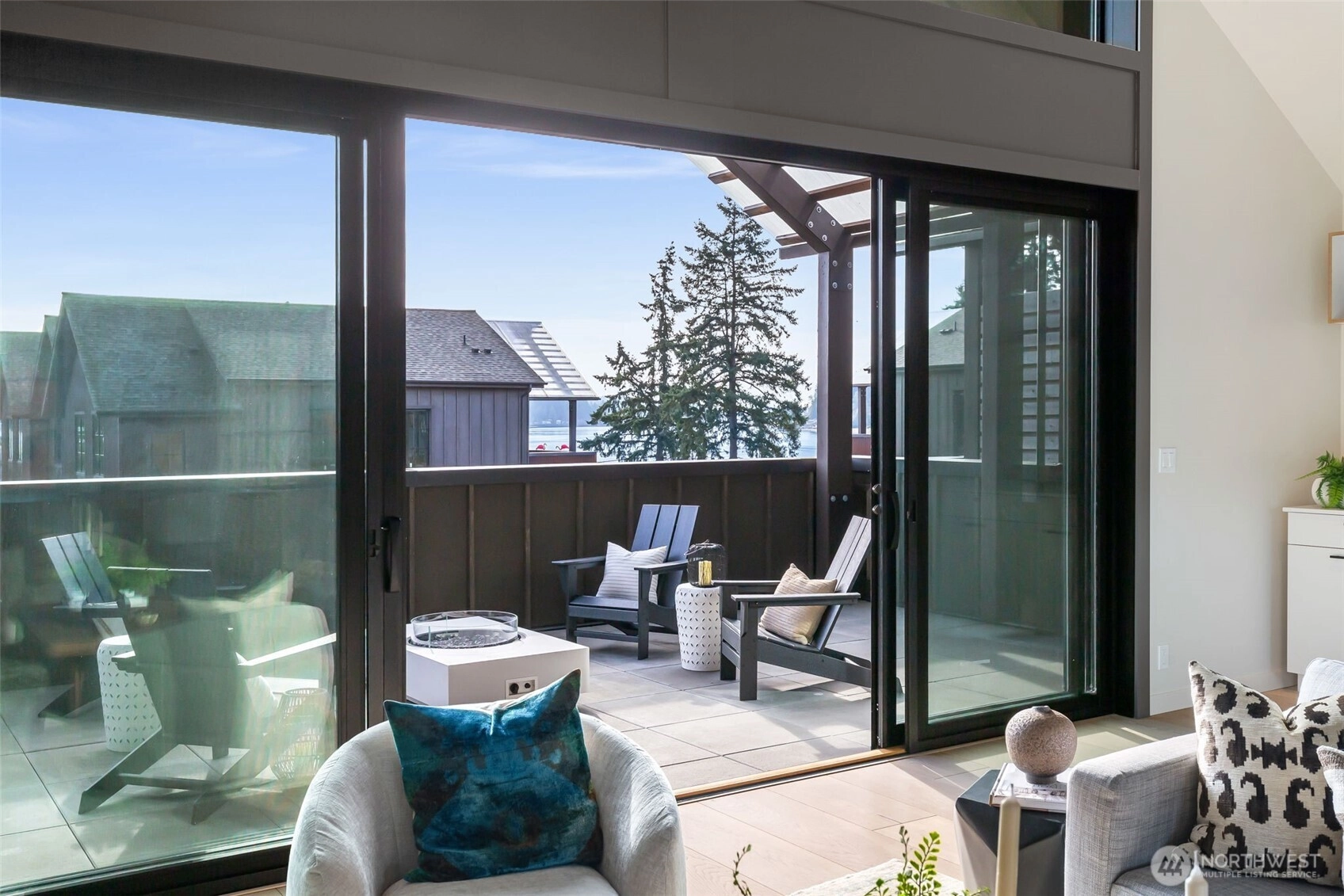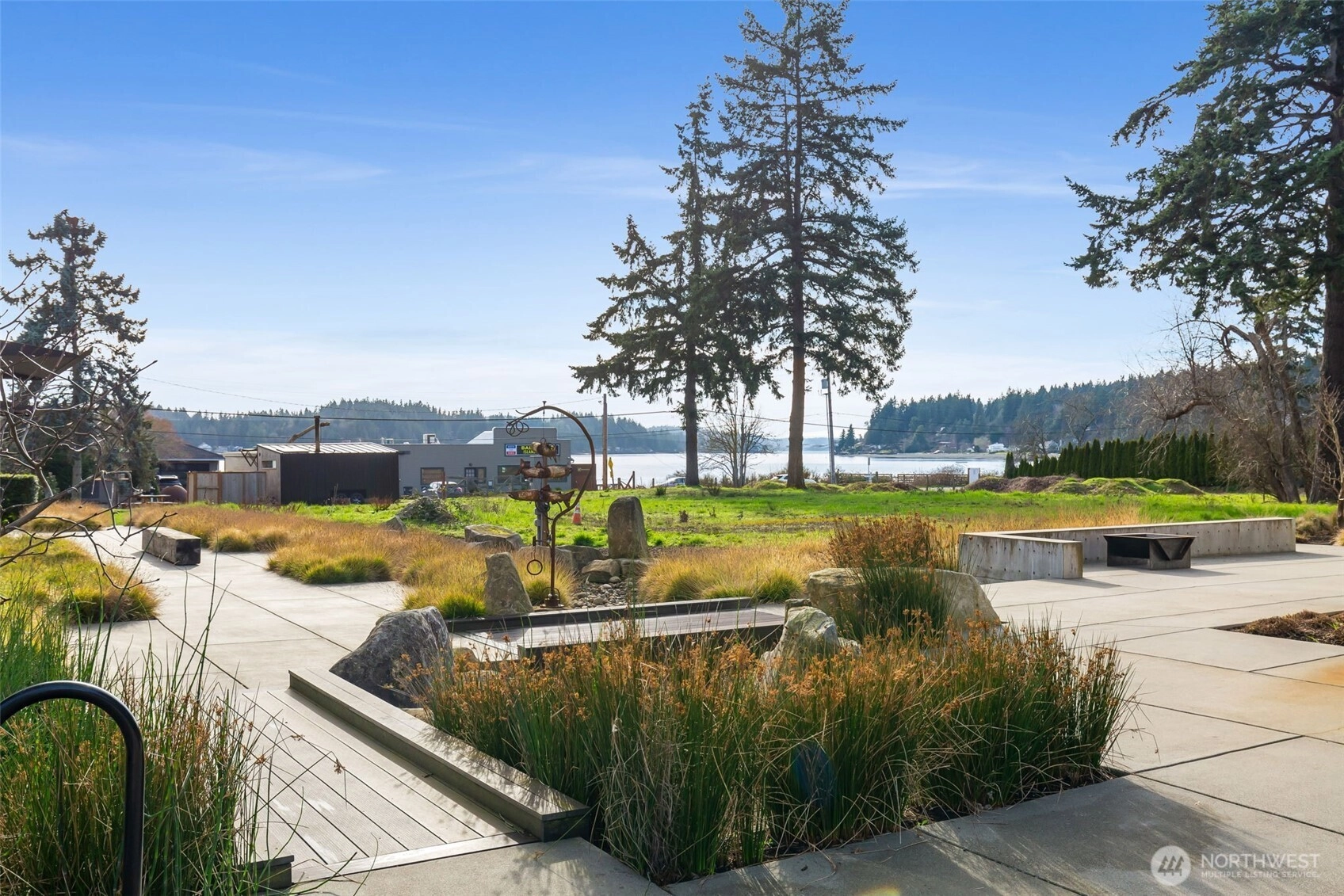 Discover the pinnacle of island sophistication in this sun-drenched, loft-inspired townhome within the acclaimed Roost community. Serviced by a private elevator the residence flows seamlessly across three levels of architectural excellence. The interior radiates a Scandinavian aesthetic, featuring soaring vaulted ceilings, reclaimed brick accents, and expansive Pella sliders that frame views of Rich Passage. The heart of the home is an entertainer’s dream, anchored by a chef’s kitchen with a massive quartz waterfall island and premium Bosch appliances. Step out onto the covered deck to enjoy year-round alfresco living by the fire pit while watching ferries glide past. The primary suite offers a spa-like escape with heated floors and a deep soaking tub, while "Level 5" finishes throughout provide a gallery-quality backdrop for your art collection. Located just steps from the vibrant Lynwood Center, Pleasant Beach Village, and a nearby playground, you are perfectly positioned to enjoy historic cinema, coffee, wine tasting, and live music, along with the scenic trails of both Fort Ward and Gazzam Lake—all while dipping your toes in the Sound each evening at sunset. This is more than a home; it is an effortless, luxurious retreat in the heart of Bainbridge Island’s most walkable enclave.