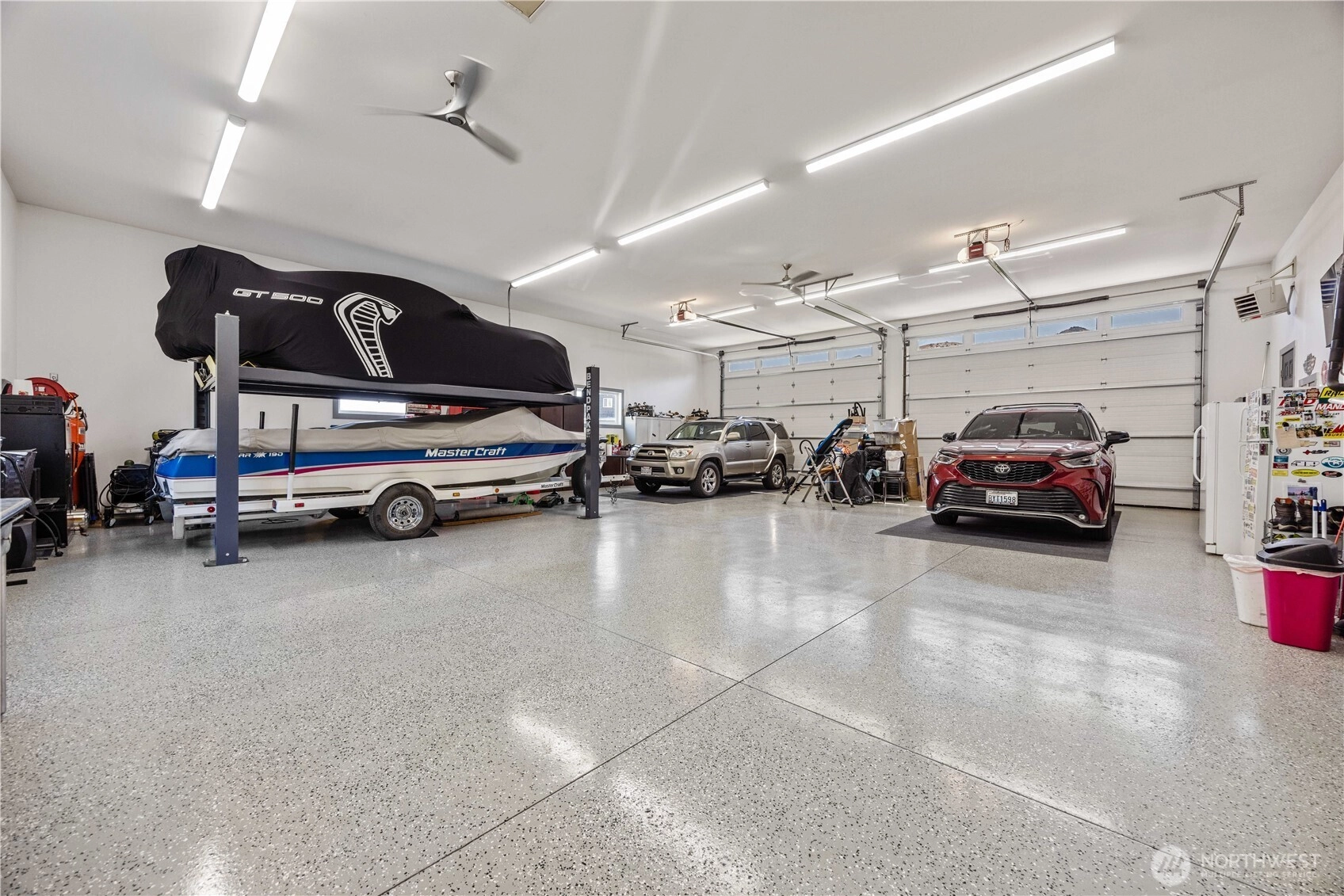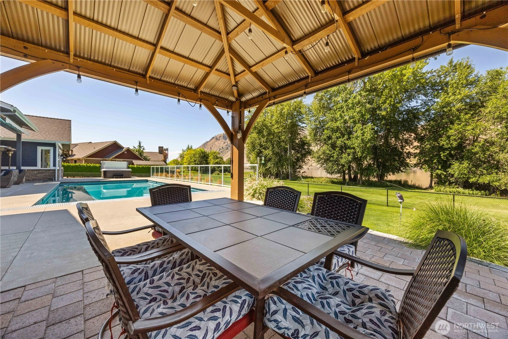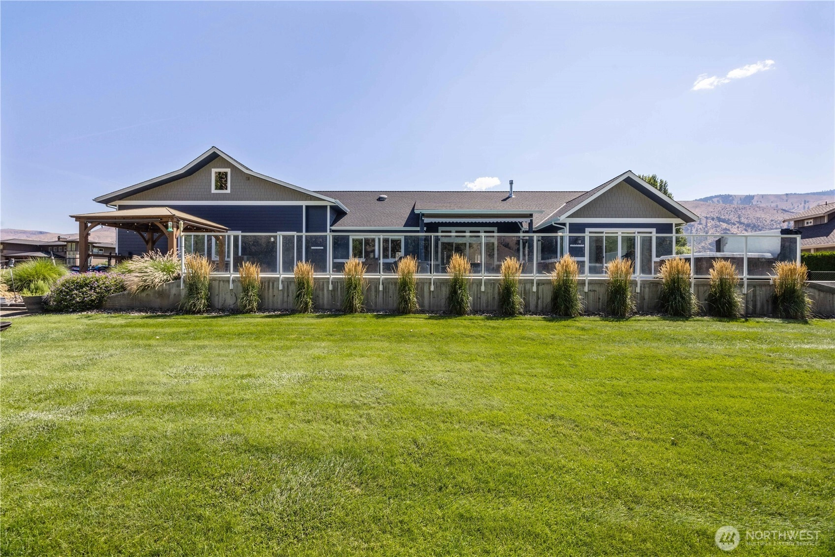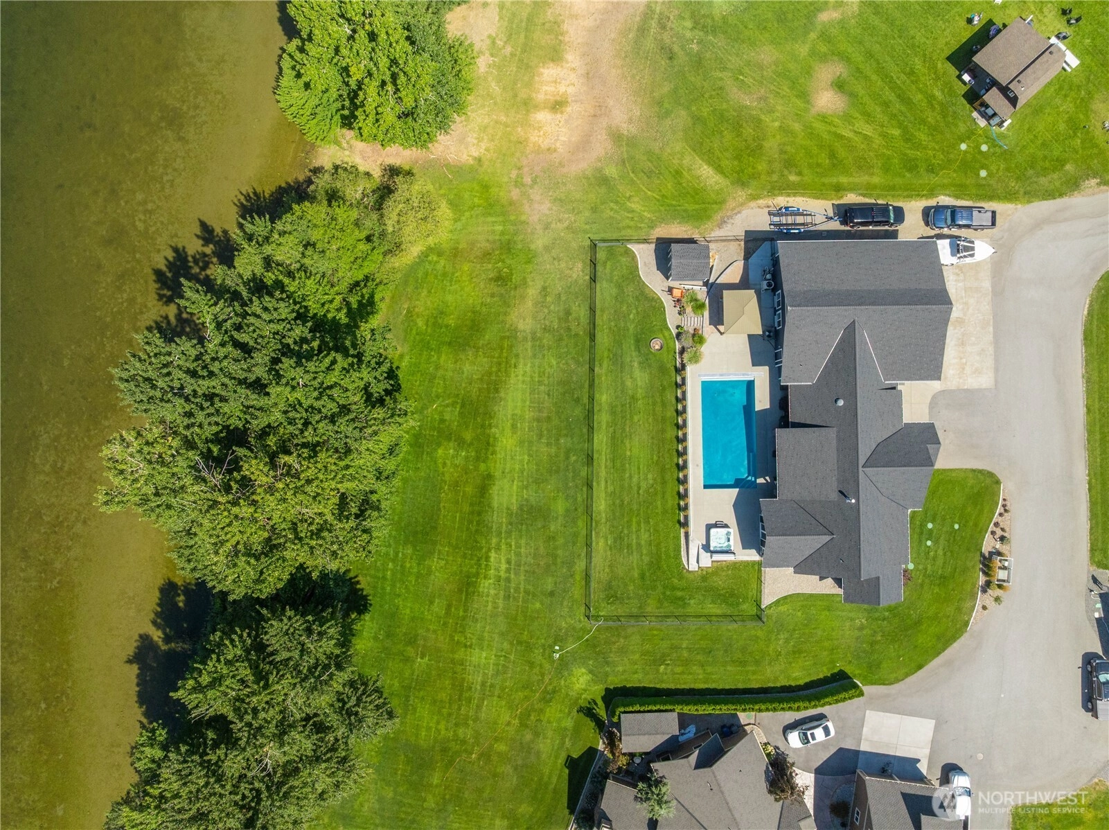 Discover this lovely unique custom-built 4 bedroom 2 ½ bath home that sits on a full acre with a 140’ of no bank waterfront. This one level home was finished in 2018 and has exquisite architecture. Inside you’ll find 12-ft-vaulted ceilings, beautiful LVP flooring, Hunter Douglas blinds with black out blinds in the bedrooms, and lifetime Milgard windows. Enjoy the view of the river, hills and soaring eagles through the sliding doors from the open concept great room, which also has a gas fireplace. The Chef’s kitchen is a dream with Thermador appliances – double ovens, 6-burner gas cooktop, custom built cabinets, granite countertops, a large center island with prep sink and a built in KitchenAid cabinet lift. The primary suite has a walk-in shower, heated floors and sliding doors leading to the patio where you’ll find a hot tub and beautiful 18’ x 36’ gunite swimming pool with a brand-new auto cover. Included on the patio deck is an extendable awning for shade and cabana for entertaining. Don’t miss the 1840 sq foot heated and cooled shop/garage with special features that include 18’w x 12’h doors, a car lift, air compressor, epoxy floors and 46’ x 10’ overhead storage. A detached large garden shed also sits on the property. The fully irrigated grassy yard leads to the water’s edge, and just a short walk from there, you’ll find the community dock which includes a spot for each owner.