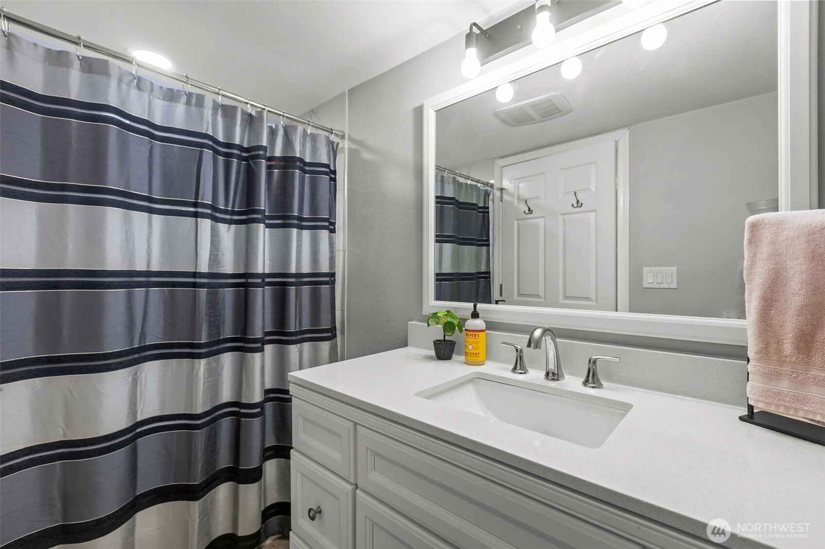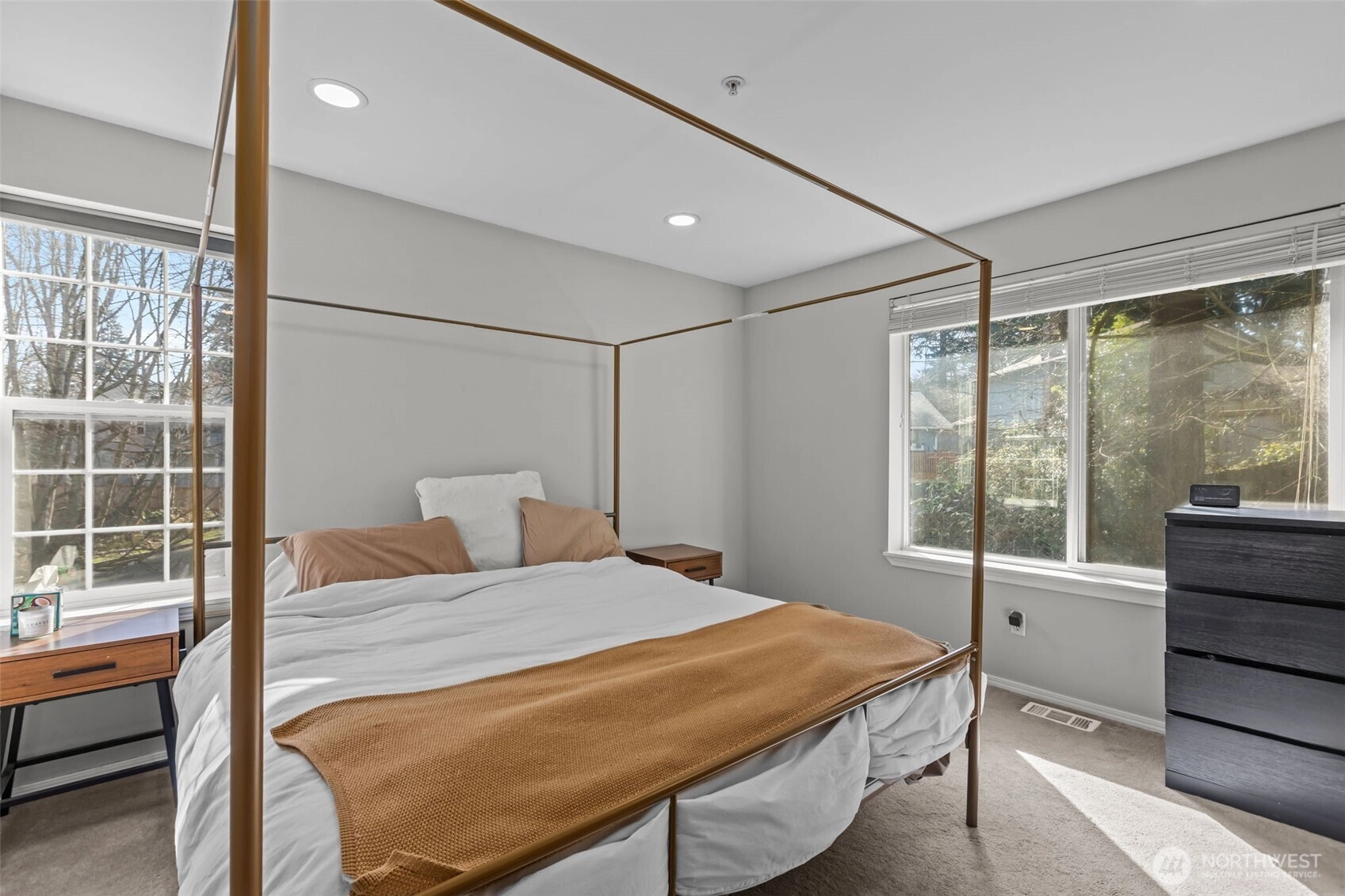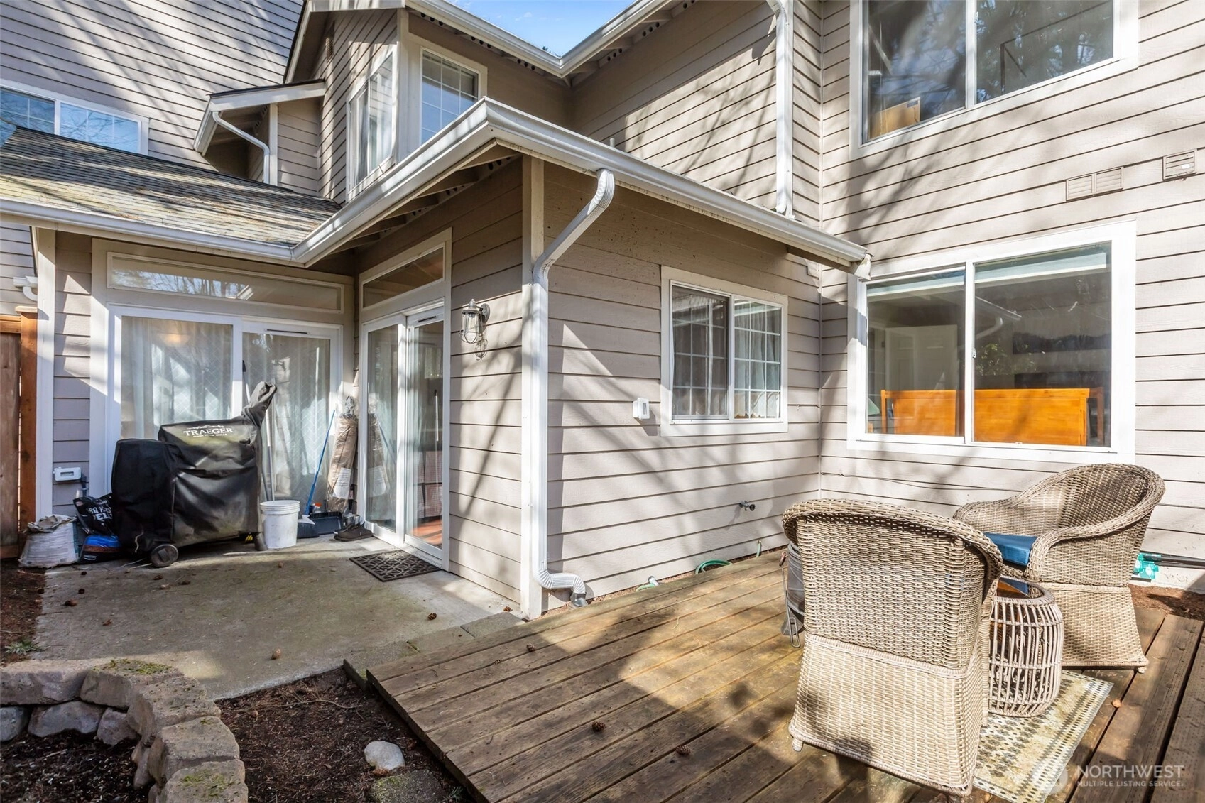 Beautifully renovated and move-in ready, this Edmonds townhome blends thoughtful updates with a flexible floor plan in an unbeatable location. The entire home has been replumbed with PEX and upgraded with recessed lighting, quartz countertops, and stylish tile in the kitchen and baths. Renovated bathrooms add a fresh, modern feel throughout. The light-filled living room features a cozy gas fireplace and flows seamlessly into the open-concept kitchen and dining area—perfect for entertaining or everyday living. The main level also offers a generously sized bedroom with a full bath and a versatile flex space that could easily be converted back to a garage if desired. Upstairs, you’ll find two spacious primary suites, each with its own ensuite bath—ideal for guests, multigenerational living, or a work-from-home setup. Step outside to a large, fully fenced patio surrounded by a private, wooded backdrop—your own peaceful retreat. Enjoy two dedicated parking spaces plus ample guest parking. New roof as of 2020. Ideally located near Meadowdale Beach Park and the Bowl of Edmonds, with easy access to transit, shopping, and dining. Situated within the highly desirable Mukilteo School District, this home offers the perfect balance of comfort, convenience, and lifestyle. Welcome home!