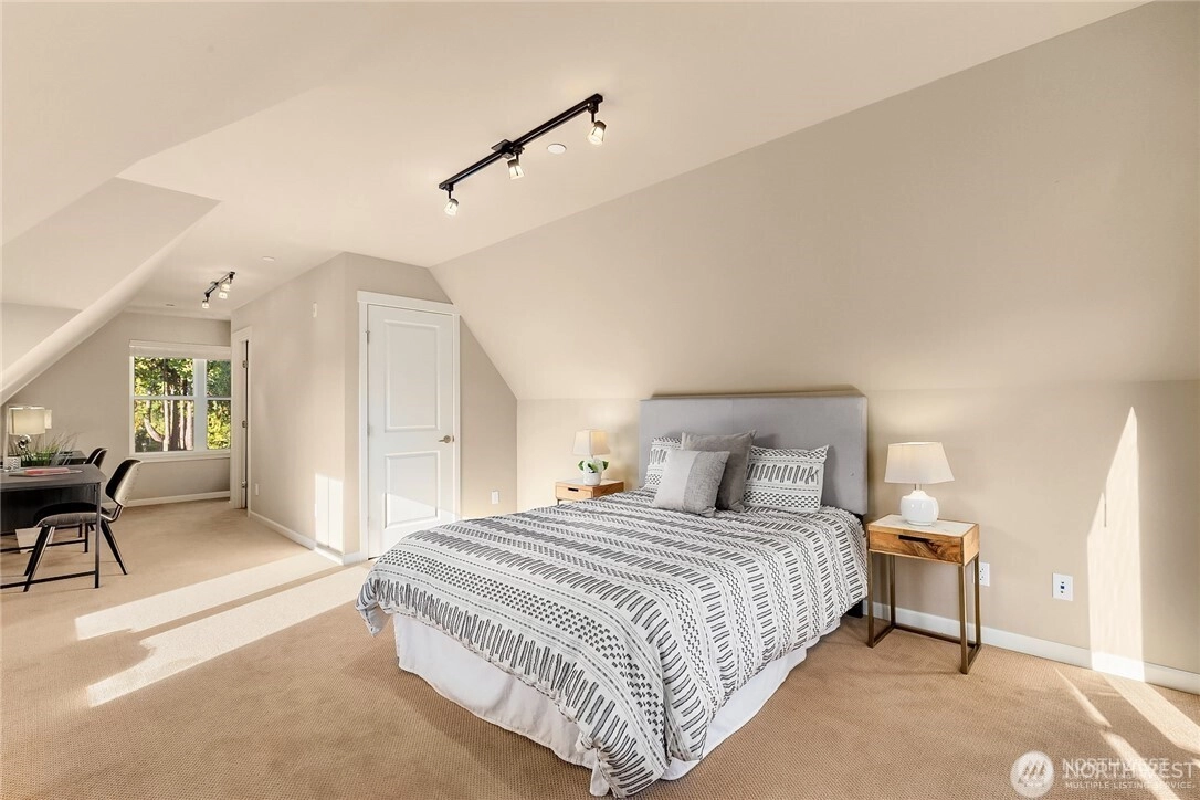 Newly Reduced Price!! Meticulously maintained front end-unit townhouse just blocks away from Main Street, parks and DT Bellevue. This complex features a private courtyard and secured parking garage with direct access to the unit. Open kitchen with island and slab granite counters. Family room with stacked stone gas fireplace and large picture windows. Retreat to the primary suite with attached bath and walk-in closet. Second bedroom with attached bath over looking the courtyard. Spacious 3rd bedroom on the upper level with private balcony and walk-in closet. Lower level bonus room perfect for entertaining. Fresh paint throughout, private parking can easily add EV charger, and forced-air w/ A/C. No rental cap. Experience all DT Bellevue has to offer.