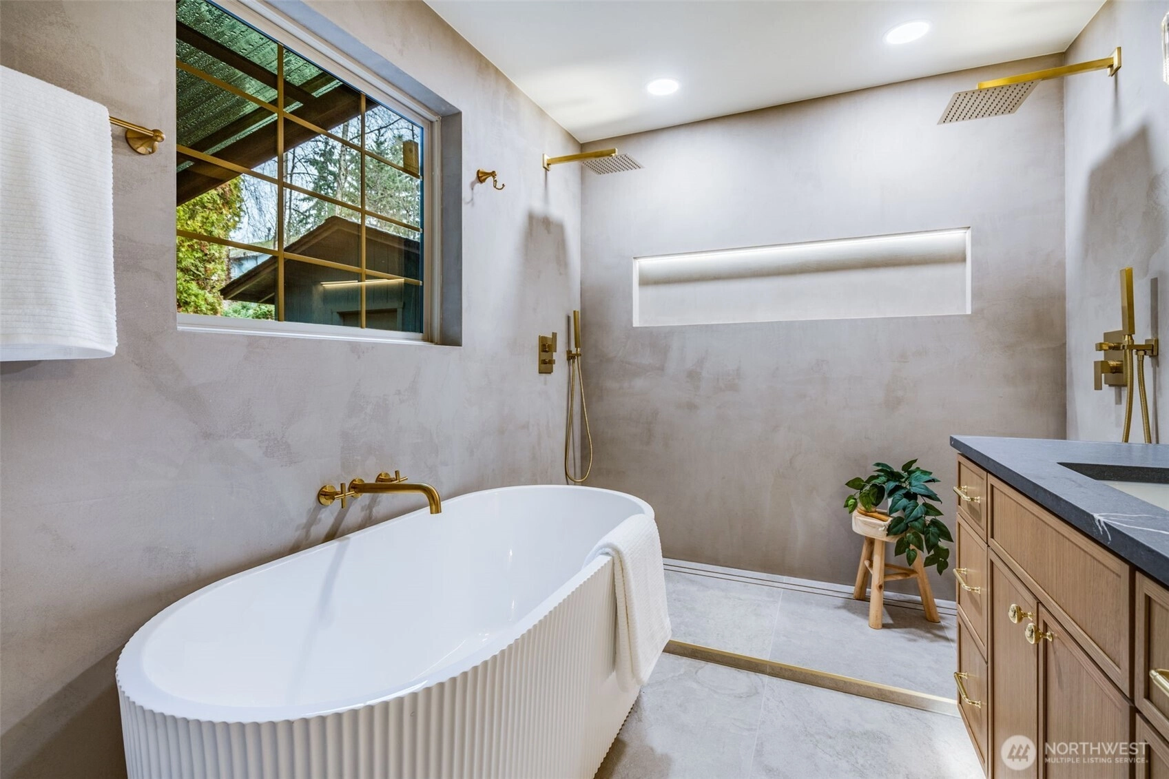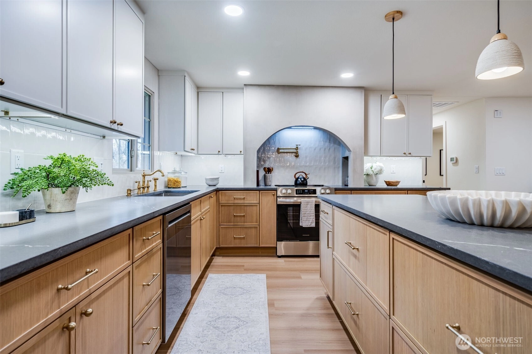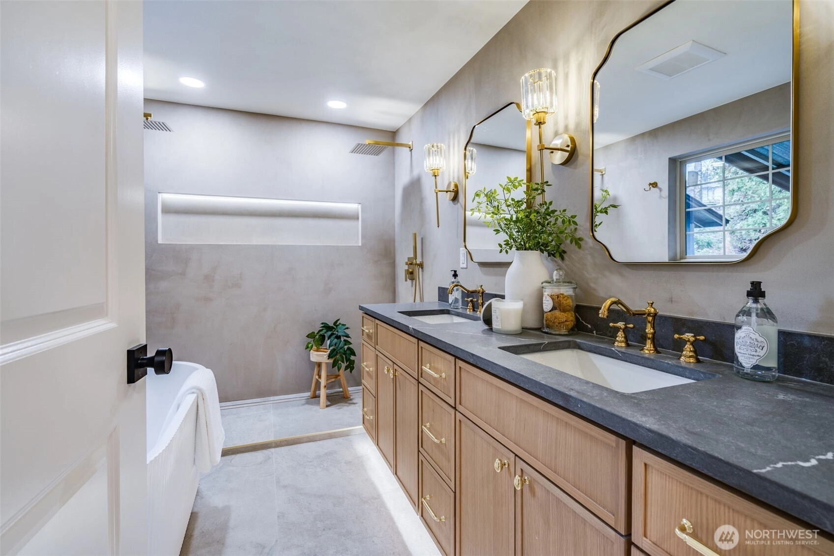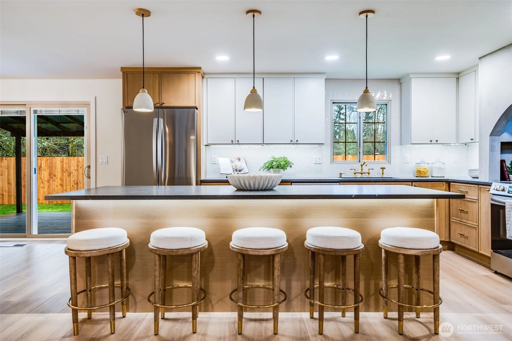 Featuring a newly renovated mid-century, one story home presents timeless architecture and is refined for modern living. Clean lines honor the home’s original design, while elevated, meticulous finishes bring a fresh sense of sophistication. The fully modernized home offers 4 bdrm/2.5 bath extending 1868 square feet precisely designed while perfectly situated on .29 acre. Enter the front door to a welcoming living room presenting a gas fireplace, custom built-in shelving and an open concept to a sizable, entertaining kitchen. The beautifully designed kitchen offers two-toned cabinetry, stainless steel appliances, large sink with polished brass fixtures and gorgeous countertops. The expansive kitchen island provides an eating space with an additional designated dining area. The impressive primary suite with walk-in closet, boasts a full bathroom offering serenity with a stand alone soaking tub and a dual rainshower conceived as an open, immersive experience designed with precision and functionality. Designated laundry room, large walk in pantry and mudroom entrance directly off 2 car garage. Partially fenced backyard with covered and uncovered deck areas, along with a hot tub for evening relaxing. Home ideally setback from the street with plenty of driveway parking, surrounding landscaping and newly laid sod. Conveniently located with easy I-5 access, short distance to shopping and community offerings. This stunning home will not last long!
