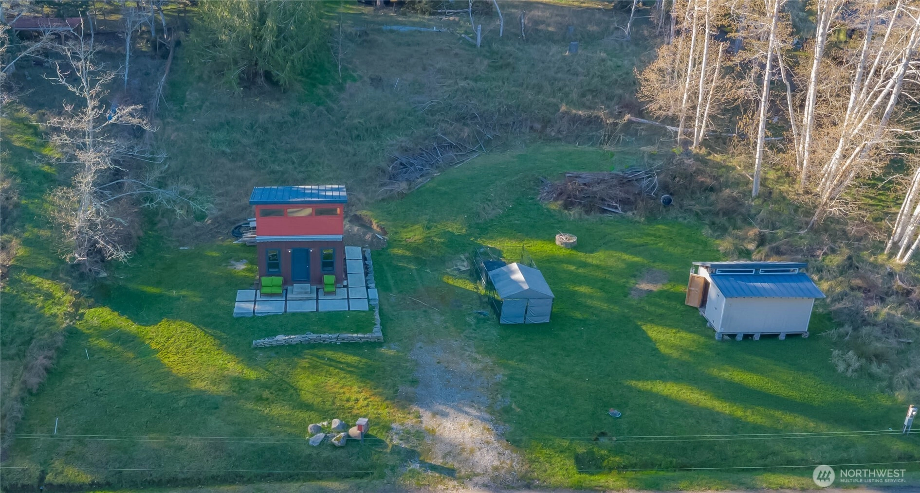 Rare opportunity to own ½ acre with water view on Herron Island! Listed as vacant land, this cleared and build-ready property includes a permitted 320 sq ft tiny home (classified as an outbuilding) set on a foundation with electricity and water connected. The sellers have completed a 3-bedroom septic design and recently approved permit—just waiting for installation—making this property primed for future expansion. Keep the tiny home as a weekend retreat or possibly an Airbnb or use it while you build your custom dream home. The thoughtfully designed tiny home features a main level with kitchen (mini fridge & microwave), dining area, and living space with large pull-out bed. Upstairs loft area offers flexible space for an office or additional sleeping area (railing not yet installed). Property also includes a 10x10 shed, dog kennel, and paddleboat—perfect for island living. Herron Island offers incredible community amenities including North Beach Park with sandy beachfront, boat launch, dock, kayak racks, and covered picnic area. Enjoy a thriving art community, 4th of July celebrations, regular community dances, a central community center with playground and field, plus South Beach Park and scenic nature trails. Peaceful island living just about an hour from Tacoma and Puyallup—accessible by ferry only. The perfect getaway to unplug, invest, or build your forever home. Endless possibilities await.