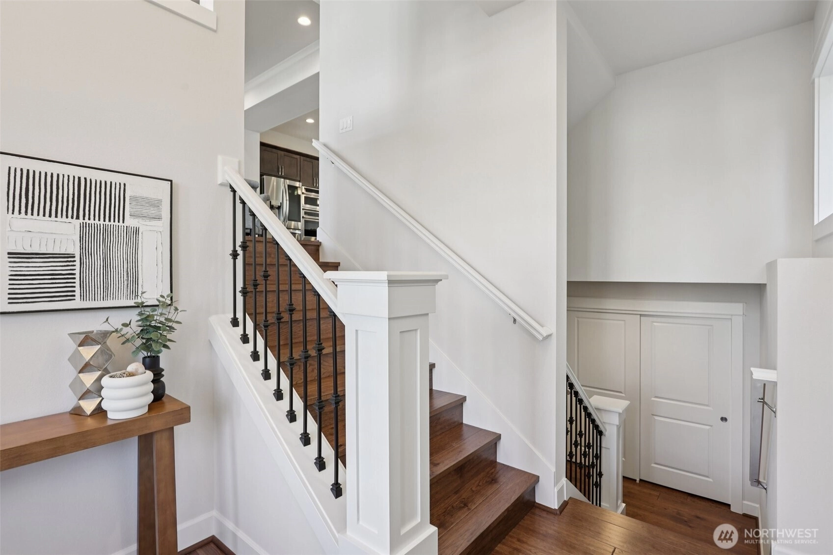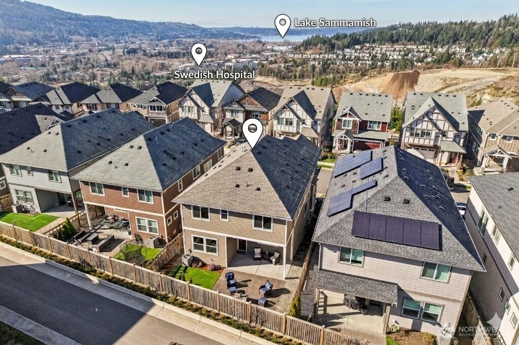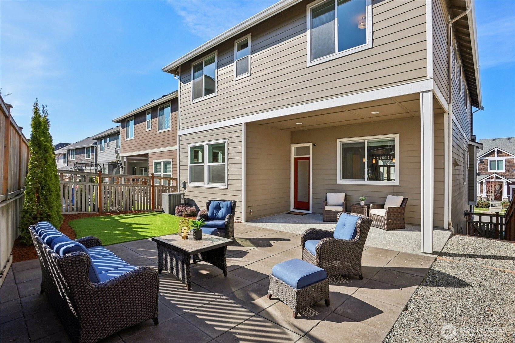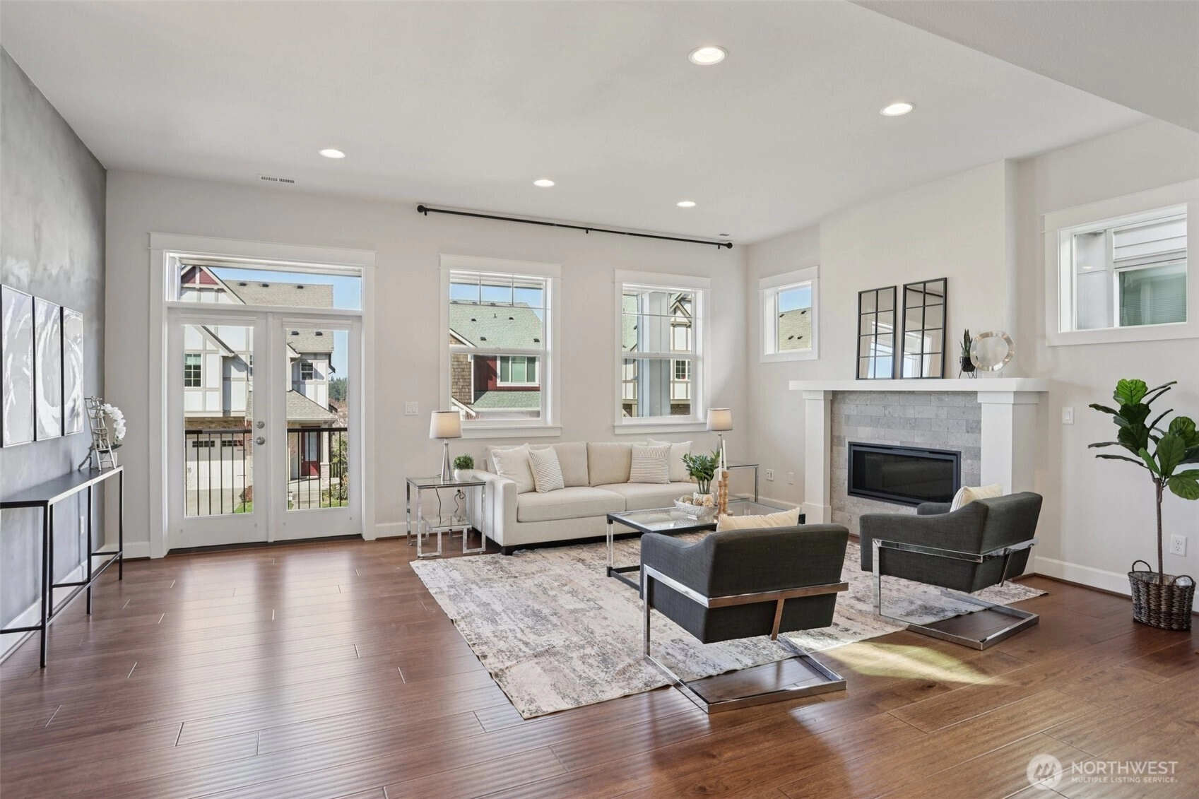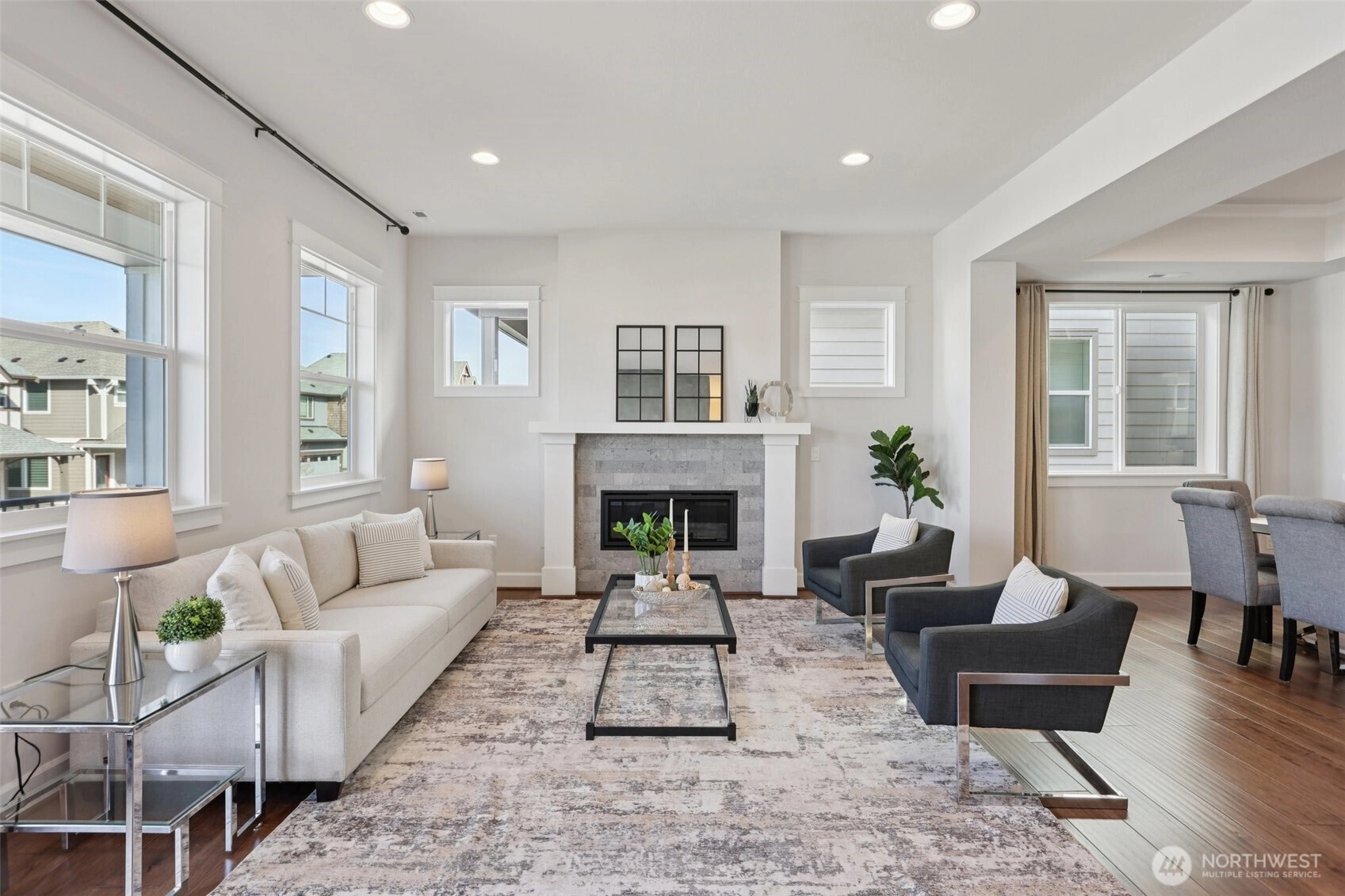 Like new home in highly desirable Issaquah Highlands. 2-story home with 5 bedrooms & 3 baths features tall main level ceilings and beautiful millwork. Open concept main level, large chefs kitchen with GE Monogram professional 6 burner range, office/bedroom, 3/4 bath. Large living/dining area with gas fireplace leading to covered balcony. Back yard with covered patio is plumbed for gas for those summer BBQ's. Upper-level features 4 bedrooms including the primary suite with spa-inspired bath & huge walk-in-closet. More than $50K in builder options and upgrades including central A/C, upgraded quartz counters throughout, upgraded hardwood flooring and more. Excellent location offers convenience to Grand Ridge Plaza just a few blocks away featuring everything you need for daily living including Safeway, a 12-screen Regal Cinema and countless shops and dining opportunities. Issaquah Highlands offers more ways to enjoy the outdoors than you can imagine with easy access to I-90, local trails, and the highly rated Issaquah School District.