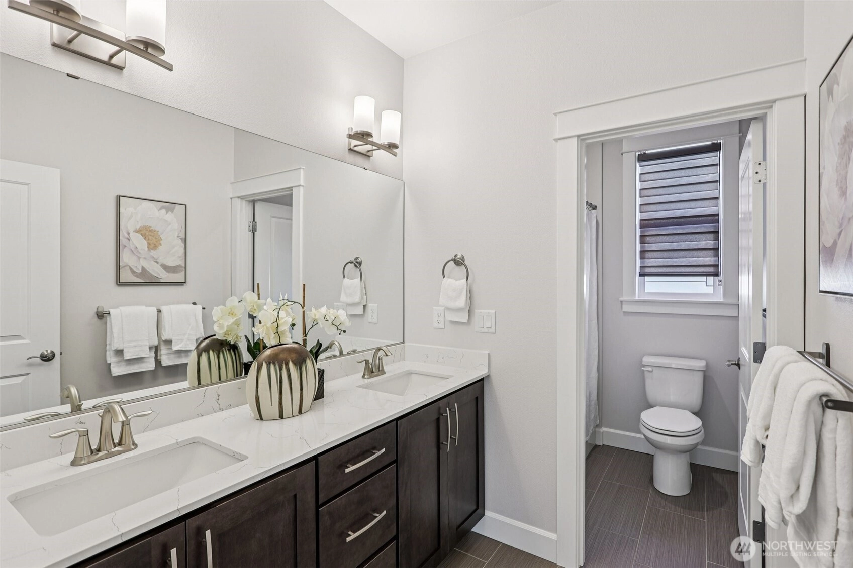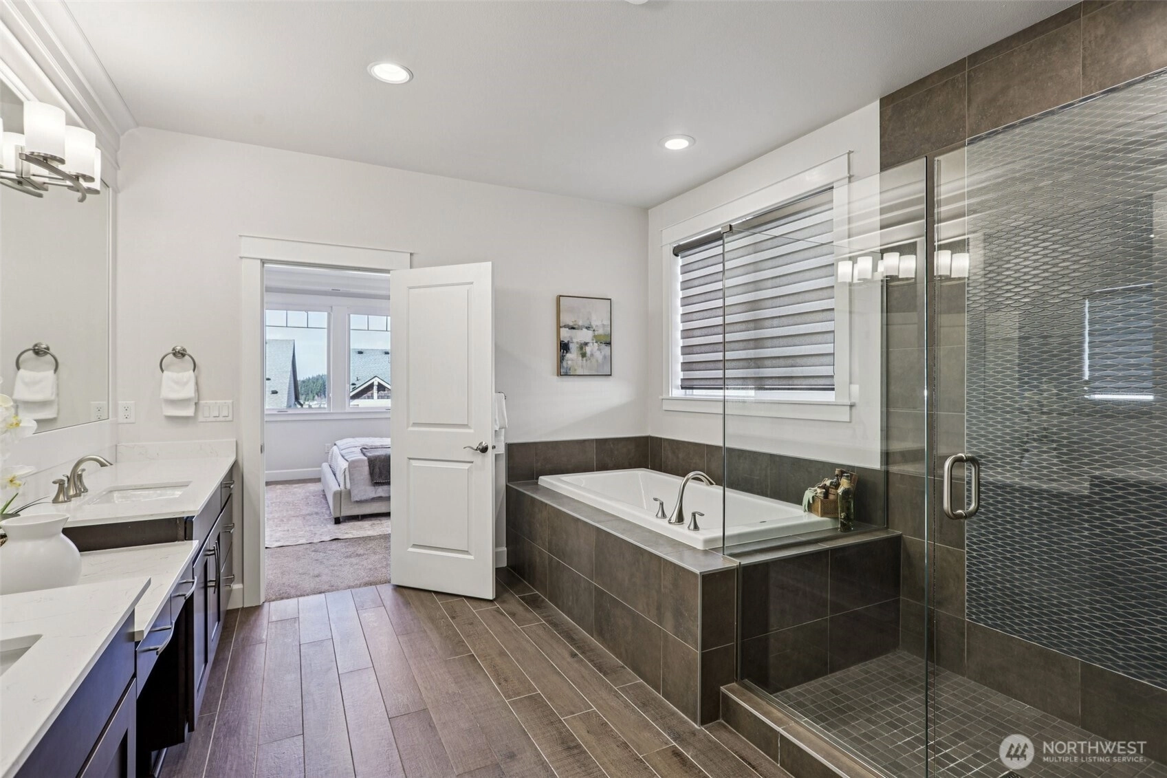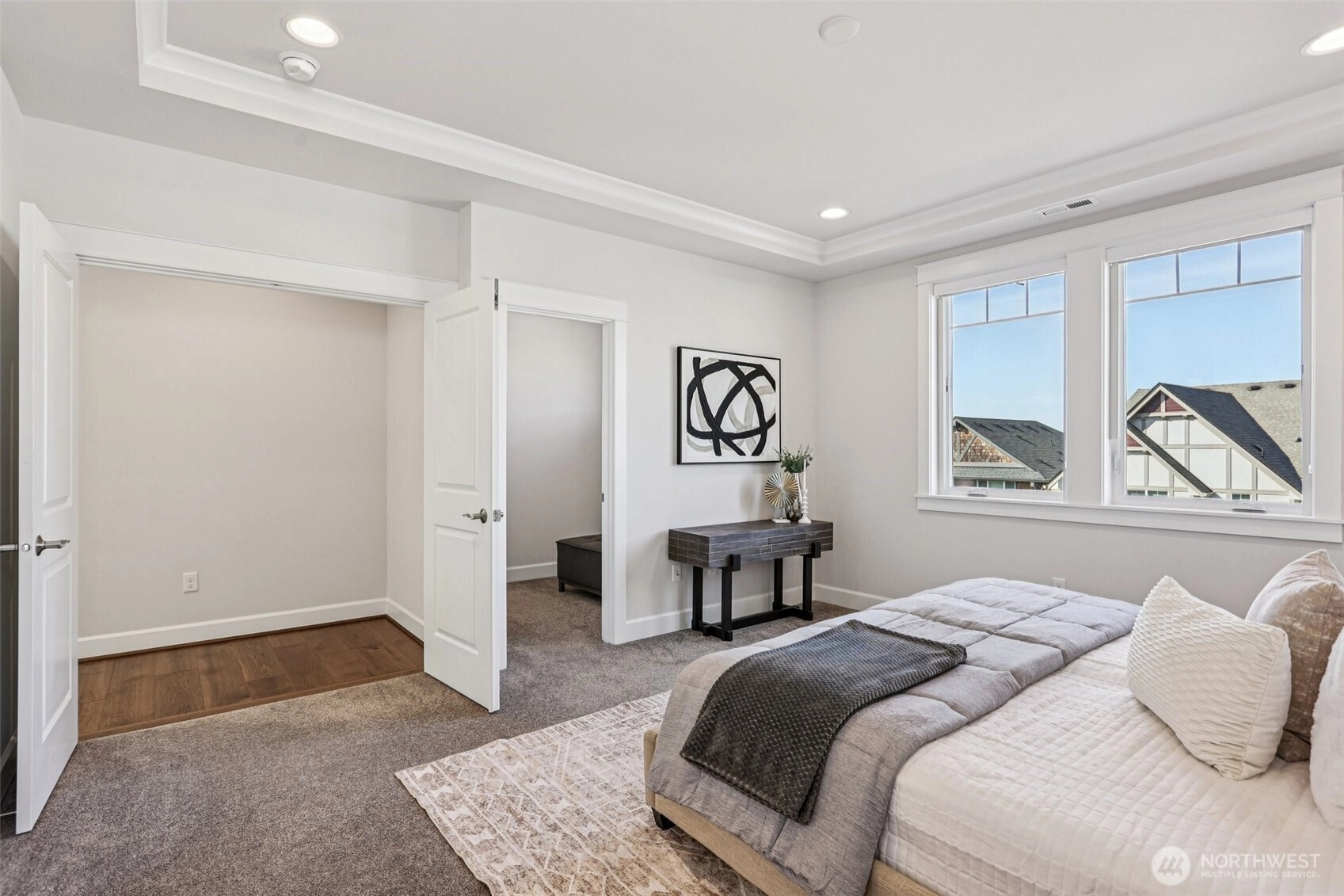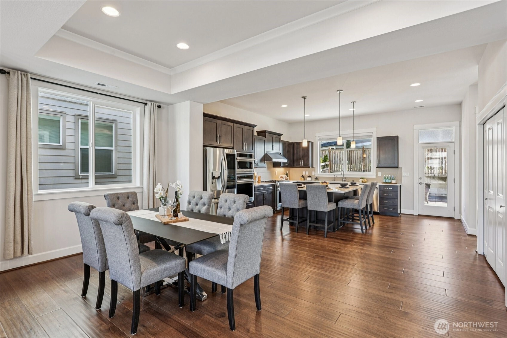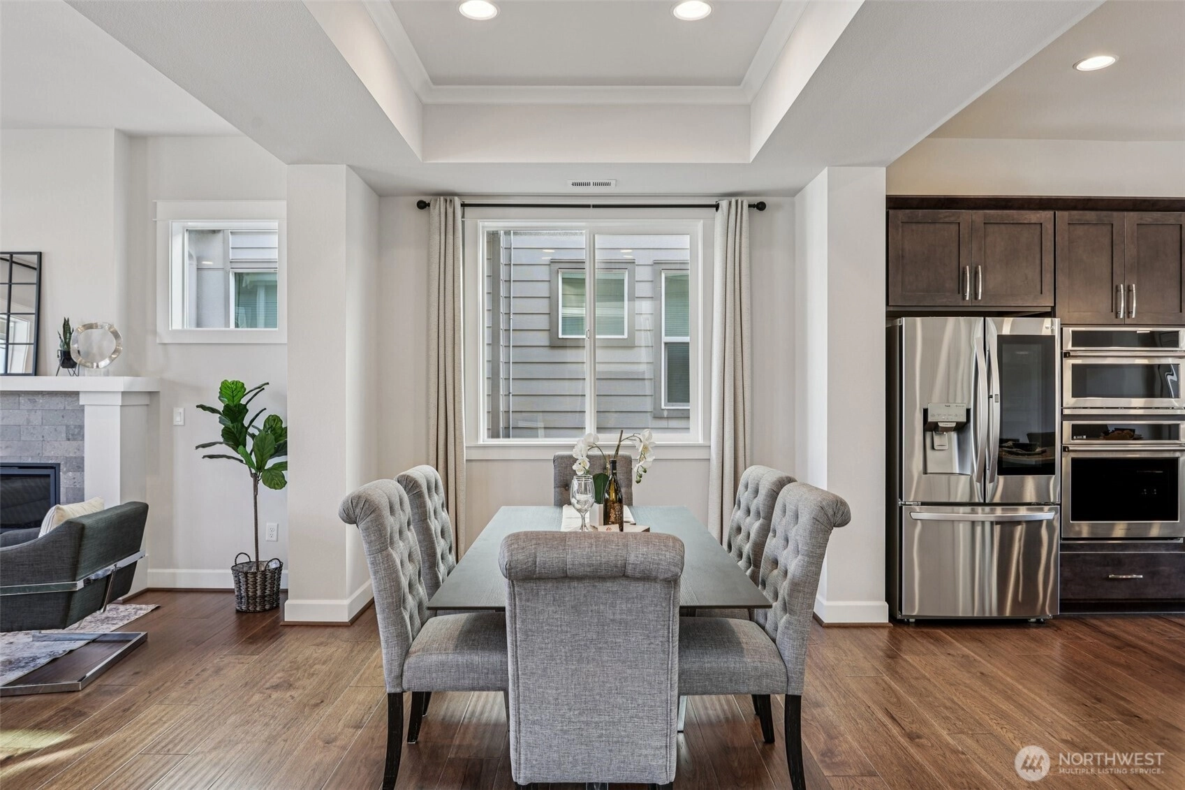 Like new home in highly desirable Issaquah Highlands. 2-story home with 5 bedrooms & 3 baths features tall main level ceilings and beautiful millwork. Open concept main level, large chefs kitchen with GE Monogram professional 6 burner range, office/bedroom, 3/4 bath. Large living/dining area with gas fireplace leading to covered balcony. Back yard with covered patio is plumbed for gas for those summer BBQ's. Upper-level features 4 bedrooms including the primary suite with spa-inspired bath & huge walk-in-closet. More than $50K in builder options and upgrades including central A/C, upgraded quartz counters throughout, upgraded hardwood flooring and more. Excellent location offers convenience to Grand Ridge Plaza just a few blocks away featuring everything you need for daily living including Safeway, a 12-screen Regal Cinema and countless shops and dining opportunities. Issaquah Highlands offers more ways to enjoy the outdoors than you can imagine with easy access to I-90, local trails, and the highly rated Issaquah School District.