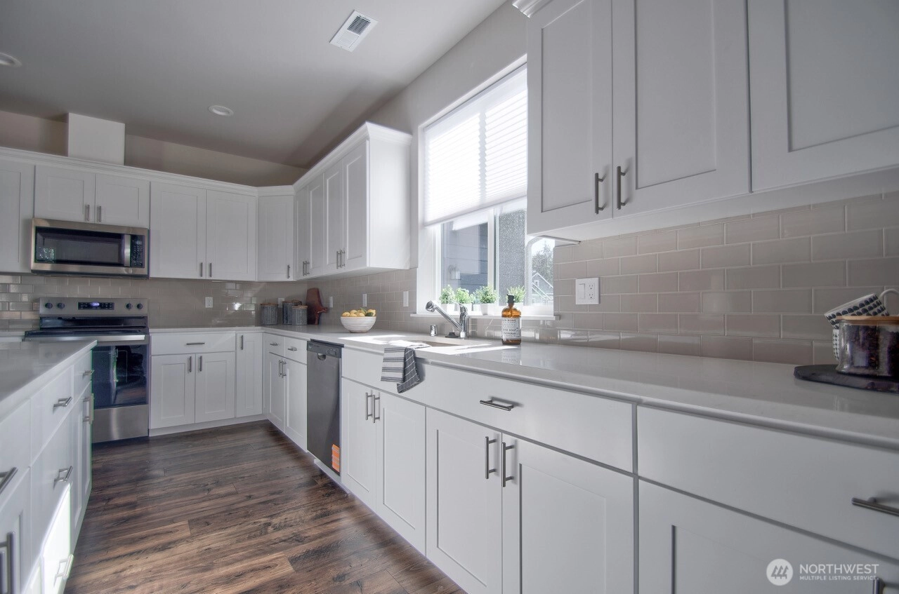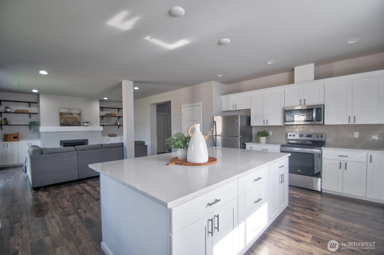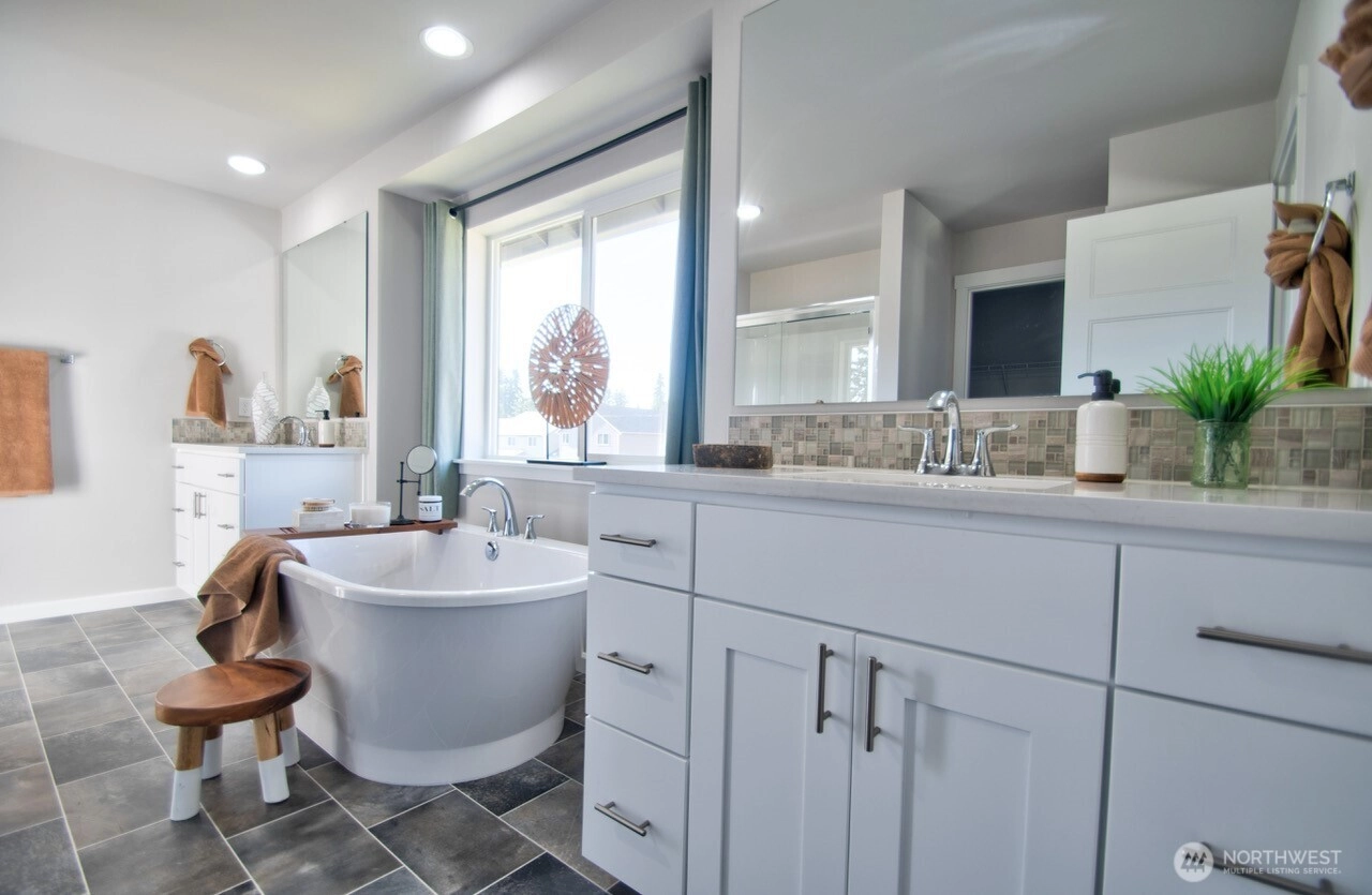 REDUCED PRICE! MOVE IN READY! Experience comfort and flexibility in this beautifully refreshed 3-story home in Phase 2 of The Landing at Spanaway Lake. Boasting 3,162 sq ft, this spacious residence offers 4 bedrooms, 3.25 baths, and a 3-car garage. Fresh interior paint and elegant 3CM slab countertops enhance the modern feel throughout. The well-appointed kitchen features stainless steel appliances, including refrigerator, stove, microwave, and dishwasher, and all appliances stay—including a new washer and dryer ready to install. The main level includes a versatile den and ¾ bath, ideal for guests or a home office. Upstairs, you’ll find a generous primary suite, three additional bedrooms, a full bath, and a convenient laundry room. The expansive third-floor bonus room with its own ¾ bath offers endless possibilities—perfect for a guest suite, media room, or game space. Enjoy the fully fenced backyard with attractive landscaping, a new 10x20 shed, and a playground nearby. Move-in ready and designed for today’s lifestyle!