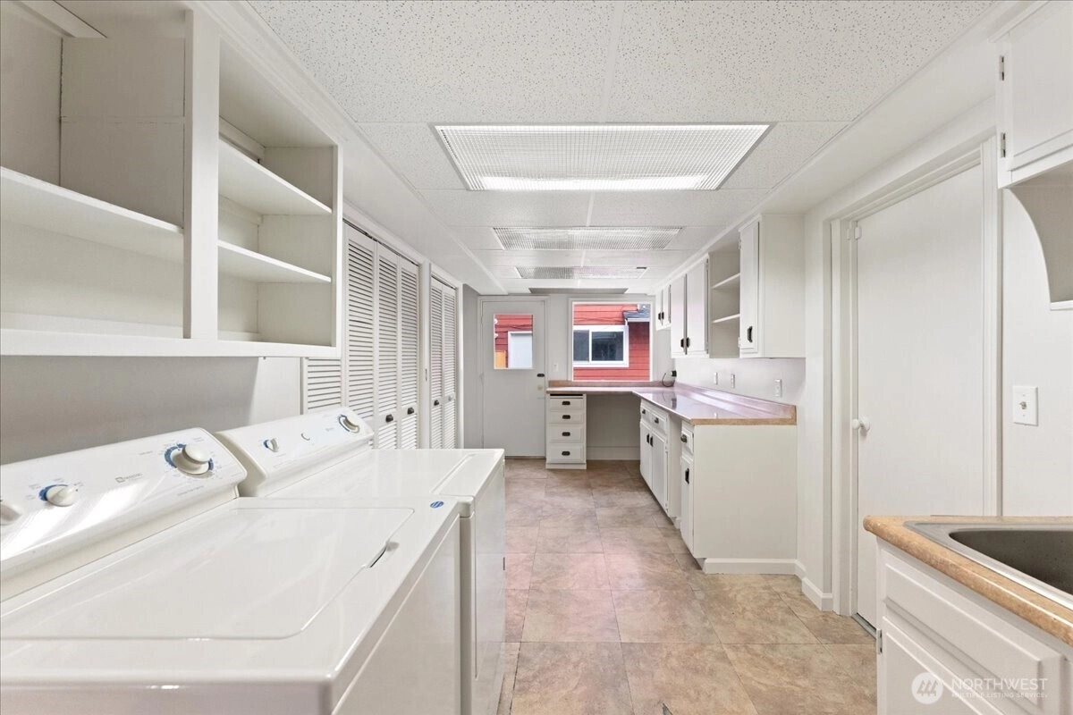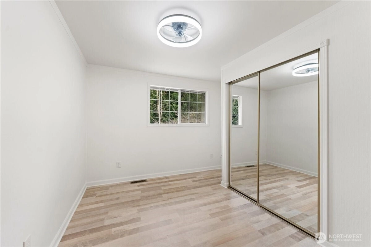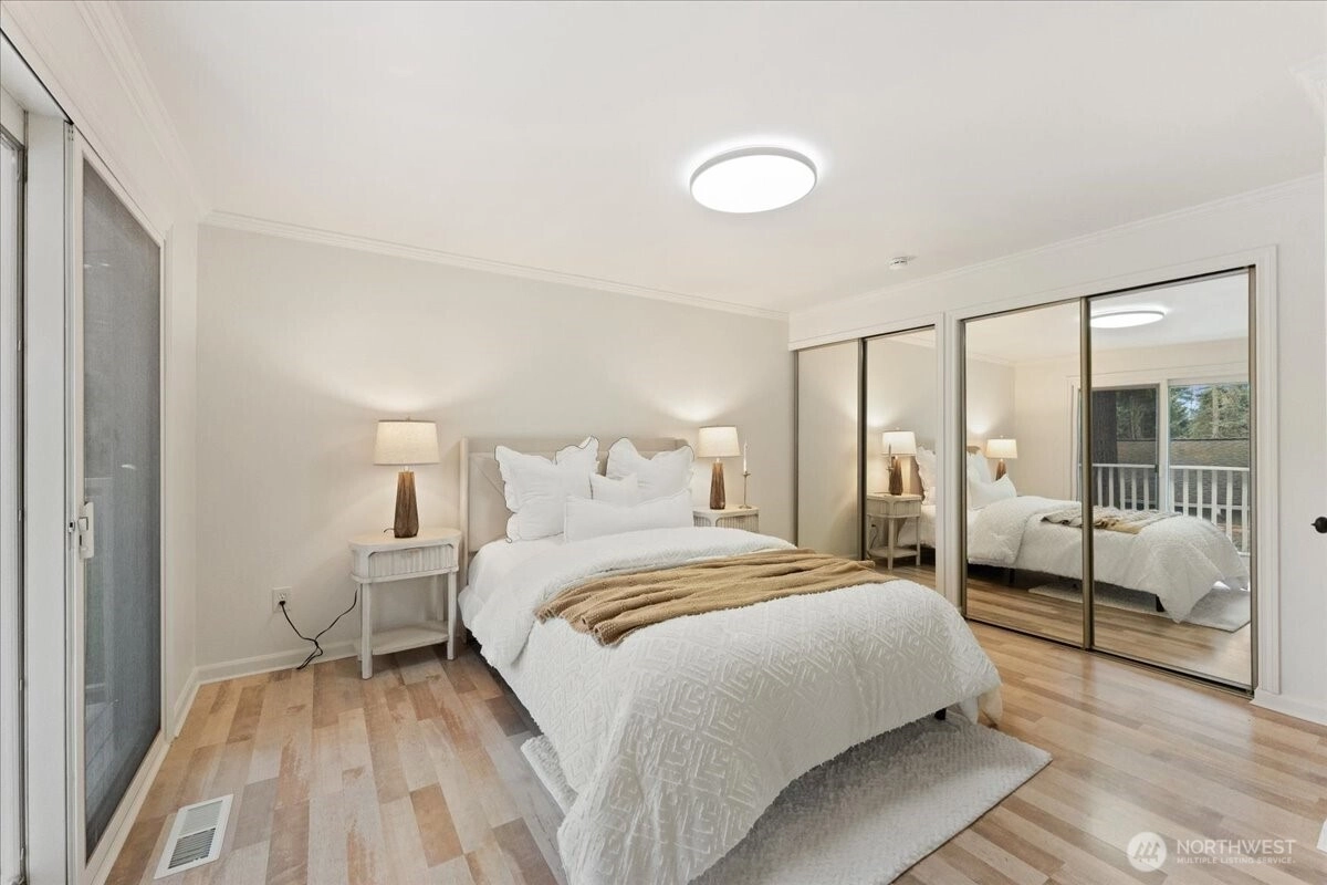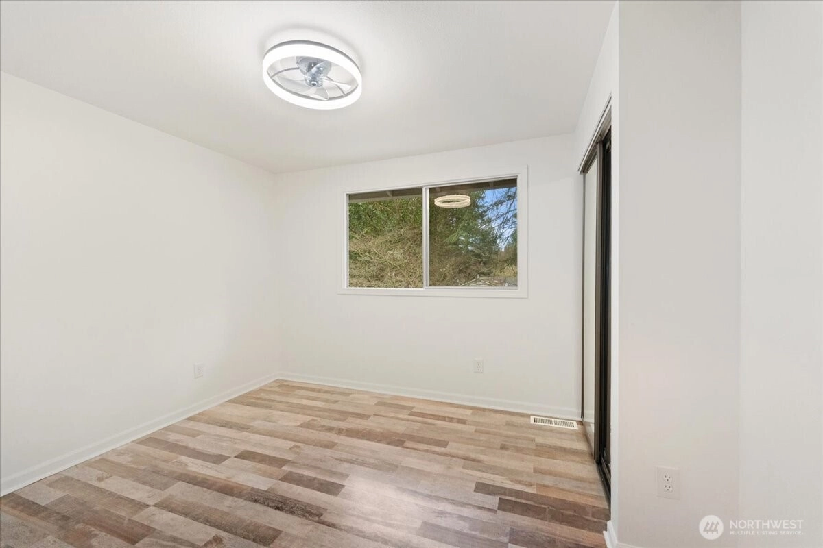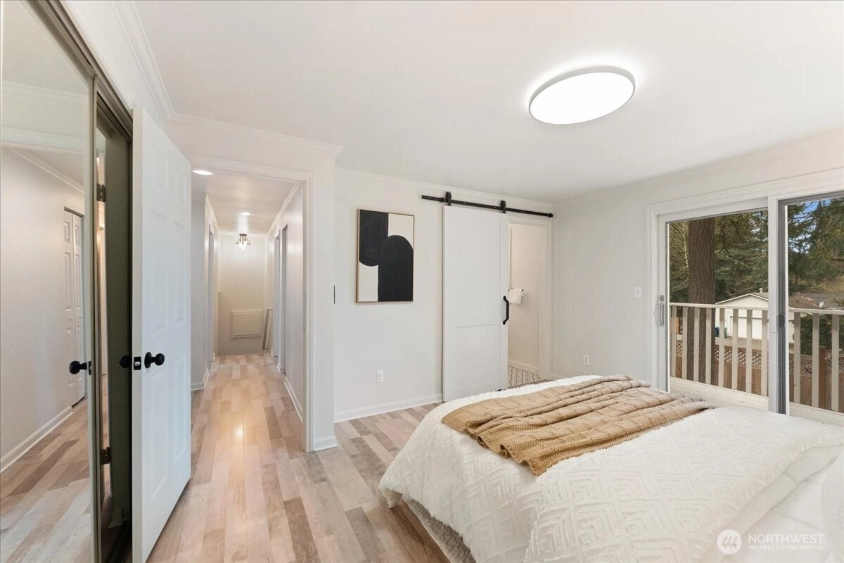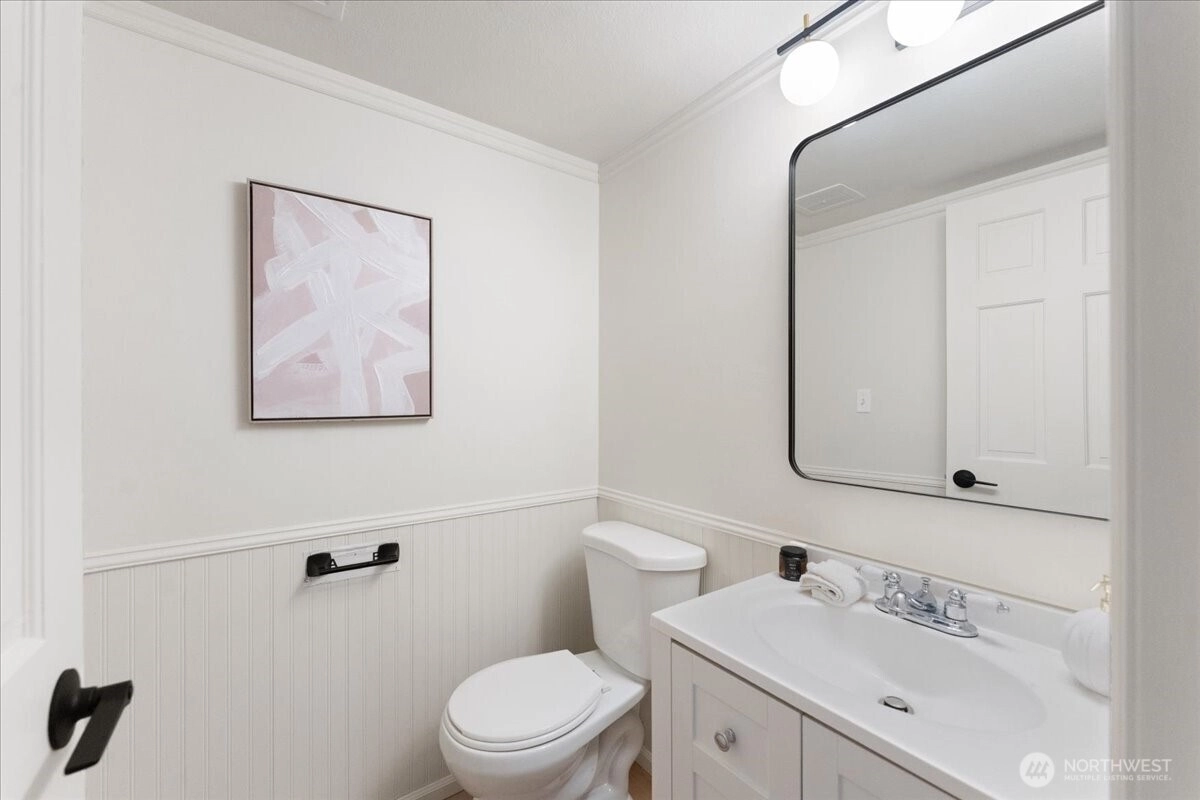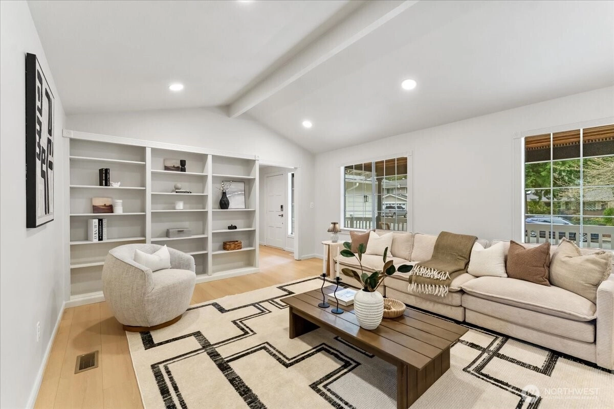 Welcome to this beautiful two-story home in highly sought-after North Juanita, Kirkland. This spacious freshly remodeled home offers a highly desirable floor plan with bright living spaces and great flow for everyday living and entertaining. A charming covered front porch welcomes you into the main level featuring vaulted ceilings, a generous living room with custom library shelving, formal dining area, and an open-concept kitchen with breakfast nook and stainless-steel appliances, double dishwasher. Upstairs, the primary suite offers a fully remodeled bathroom and private deck access, creating a peaceful retreat. Three additional spacious bedrooms and a full bath complete the upper level. Extra large laundry room with lots of cabinets and storage. Enjoy two cozy wood-burning fireplaces, a fully fenced backyard, large patio perfect for gatherings. Excellent location just minutes to I-405, parks, shopping, restaurants, and award-winning Lake Washington School District.