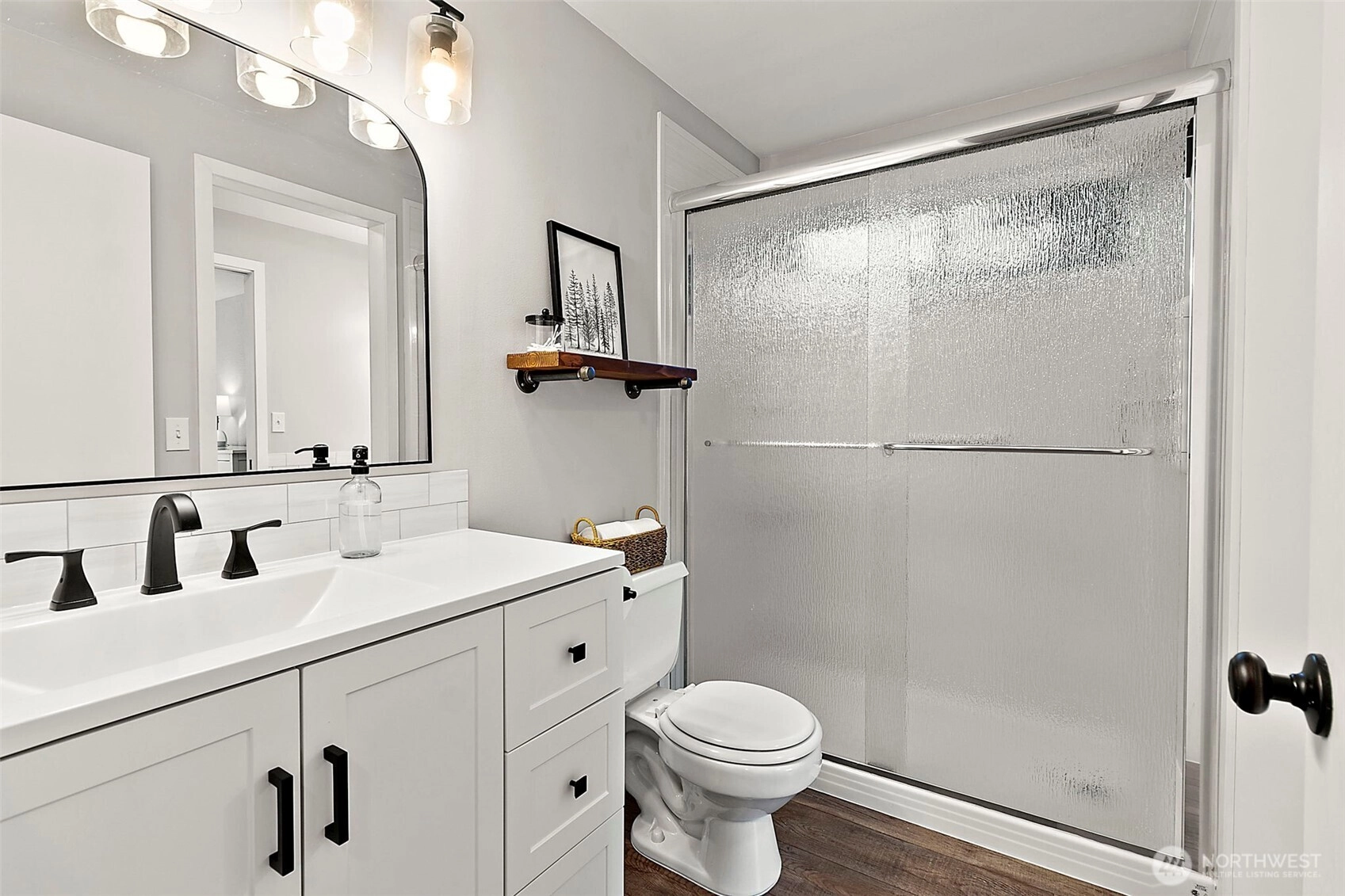 Experience elevated living in the heart of downtown North Bend at this beautifully updated corner residence in Park Place Townhomes. Perfectly positioned to capture sweeping views of Mount Si. The spacious, bright, and cheerful living area is anchored by a cozy gas fireplace and opens seamlessly to your private patio—ideal for morning coffee with mountain views or hosting summer gatherings. The fully remodeled kitchen is a standout feature, thoughtfully redesigned with modern finishes, stainless steel appliances, and generous cabinetry. Both bathrooms have also been tastefully remodeled, offering updated fixtures and finishes that provide a clean, refined aesthetic. Primary retreat showcases a large closet, and convenient access to the beautifully updated bath with dual sinks. New luxury vinyl plank flooring flows throughout the home, adding durability and a sophisticated, cohesive look. Additional highlights include a one-car garage, driveway & guest parking, and a main-level half bath with full-size laundry for everyday convenience. Step outside and enjoy everything downtown North Bend has to offer—local restaurants, shops, breweries, trails, and Si View Park just moments away. With quick access to I-90, commuting is effortless while maintaining the charm and tranquility of mountain living. This is truly a must-see opportunity—schedule your private tour and experience it for yourself.