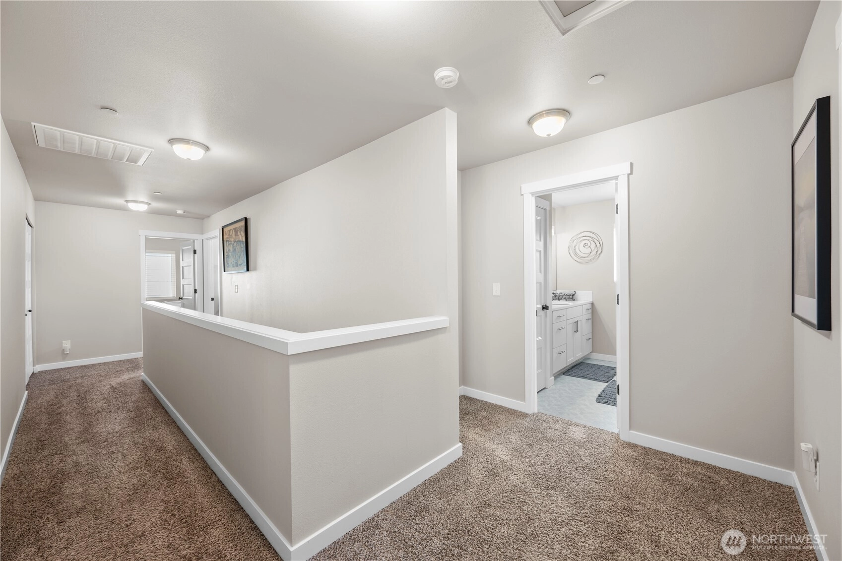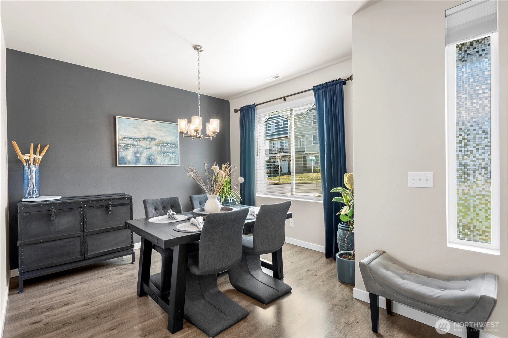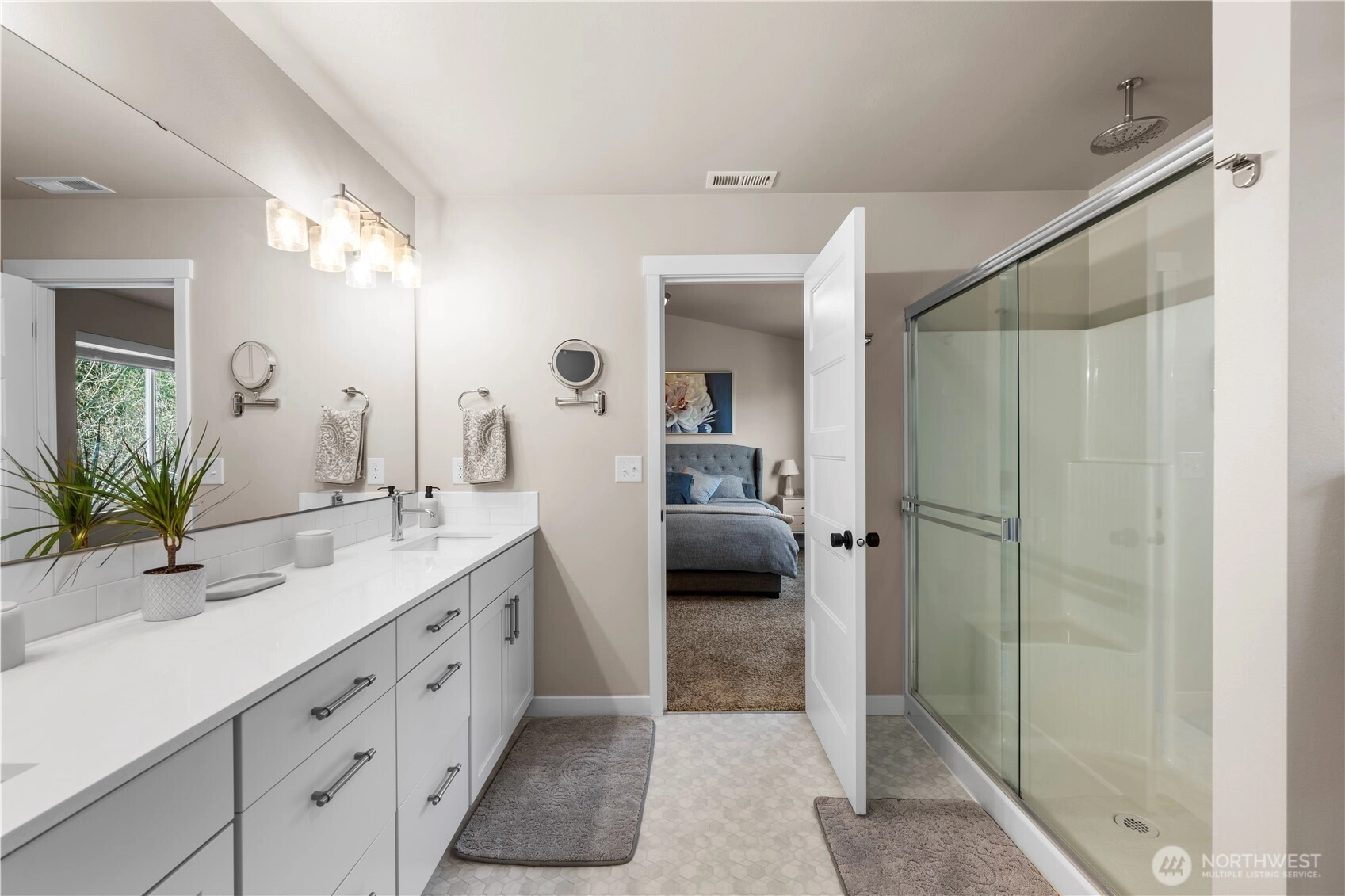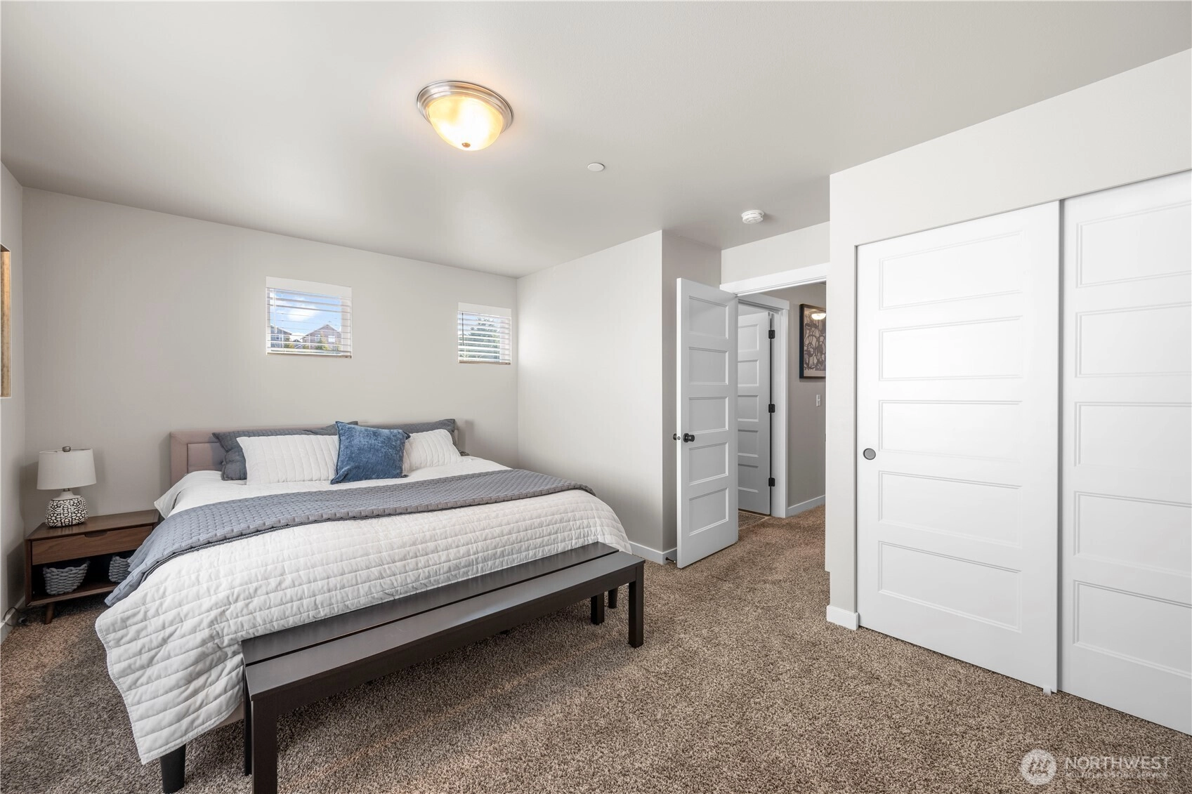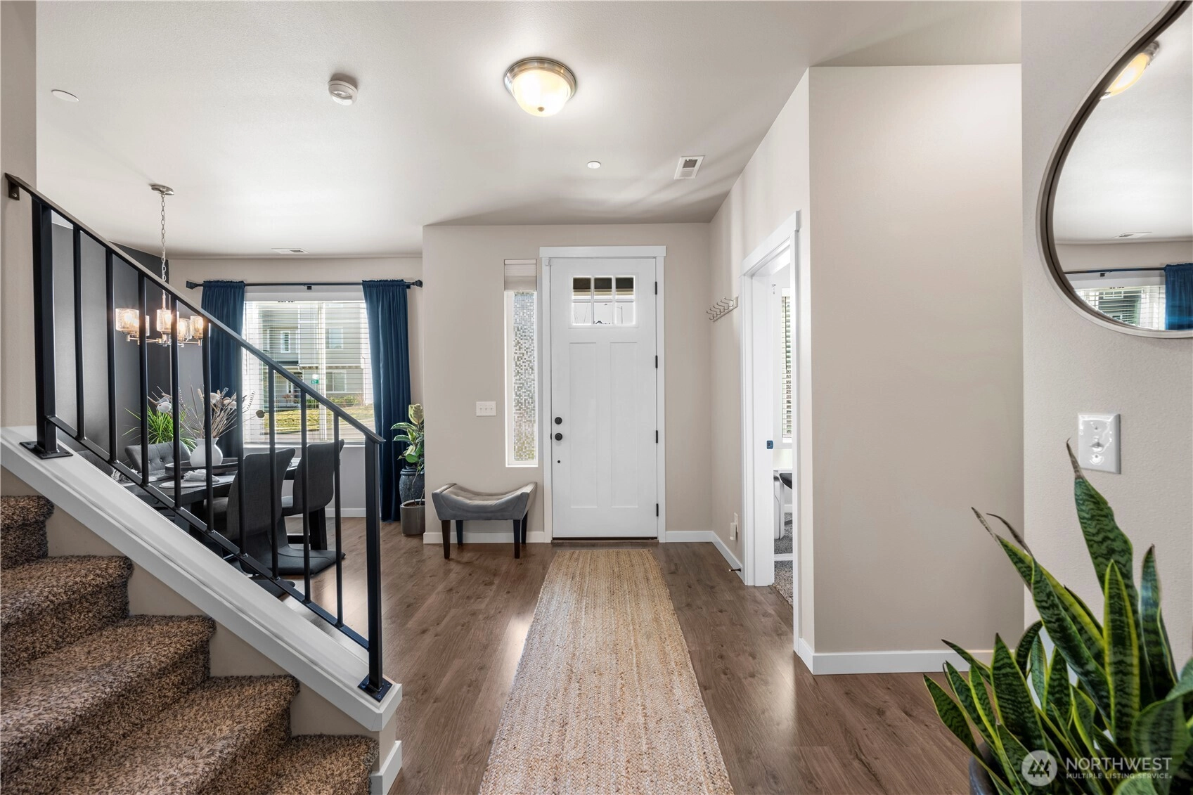 Modern farmhouse charm meets peaceful Northwest living in Ridgeview Park in South Marysville. This like-new home has been lovingly maintained, offering designer style and thoughtful spaces throughout. The open-concept main level is perfect for gathering, featuring gorgeous laminate flooring, quartz countertops, tile backsplash, a center island, stainless steel appliances, upgraded pull-out shelving for easy kitchen organization, designed for both everyday living and entertaining. The main floor includes a dedicated den perfect for working from home or flexible use to fit your lifestyle. Upstairs, you’ll find four spacious bedrooms along with the convenience of upstairs laundry. The primary suite offers a large walk-in closet and a well-appointed bathroom with double sinks and a shower. The finished lower level provides even more versatility with a full bathroom and separate entrance ideal for multi-generational living, extended guests, or a private retreat. Step outside and enjoy the serenity of a secluded greenbelt right behind the home, creating a peaceful and private backdrop. Located on a desirable corner lot, the home also enjoys access to the scenic Bayview Trail from within the community, perfect for morning walks, evening strolls, or simply enjoying the outdoors. Additional features include a home EV charging station, adding convenience for modern living. This spotless home blends modern style, comfort, and lifestyle in a truly special way.