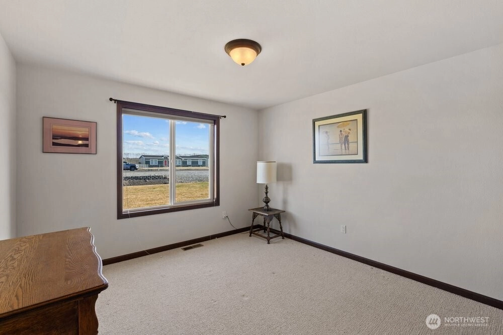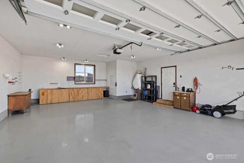 Bask in breathtaking Columbia River views from the air-conditioned comfort of this stunning Desert Aire rambler, set on an expansive 30,000+ sq ft lot with room to expand. The terraced front lawn welcomes you to a covered front porch featuring a beautiful tongue-and-groove ceiling detail. An oversized picture window fills the living room with natural light, while French doors open to a patio featuring a breezeway, skylights, and a built-in grilling station—perfect for entertaining. Vaulted ceilings and a great-room style layout offer flexible living and dining options. The kitchen features granite tile countertops, an island with an eating bar, and abundant storage. The primary suite includes vaulted ceilings, a ¾ en-suite bath, and a walk-in closet with built-in shelving. The full bath offers a tile-surround shower and spacious vanity for additional storage. A covered breezeway leads to the fully finished two-car garage, which includes a half bath, epoxy floors, and extensive built-ins. The property also offers RV parking with hookups and large gravel parking areas beside and behind the home. Desert Aire community amenities include golf, a swimming pool, airstrip, walking trails, and more offering a lifestyle as impressive as the view.