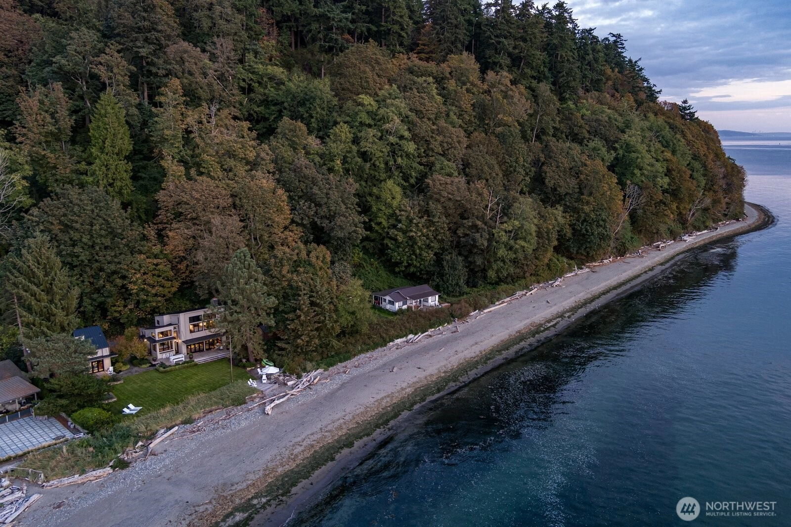 There are waterfront homes, and then there are irreplaceable stretches of shoreline. Set on 100 feet of pristine, no-bank Maxwelton Beach and nestled beside 25 acres of protected Trust Land, this west-facing estate offers panoramic views of the Olympic Mountains, passing ships, and unforgettable sunsets that define the very best of Whidbey Island. Rebuilt in 2016, the custom residence was thoughtfully designed to maximize privacy and seamless indoor-outdoor living. Walls of glass and accordion doors open to the walkout shoreline, creating an effortless flow for both intimate evenings and larger gatherings. Refined finishes and clean architectural lines allow the natural beauty beyond to take center stage. The primary suite provides a tranquil retreat with sweeping views. A main-level guest bedroom and two additional bonus rooms offer flexibility. A detached guest house with sleeping loft ensures comfort and privacy for visitors. An attached one-car garage and generous driveway parking provide convenience and ease. An exceptional opportunity to own a legacy waterfront property defined by land, light, and location on coveted Maxwelton Beach. An offering for those looking for private luxury and the privilege of owning what cannot be recreated.