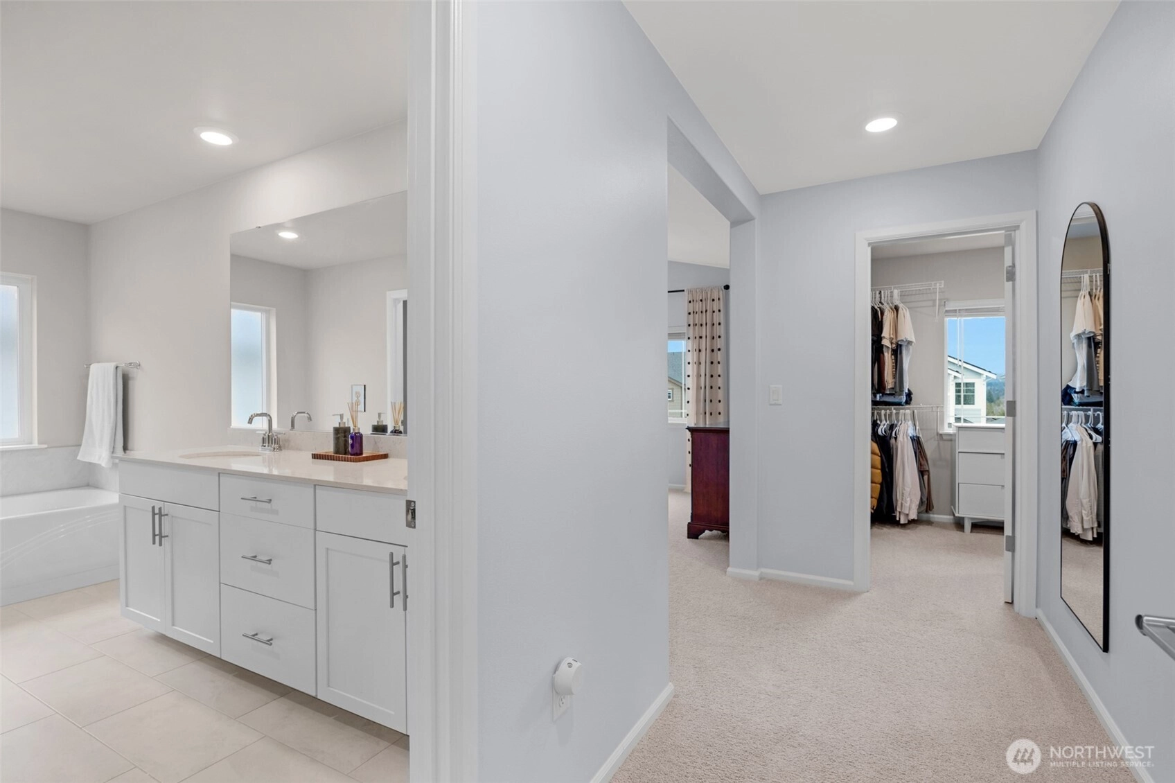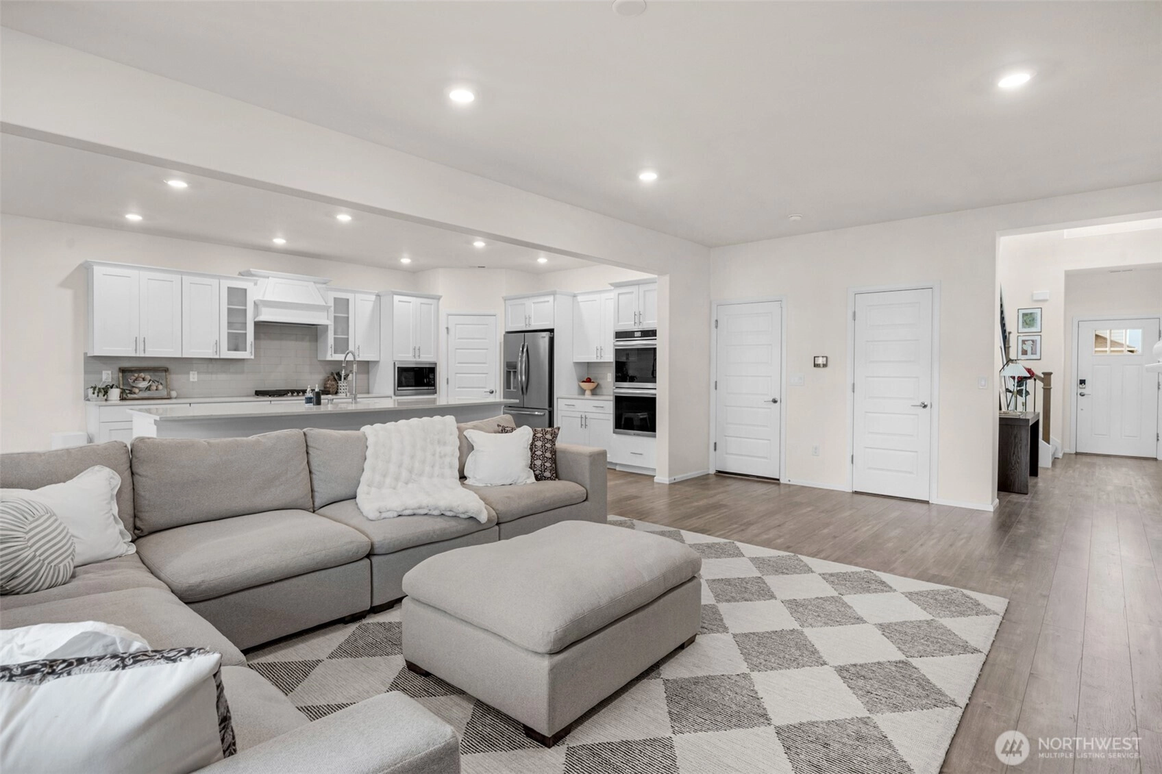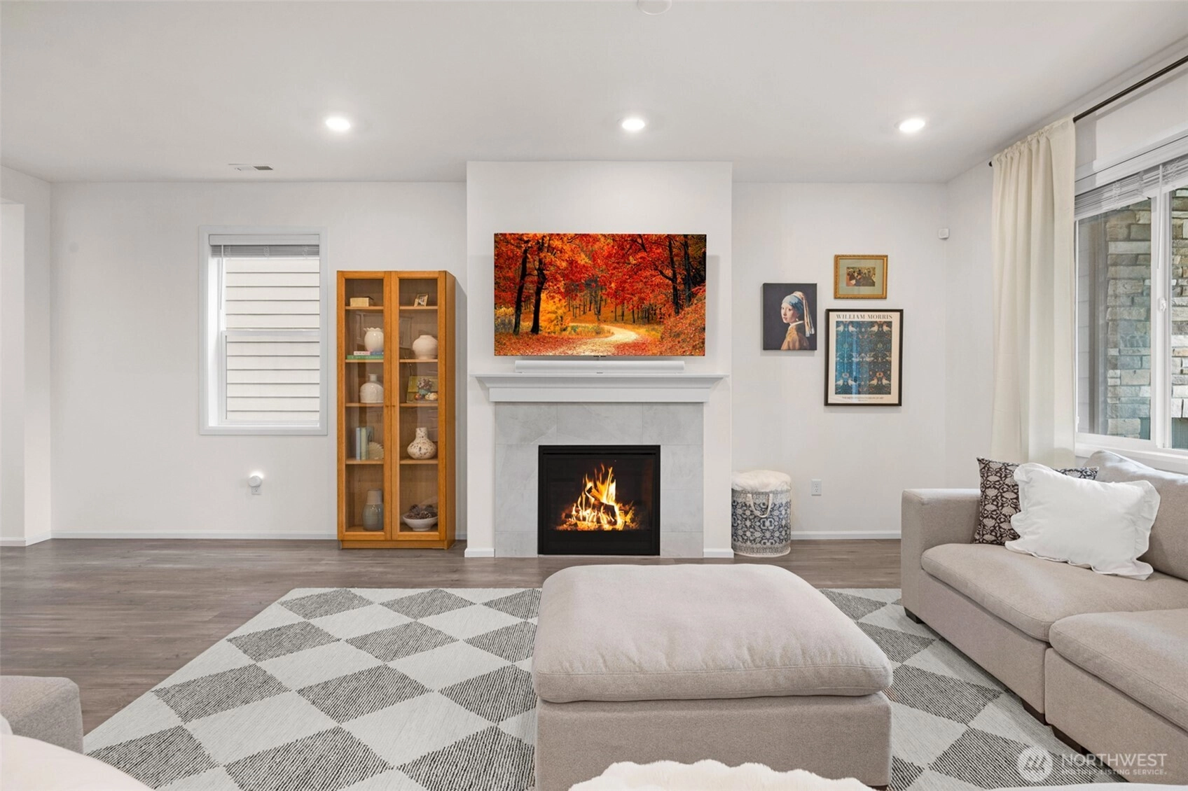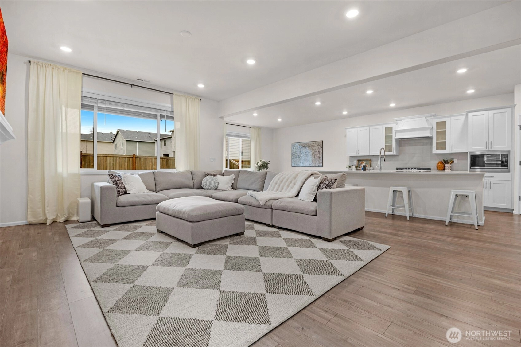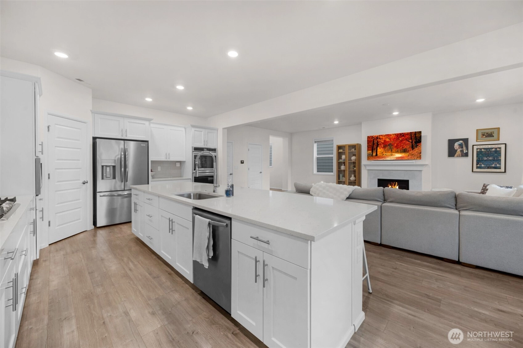Welcome to this beautifully maintained home in the desirable Mountain Crest neighborhood in Lake Stevens. Built in 2022, this 4 bedroom, 2.5 bath home offers modern comfort, thoughtful upgrades, and a bright great room layout designed for everyday living and entertaining. The kitchen features quartz countertops, soft close cabinets and drawers, stainless steel appliances including a double oven, and a spacious walk in pantry. Expansive windows fill the home with natural light, while the gas fireplace creates a warm and inviting focal point. The interior has been freshly painted in a warm white, giving the home a clean and timeless feel. Upstairs you will find a versatile loft space and a spacious primary suite complete with a 5 piece en-suite bath and large walk in closet, both offering peekaboo mountain views. Three additional bedrooms and a full bathroom provide flexibility for guests, home office space, or hobbies. The upstairs utility room adds everyday convenience. Step outside to a fully fenced backyard featuring a covered patio with its own gas fireplace, perfect for year round entertaining. Additional highlights include a 2 car garage, central A/C, and a sprinkler system for easy yard maintenance. Located within the highly regarded Snohomish School District, this home blends newer construction with comfort, functionality, and a prime Lake Stevens location. Home is pre-inspected and all appliances stay with the home!