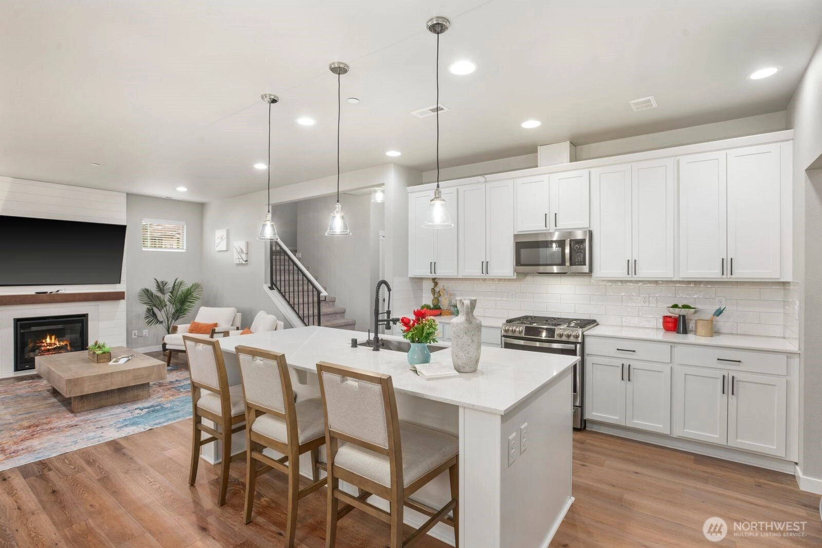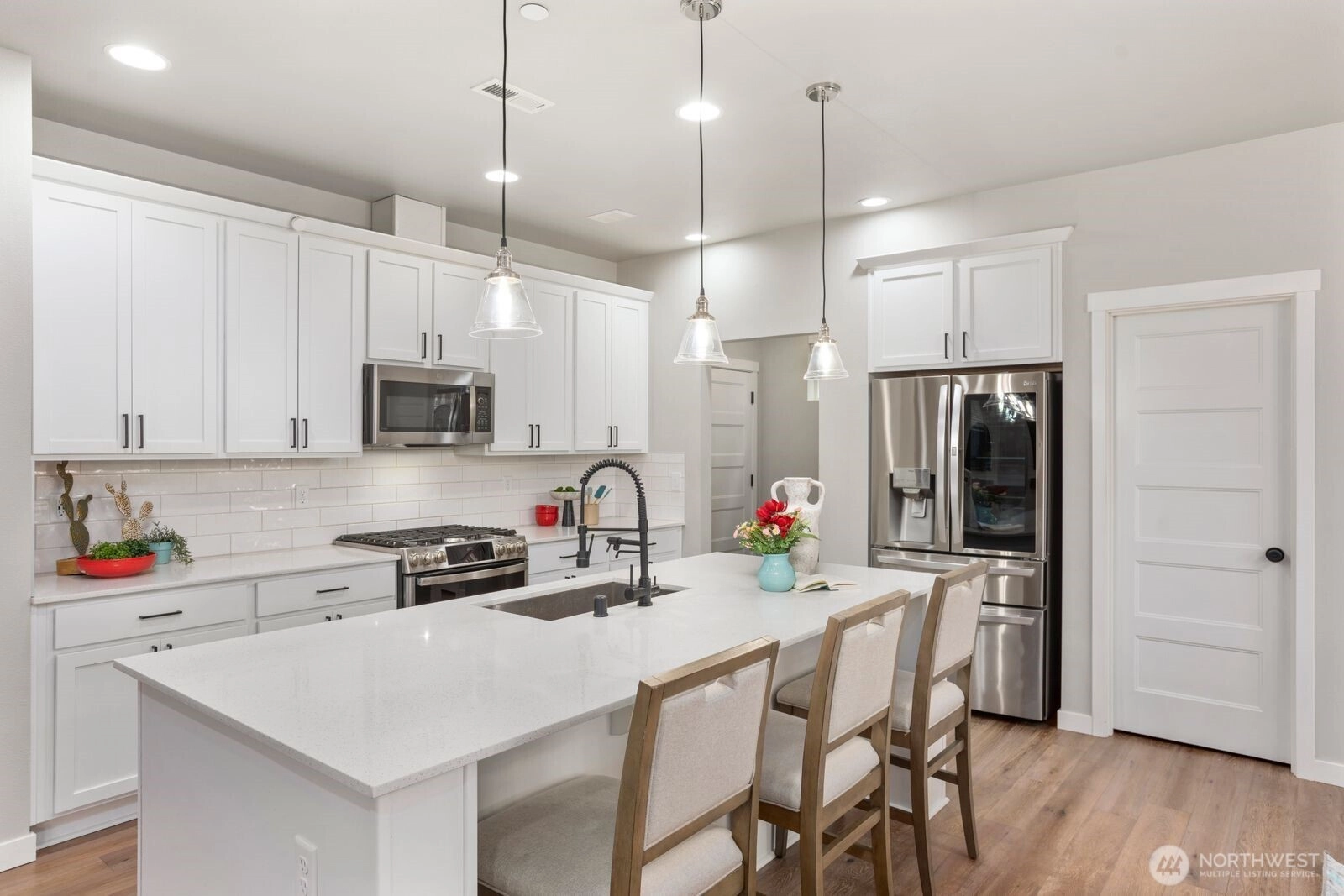 EAST FACING! 2022 BUILT. Freshly painted and move-in ready, this home pairs everyday comfort with future-ready upgrades. Enjoy Cat6 Ethernet in every room, in-ceiling PoE lines for wireless access points and front-yard security camera runs, and smart lighting via Lutron Caseta switches. The finished basement is set up for year-round enjoyment with WiFi-enabled mini-splits, plus a theater space professionally pre-wired for a premium setup with projector readiness and cleanly routed wiring to a discreet equipment closet. A custom wet bar with illuminated floating shelves completes the entertaining vibe. Outside, unwind in a fully fenced yard with gates on both sides, a lighted automated patio with extended stairs to a backyard kitchen area, irrigation front and back, and mature fruit trees (apple, plum, cherry). Bonus: dedicated provisions are in place for two fast EV chargers (garage + exterior). Convenient to Safeway, Haggen, and Fred Meyer, the Marysville YMCA, Seattle Premium Outlets, and nearby parks and trails. PRE-INSPECTED!!!!