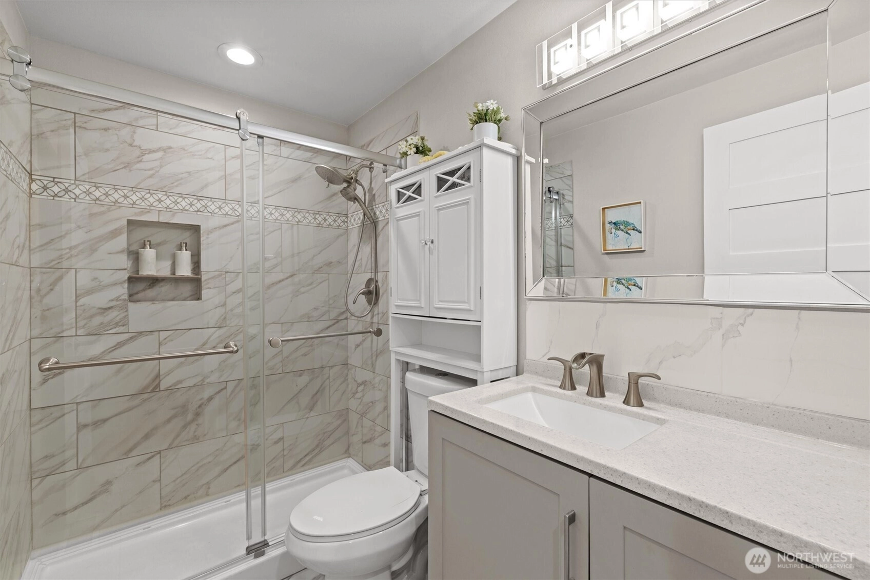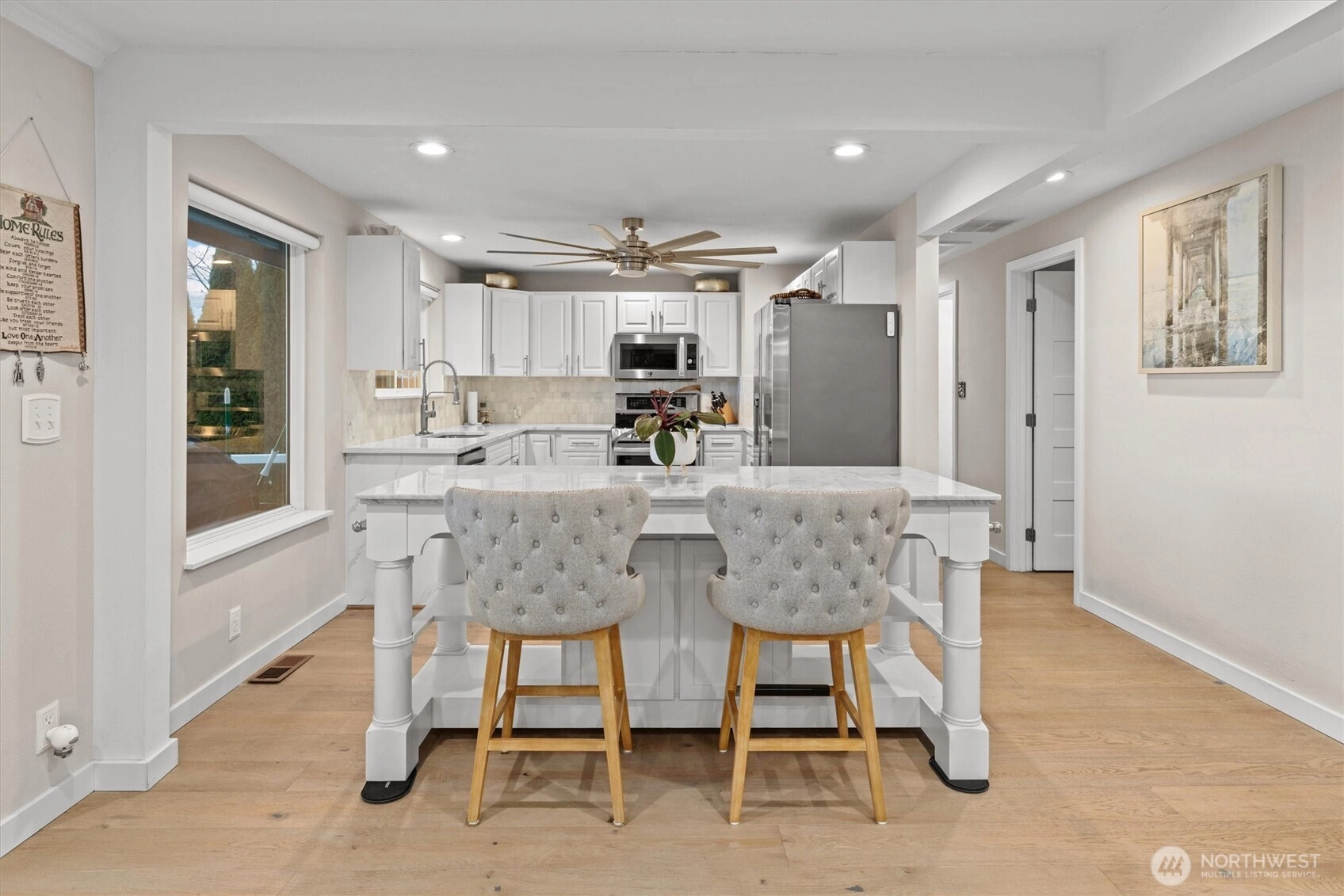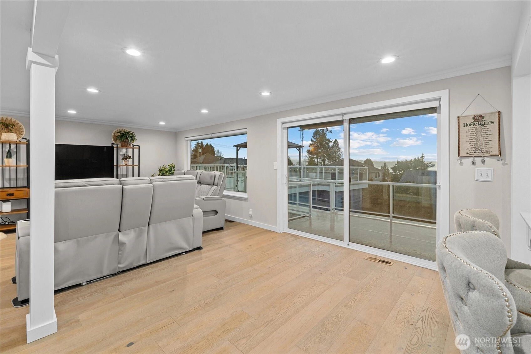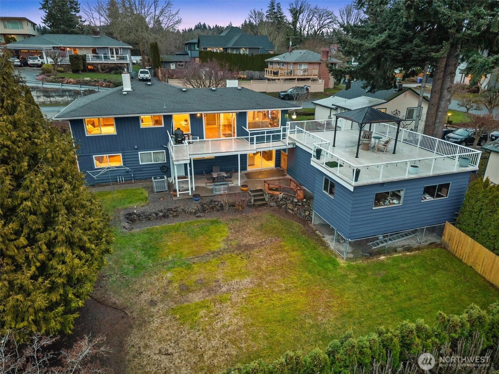 Front-row of Lake Washington sunsets - every single night. Set in the heart of sought-after Lower Kennydale, this home opens to one of the neighborhood's most breathtaking panoramas. Step inside and the lake immediately commands your attention - vibrant blues during the day, warm golden hues at sunset, and the Olympic Mountains forming a striking backdrop in the distance. Expansive picture windows showcase the scenery and flood the main living spaces with natural light, making the view part of daily life. Designed for comfort and longevity, the home features A/C, a large fenced yard, a garage with extra workspace, a spacious lower level with patio access, and more than 1,000 sq ft on rooftop deck space built for unforgettable gatherings. The rooftop deck is the ultimate setting for summers dinners, sunset celebrations, or peaceful evenings above it all. The finished daylight basement offers a generous family room, additional bedroom, 3/4 bath, and kitchenette area - ideal for guests, extended living, or flexible use. Just minutes to I-405, The Landing, waterfront parks, trails, bike paths, and Gene Coulon Memorial Beach Park, this is a home where everyday living is shaped by light, space, and the enduring beauty of Lake Washington.