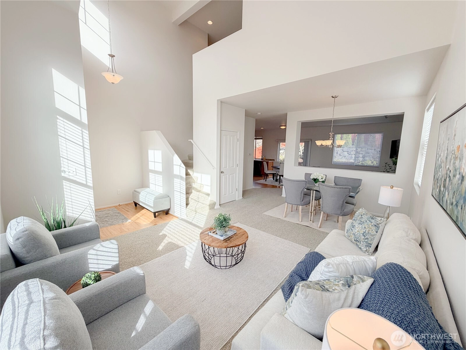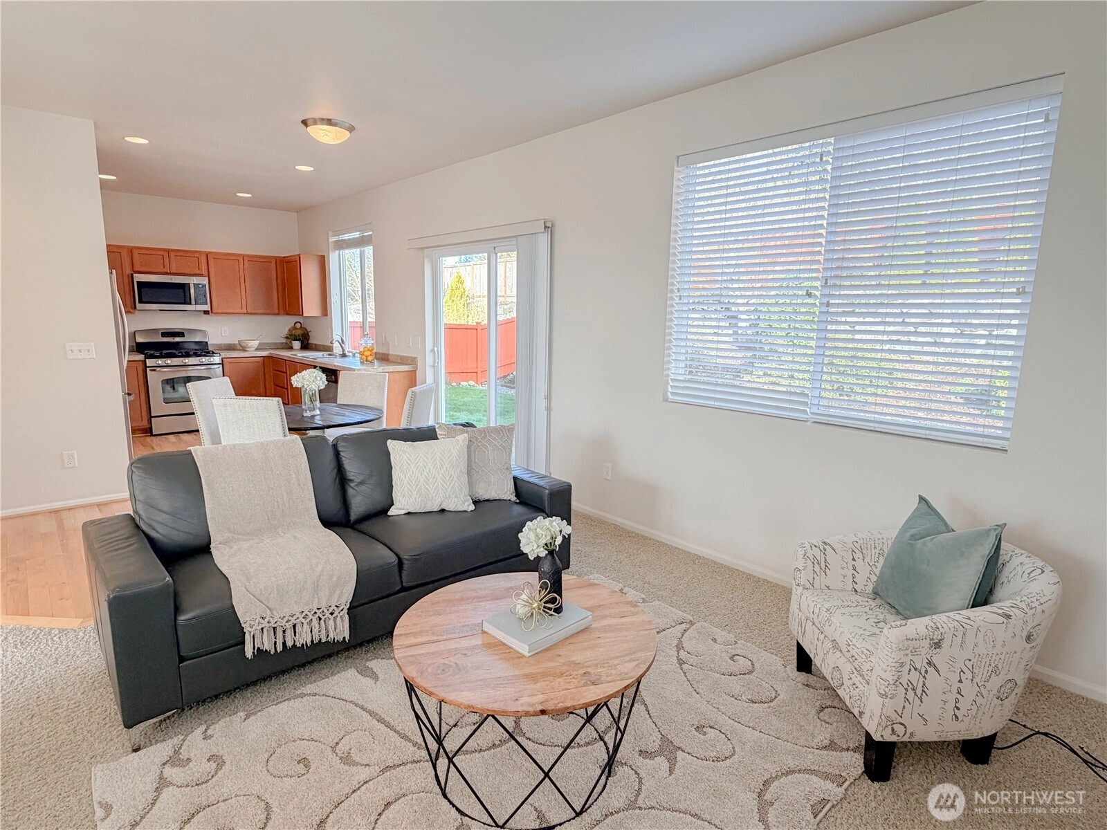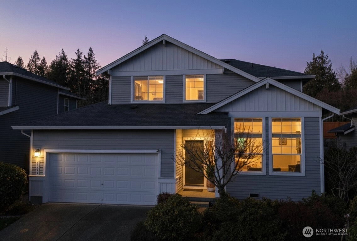 Discover this stunning home in coveted North Tapps Estates, perfectly positioned between scenic Lake Tapps & Lakeland Hills with a waterfront park, shopping, dining, endless recreation, & wildlife just moments away. Step inside to soaring vaulted ceilings, bright hardwood floors, & an open-concept design flooded with natural light. The bright kitchen features warm cabinetry, stainless steel appliances, including a new refrigerator purchased last year, & pantry storage. The living, dining & family rooms are all on the first floor along with laundry & a convenient half bath. Slide open the glass door to a fully fenced, very private backyard with landscaped grounds. Both the front & back yards burst with flowering color including a cherry tree & two prune trees. Upstairs, a spacious primary suite offers a private bath & large walk-in closet. Additionally, you will find two additional bedrooms, a versatile loft perfect for a home office or playroom, & another full bathroom. The 2-car garage, newer water heater (2023), & all appliances included make this one genuinely move-in ready. Walk to top-rated Dieringer School District schools, stroll to Lakeland Hills Town Center for shopping, dining, trails & playgrounds, & enjoy freeway access that puts skiing, hiking, and camping under an hour away. Pre-inspected & professionally cleaned for your convenience. TV comes with the home. Here, every day feels like a vacation. Welcome home.