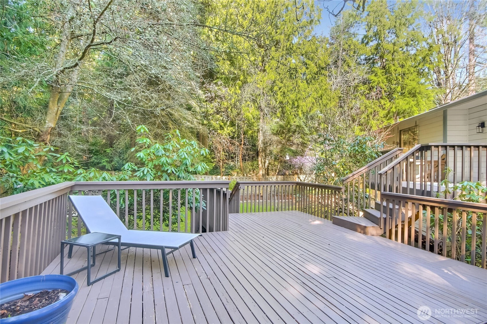 Beautiful, established, serene, wooded neighborhood in Picnic Point area! Thoughtful spaces, generous sized fully fenced lot, multi level deck, ideal for a vibrant outdoor life, gardening, play or relaxing in your own private, natural setting. Fruit trees and mature landscaping w/stepping stones and patio for fire pit. Covered front entry to light filled home with large windows and wood blinds. Fresh interior paint. Spacious kitchen, all stainless steel appliances stay. Formal dining, living area with fireplace and vaulted ceilings. Separate stairs to front facing loft/office/reading nook. Large primary suite with private 3/4 bath and walk-in closet. Full guest bath and 2 more bedrooms upstairs. Lower level opens to patio, backyard. This part of the home features a large bonus room with fireplace + flex area that could be additional office. Downstairs also has a 4th bedroom and ample storage areas. Huge laundry room, 3/4 bath, Double car garage. Lot set against private greenspace. Newer roof and furnace! Alarm system in place. A large driveway with additional space for RV or boat parking. Pre-inspection is available for your peace of mind. Excellent Mukilteo Schools.