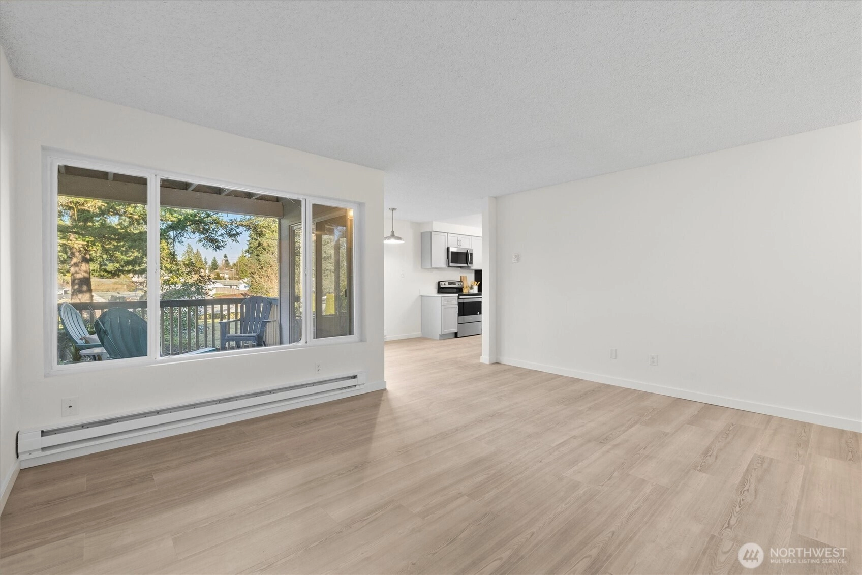 Welcome home to this beautifully remodeled and spacious 1-bedroom condo! Thoughtfully updated with new flooring, trim, fresh paint, modern cabinetry, quartz countertops, an undermount sink, and stainless steel appliances, this home blends style and comfort. The bedroom boasts two oversized closets, while the large covered deck provides the perfect space to unwind year-round. Enjoy resort-style amenities including an outdoor pool, sauna, clubhouse, and expansive laundry facility. Low HOA dues cover water, sewer, and garbage. Ideally situated near premier shopping and dining, light rail access, I-5, Hwy 99, and Alderwood Mall. Plus, two dedicated parking spots make everyday living easy.