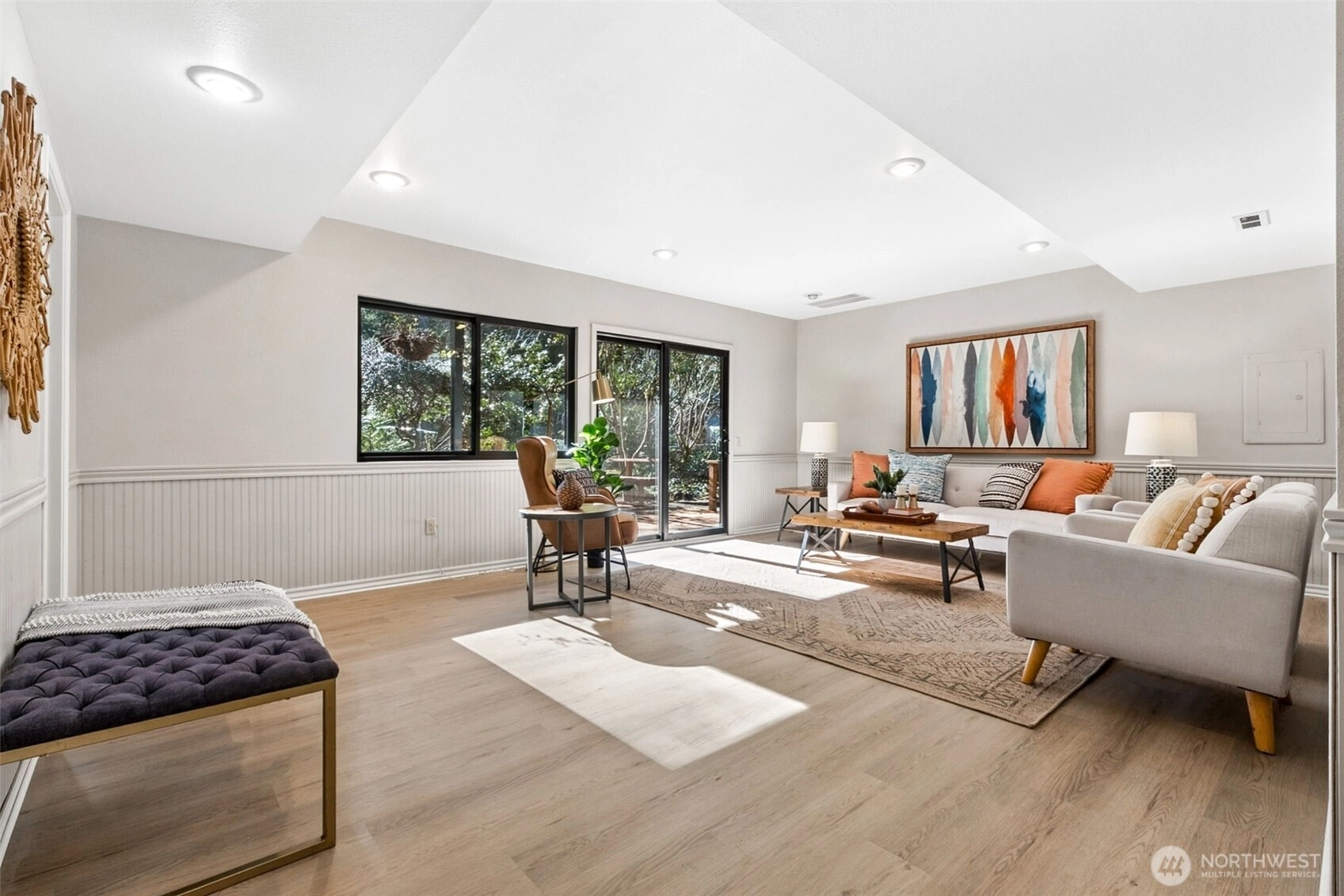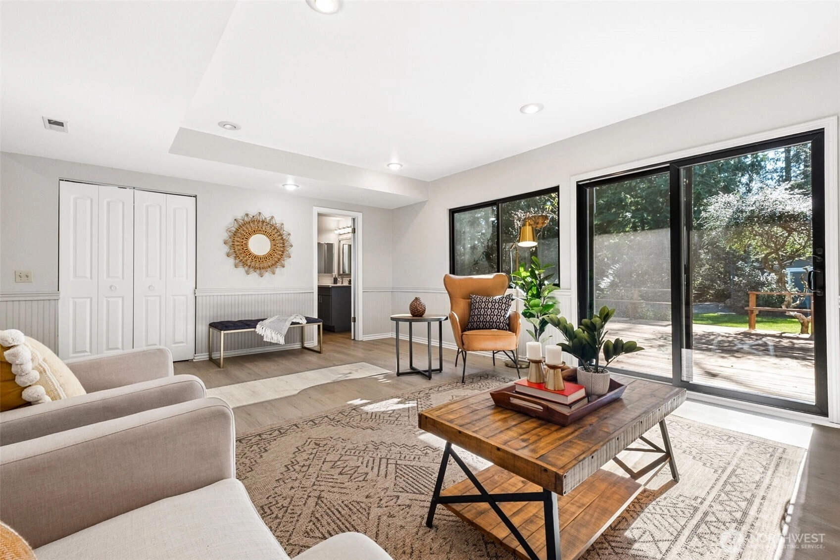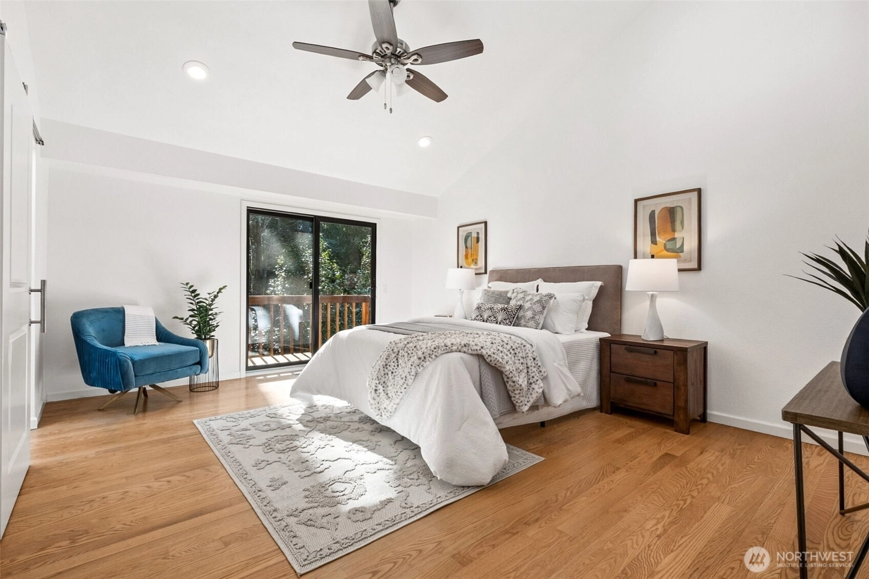 Tucked down a private cul-de-sac in the desired south Issaquah neighborhood of Mirrormont, this sun-drenched contemporary retreat offers the rare combination of elevation, privacy & a beautifully flat yard that truly sets it apart. Perched up above for added light & territorial feel, yet surrounded by usable, level grounds, this is a lifestyle opportunity buyers wait for. Step inside & immediately experience the drama of a soaring double-height entry & vaulted ceilings that carry through most of the main level. Large windows + clerestory as well, flood the home w/natural light. Interior feels both open & connected to the surrounding greenery. The remodeled kitchen is a true centerpiece, featuring rich cherry cabinetry & an entire wall of pantry-style storage to meet every organizational need, along w/peninsula island offering casual breakfast seating. Additional space for breakfast table, reading nook, or relaxed lounge area, perfect for morning coffee or evening wine. Main-level primary suite is a peaceful retreat w/vaulted ceiling & expansive windows + remodeled bath w/spacious walk-in shower. 2 additional bdrms—or home office option. The LL expands the home’s functionality w/generous family room perfect for media, play, or gathering + huge walk out deck! 2 additional bdrms or flex rooms + 3/4 bath enhances potential for guest or MIL living. Flat lot has room to run, garden, entertain, & play, w/athletic court & storage shed. Mirrormont has optional community amenities!