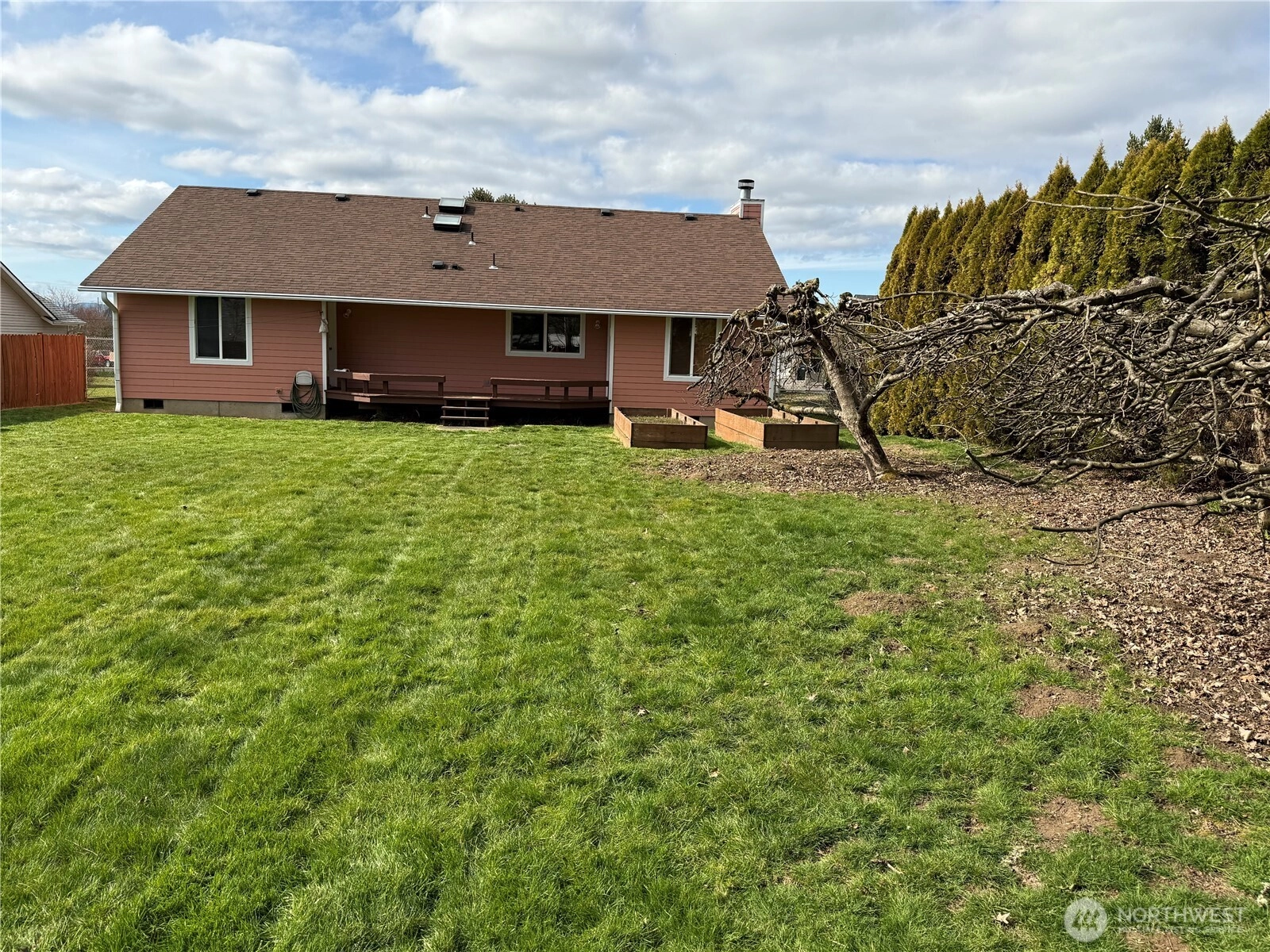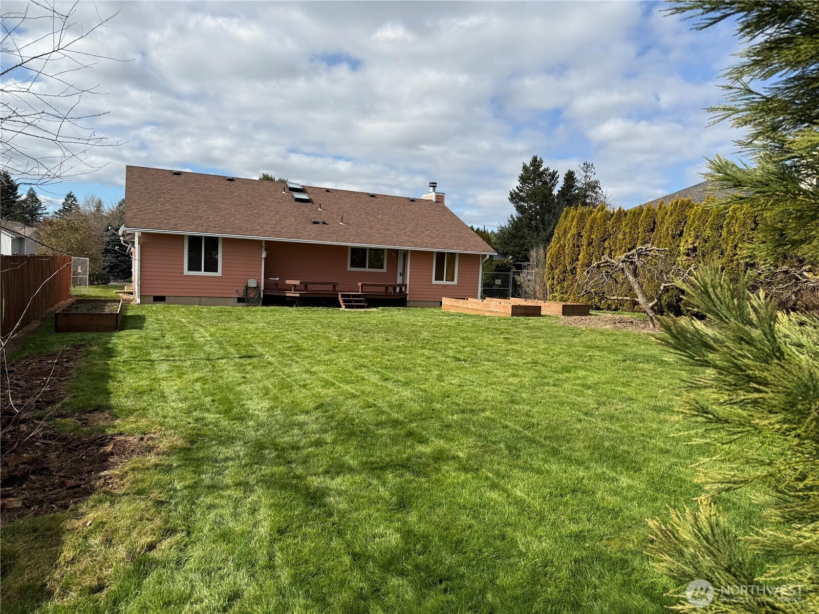 Welcome to this charming 3-bedroom, 2-bath rambler located in the desirable Jackson View Estates neighborhood. Situated on a spacious quarter-acre lot, this well-maintained home offers comfort, functionality, and room to grow. Step inside to find fresh new carpet and a cozy wood-burning fireplace—perfect for gathering on cool Northwest evenings. The thoughtful single-level layout provides easy living, while large windows and skylights invite natural light throughout. Outside, gardeners and outdoor enthusiasts will appreciate the ample yard space, established fruit trees, and room to cultivate your dream garden. Enjoy your morning coffee under the covered front entry or host gatherings on the covered back deck overlooking the fully usable yard. Recent updates include a newer roof and newer hot water tank, providing peace of mind for years to come. A leaf guard gutter system adds convenience and low-maintenance living. All appliances stay, making this home truly move-in ready. If you’re looking for comfortable single-level living in a quiet, established neighborhood with space to enjoy the outdoors, this is one you won’t want to miss!