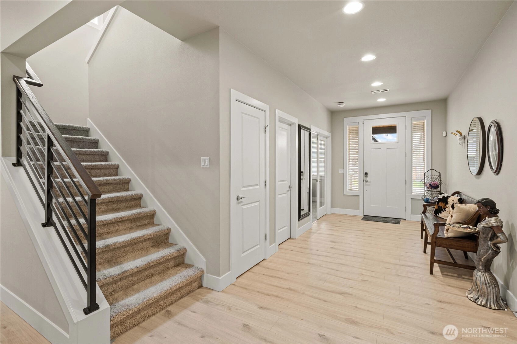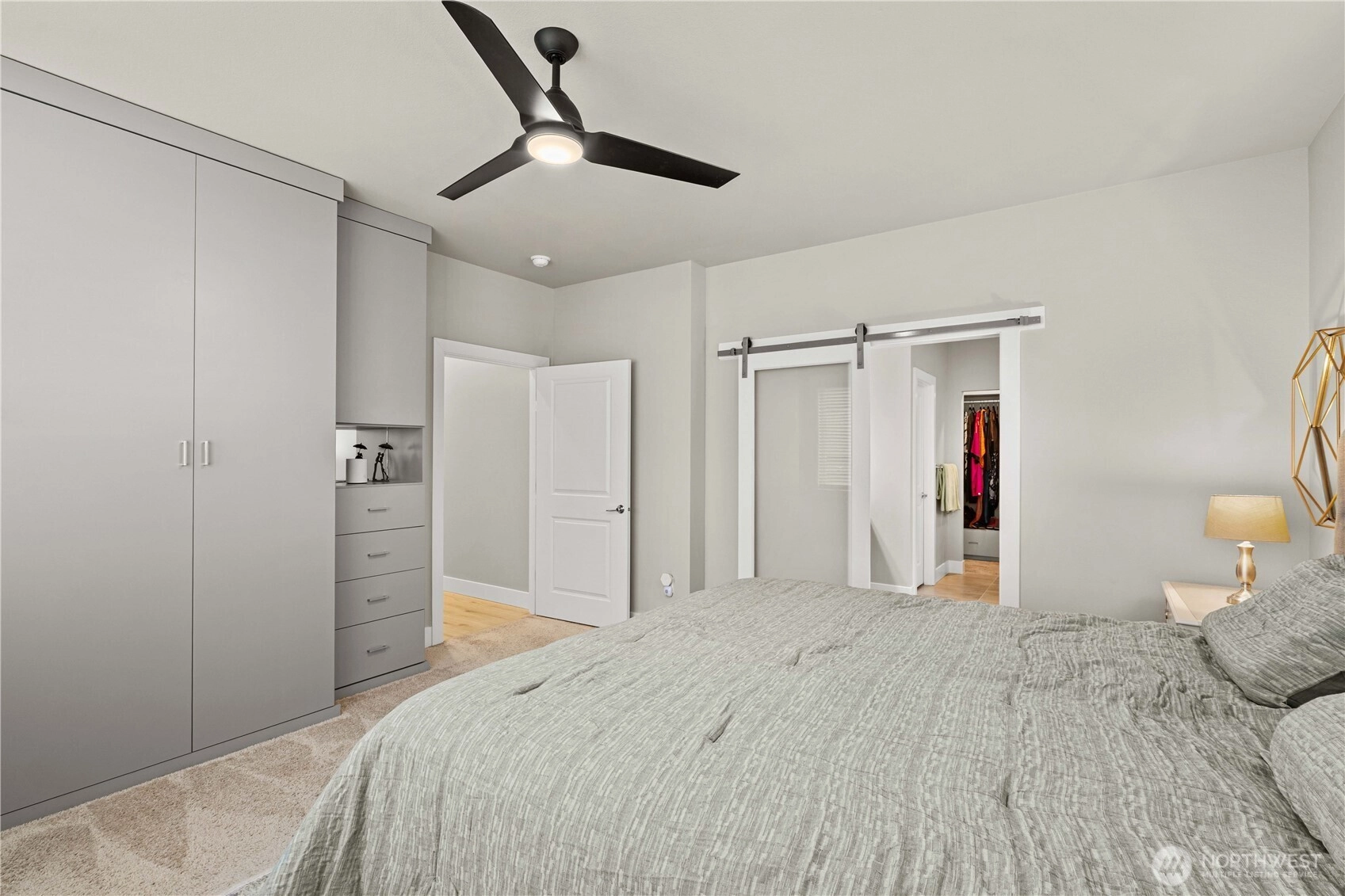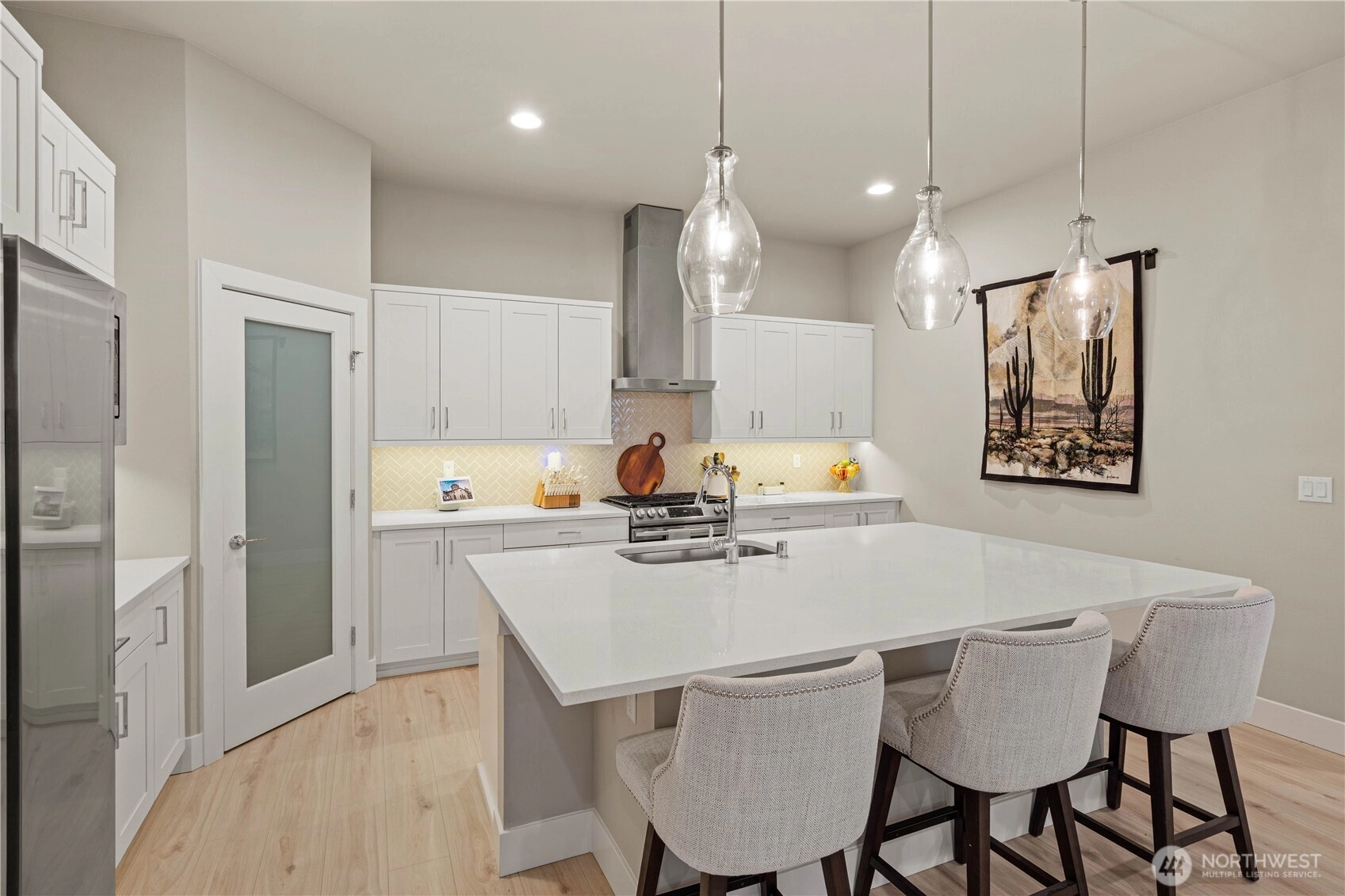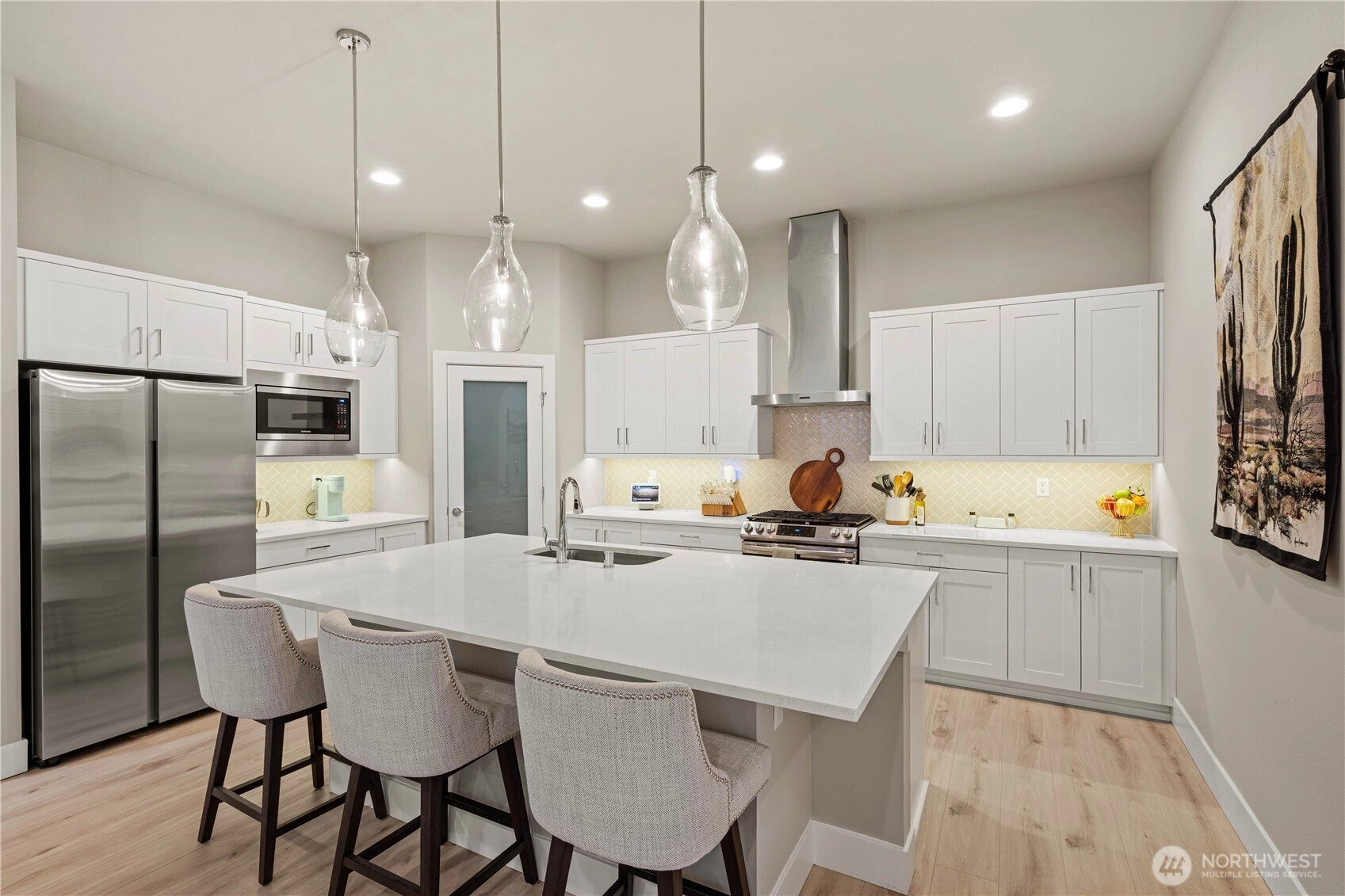 Welcome to this stunning 3 bed, 2.5 bath Rush home in Berggren’s Landing, Puyallup. Built in 2022, this 2,838 sq ft residence combines modern elegance with thoughtful design and premium upgrades. The main-floor primary suite features a spa-inspired ensuite with soaking tub, floor-to-ceiling tiled walk-in shower, and custom-built wardrobe organizers. The open-concept great room flows seamlessly to the gourmet chef’s kitchen with oversized island with seating, full-height tile backsplash, quartz countertops, stainless steel appliances, gas range, soft-close cabinets, and pantry. A versatile den on the main floor provides an ideal office or guest space. Upstairs, secondary bedrooms and a spacious bonus loft offer flexible living. The backyard is a private oasis with Trek deck, low-maintenance turf, and fully fenced yard. Additional highlights include EV charger and custom storage racks in the garage, plus an automatic generator to ensure you’re never without power. Energy-efficient systems, durable flooring, and quality millwork throughout. Move-in ready, turnkey, in the top-rated Puyallup School District, near shopping, dining, parks, and SR-512/I-5 access.