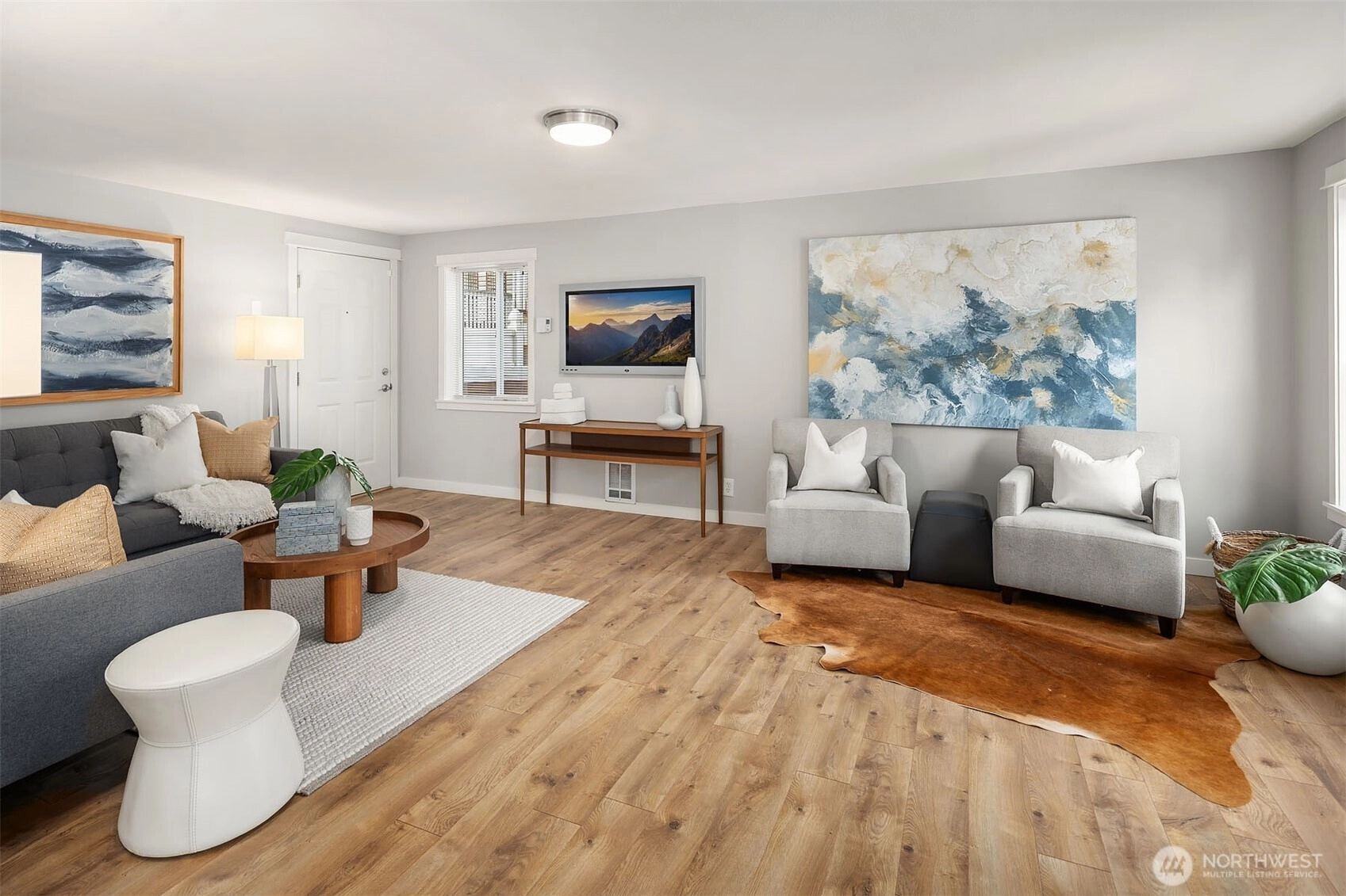 This charming Cape Cod-style townhome in desirable Woodridge has everything. With no shared walls, abundant windows, and an expansive nearly 2,000sf plan, this home lives like a house, but with the lock and leave convenience of a condo. The main floor features a chef’s kitchen with stainless steel appliances, quartz counters and island; living room with fireplace, large family/bonus room and half bath. Upstairs includes a primary suite with ensuite bath and walk-in closet, flex/office space, plus 2 more beds and a shared bath. And you won’t find a home like this with 2 garages (fits 4 cars) anywhere else! Close to downtown Bellevue, top schools and parks, with convenient freeway access, this location simply cannot be beat. No rental cap, pets welcome.