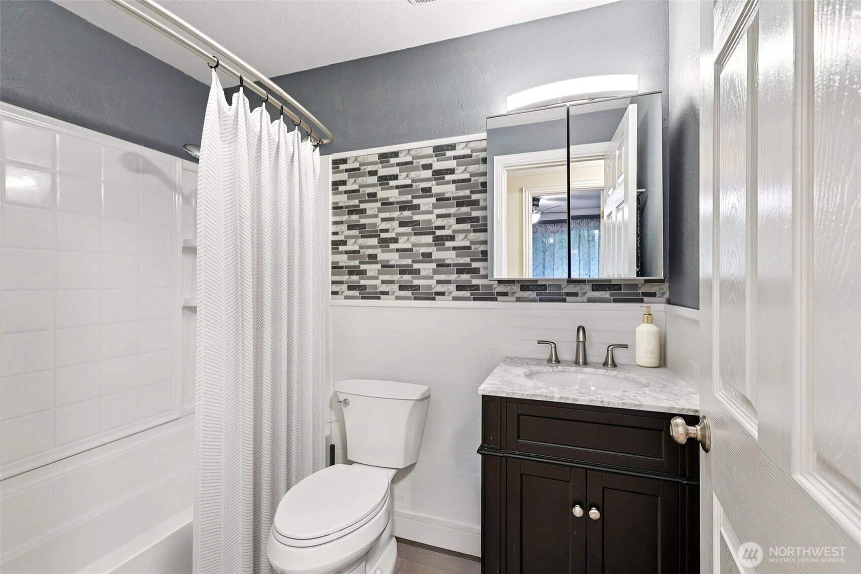 Discover this beautifully updated 4-bedroom, 2.75-bath rambler offering over 1,800 sq ft of comfortable living in Kirkland’s desirable Finn Hill neighborhood. The modern kitchen features quartz countertops, stainless steel appliances, and a gas range—perfect for culinary enthusiasts. Enjoy a spacious dining room with vaulted ceilings and easy access to the backyard patio, ideal for indoor-outdoor living. The primary bedroom with a walk-in closet and new shower is located off the dining room and boasts vaulted ceilings. A versatile rec room with its own en-suite bath provides flexible space—perfect as a second suite, guest room, or home office. Step outside to a fully fenced backyard home to a meticulously maintained 4-6 person hot tub with impeccable landscaping with a garden shed, offering privacy and space for outdoor activities. Conveniently located near parks, shopping, and commuter routes. Experience comfort and convenience in this wonderful Finn Hill home—schedule your tour today!