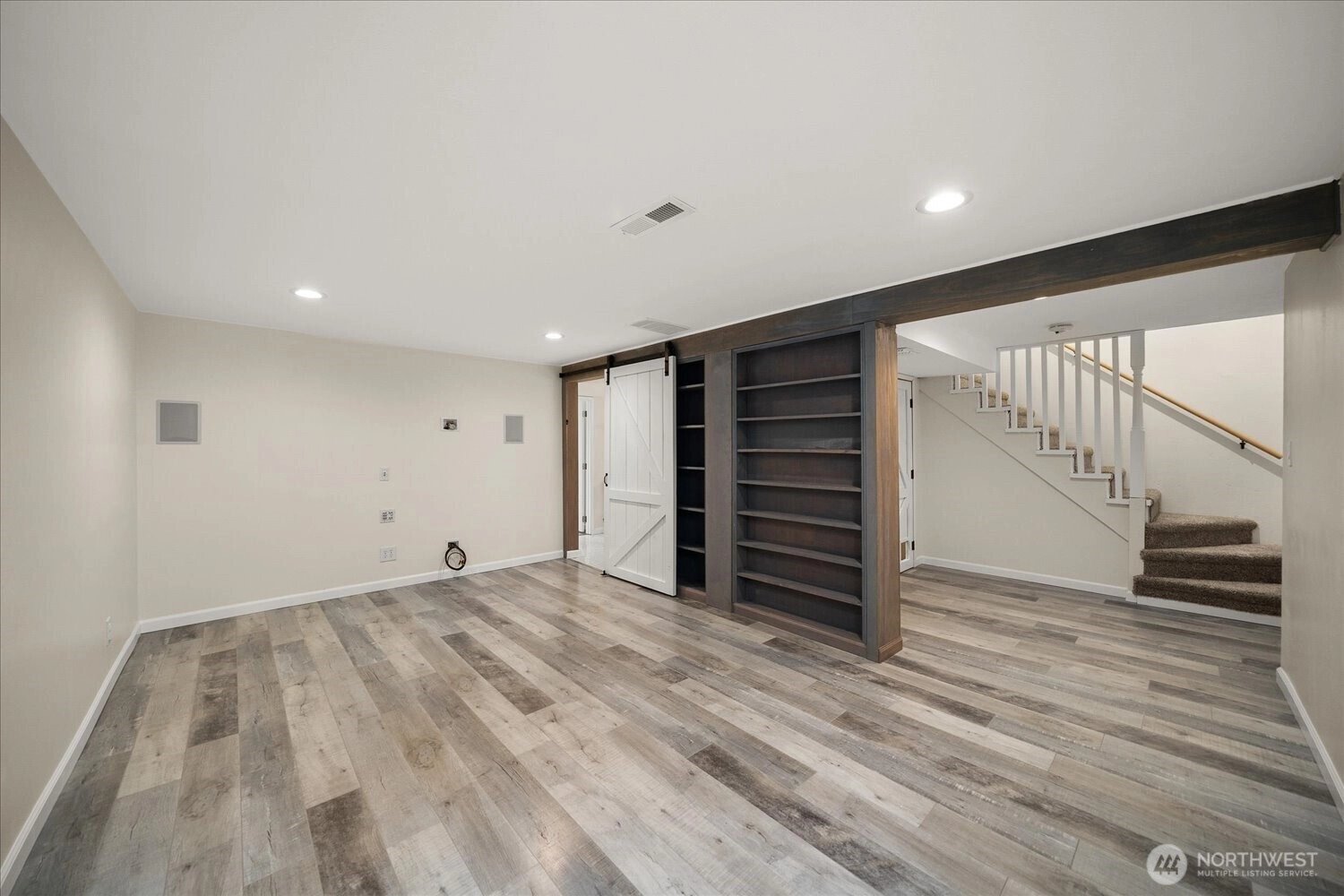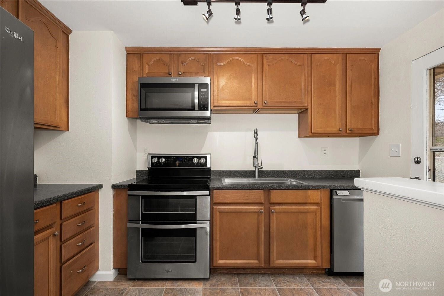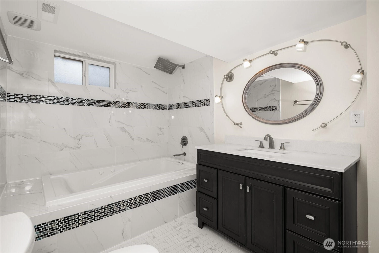 Charming 3-bedroom, 2-bathroom rancher with a 2-car garage and shop area in Spokane’s Shadle Park neighborhood! This updated home features fresh paint, refinished hardwood floors, and a spacious main floor with two bedrooms, one bathroom, and an updated kitchen with stainless steel appliances and an adjoining dining area. The basement offers a family room wired for surround sound, along with a large primary bedroom and oversized bathroom with a jetted tub. Step outside to enjoy the fully fenced backyard, perfect for relaxing or entertaining. Additional highlights include a newer roof and vinyl windows. Conveniently located within walking distance of parks, schools, shopping centers and the public pool.