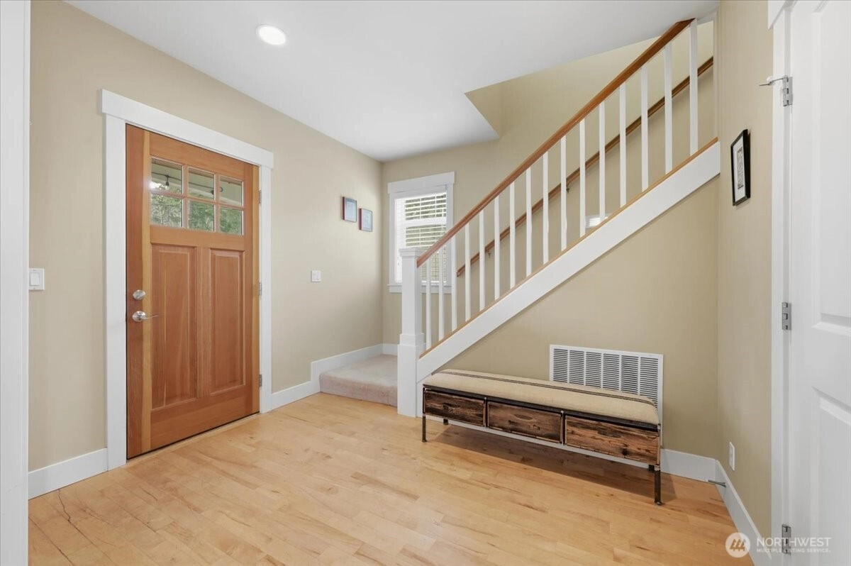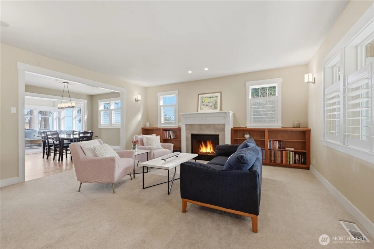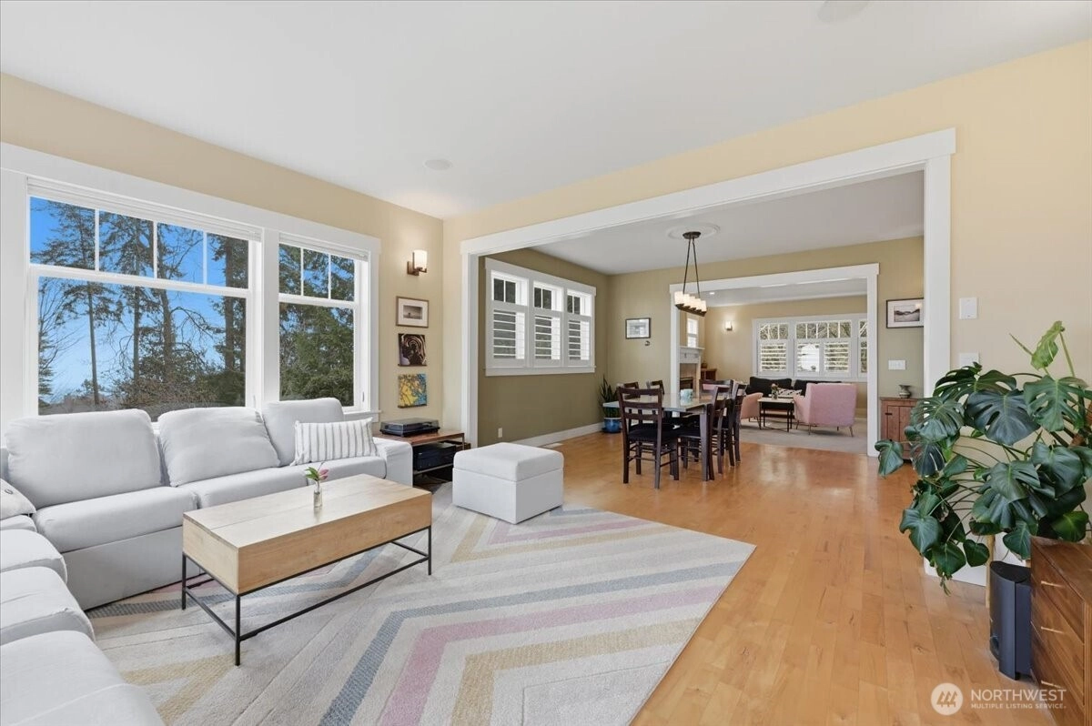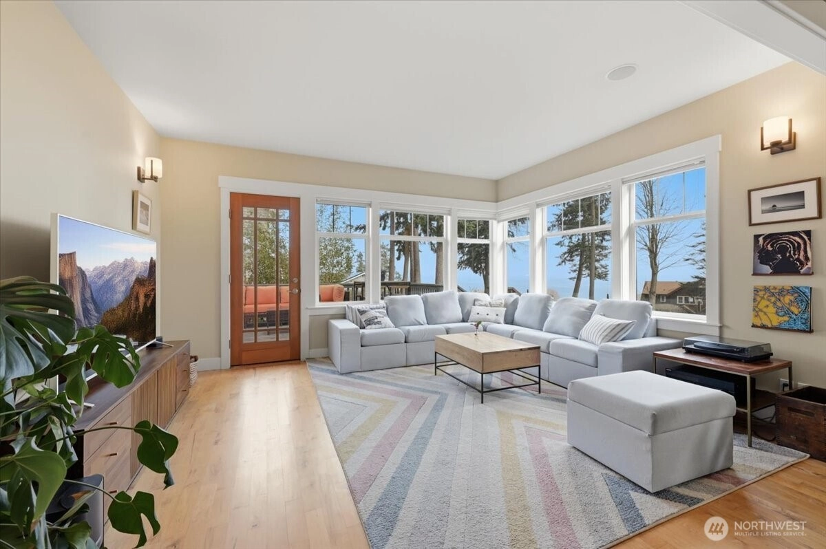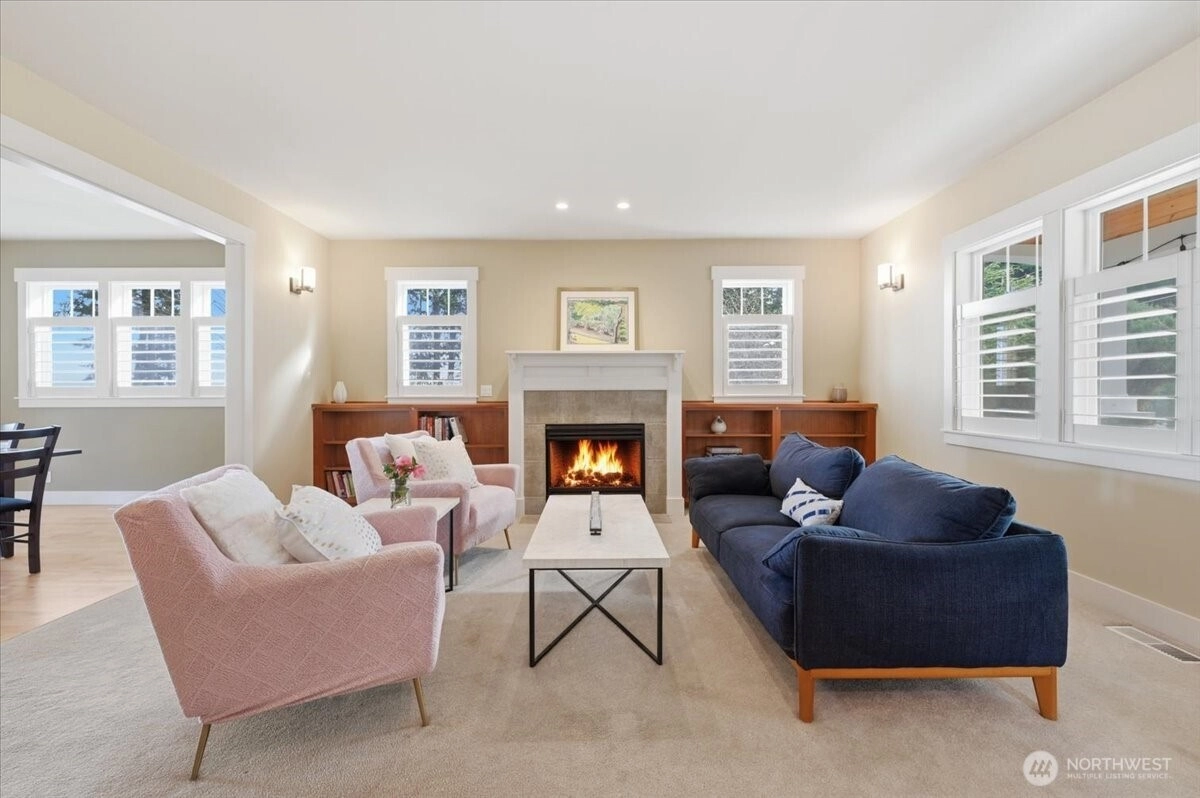Welcome to your gorgeous new home with sweeping water views in President Point, Kingston. This 2,980 sq. ft. Craftsman-style residence greets you with a spacious rocking-chair front porch and an inviting open living area with a cozy fireplace. The layout flows seamlessly into a generous dining area, den, and a light-filled kitchen featuring new appliances, quartz countertops, cherry cabinets, hardwood floors, plantation shutters and updated sink and faucets. The home offers three generous bedrooms, including a large primary suite with a 5-piece en-suite bath, and new quartz countertops. A spacious bonus room and a total of 2.75 bathrooms provide plenty of flexibility for work, guests, or hobbies. The oversized two-car garage includes abundant storage. Set on a beautifully landscaped lot just under 17,000 sq. ft., the property sits in a neighborhood that enjoys 500 feet of shared private beach, only a short walk from the home. From both the interior and the back entertainment deck, you’ll take in expansive views of Puget Sound, Mt. Baker, Kingston, and the ferries. With only a 7-minute drive to the Kingston Ferry and the Fast Ferry to downtown Seattle, this location is truly a commuter’s dream.