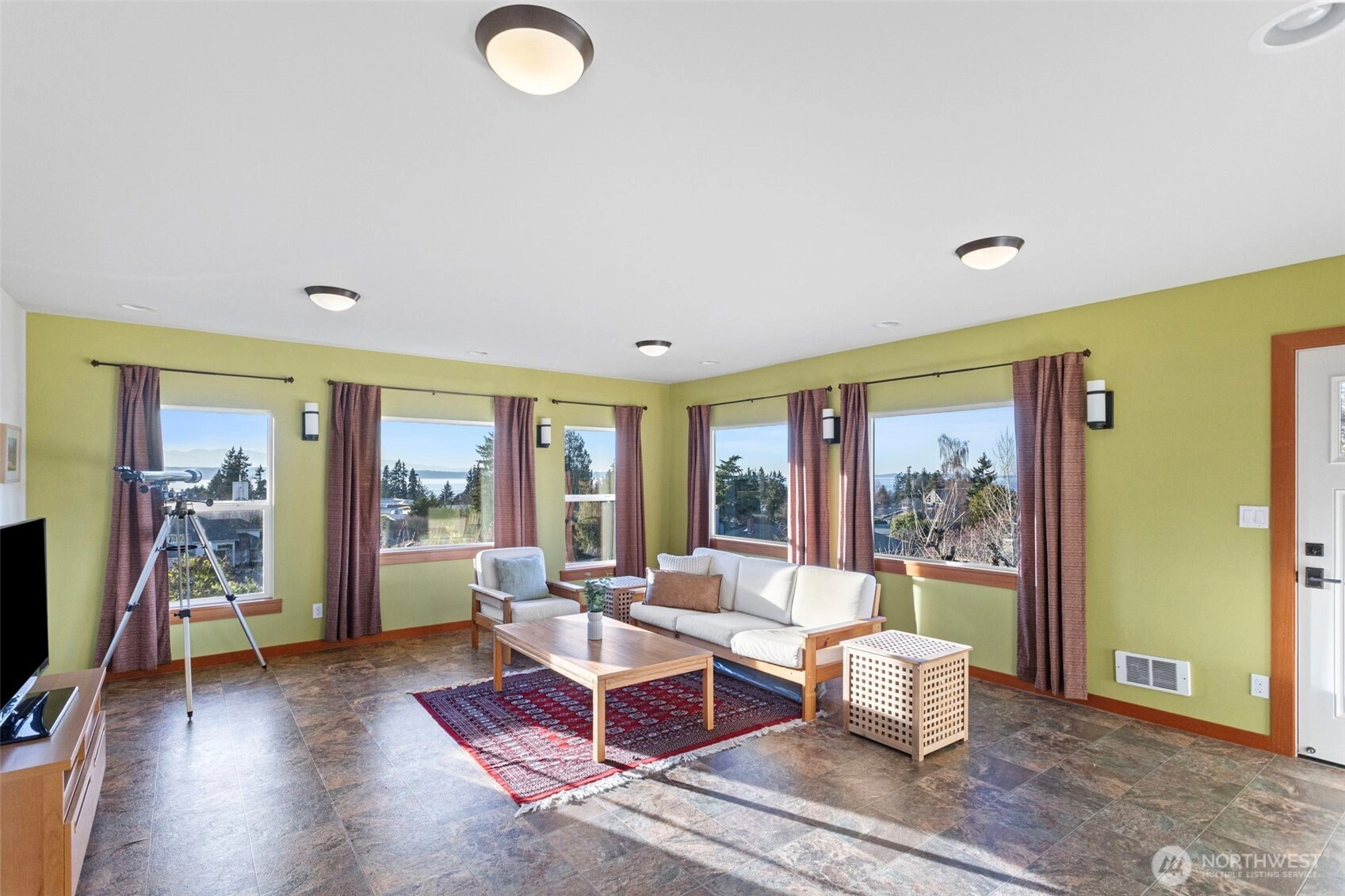 Timeless sophistication meets contemporary living- Boasting an array of high-quality finishes, this immaculate 4 bed | 3 bath Craftsman is an absolute showstopper! Custom designed and completely rebuilt in 2003 after a historic fire, this gem is nestled in the heart of The Edmonds Bowl. You are sure to fall in love with the Western exposure, breathtaking sunsets and sweeping views of Puget Sound, the Edmonds Ferry and the Olympic Mountains- enjoyed from the spacious wrap-around deck or one of the many high-end, tailor-made, Loewen windows. Custom Hubbardton Forge lighting package, impeccable millwork, exposed beams, and white oak hardwoods are just a few of the awe-inspiring touches found throughout the home. Do you like to entertain? The updated gourmet kitchen comes complete with custom rough-edge slab granite counters, a NEW LG stainless steel appliance package and freshly refinished cabinets. Main level bedroom or office & full bath. Venture upstairs to your primary suite featuring some of the best views in the house, en-suite & walk-in closet. NEW Roof (2025), 2 newer furnaces, freshly painted garage, professional landscaping and a beautiful stamped concrete driveway. In need of more space? Don't miss the 350sf finished bonus room | flex space off the garage, 350sf unfinished storage space & RV parking. Plenty of room for all of your toys! Minutes from delectable restaurants, shopping, beaches, parks, Boeing, I5, HWY 99, and all that Downtown Edmonds has to offer!