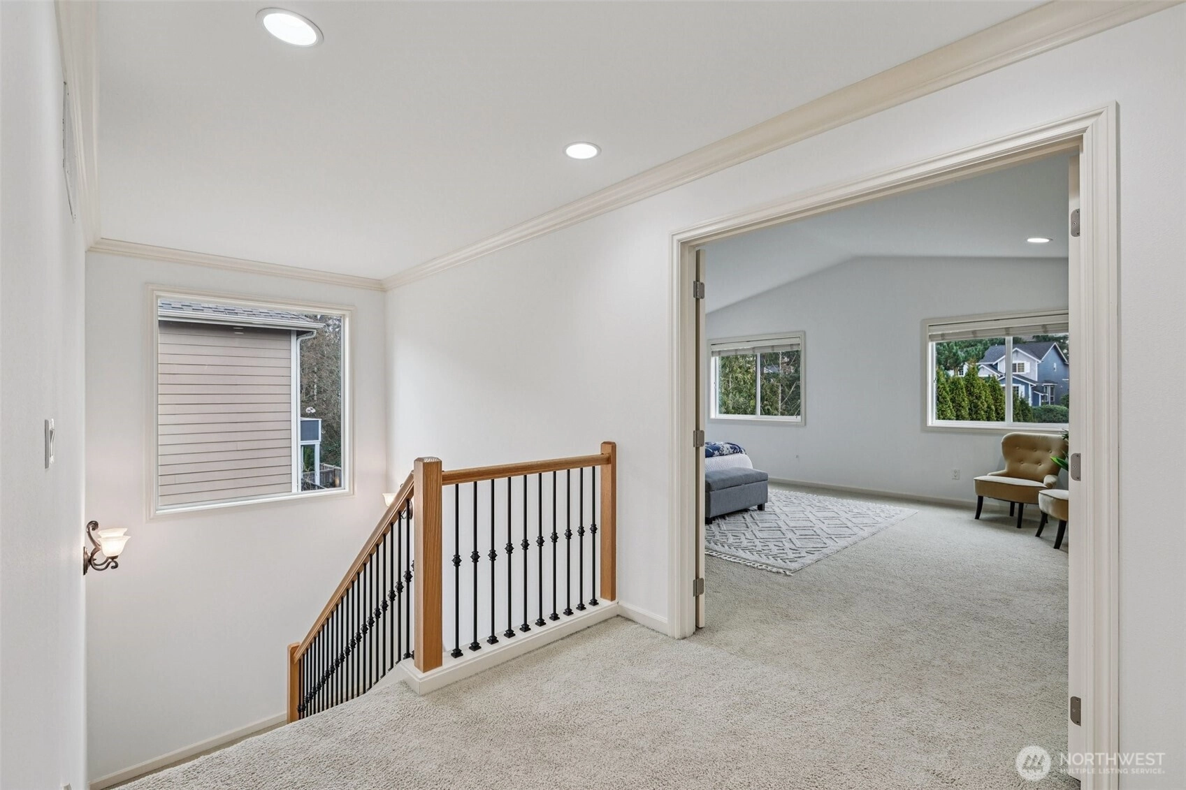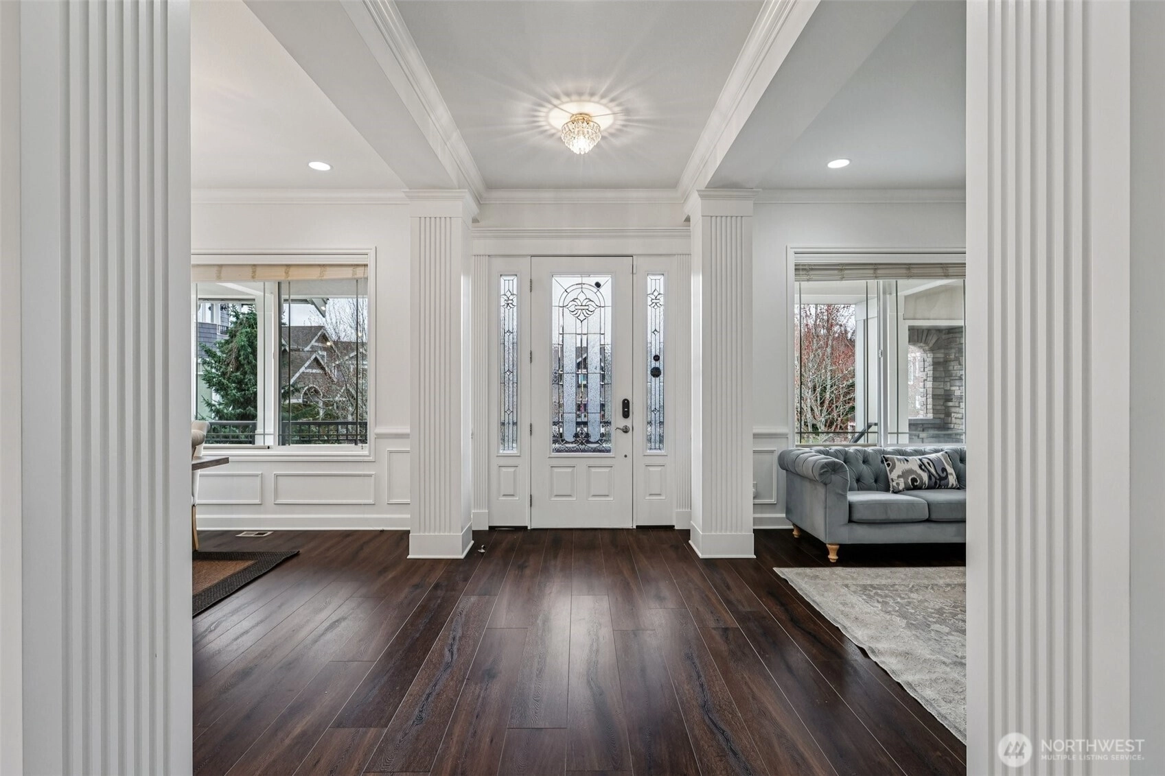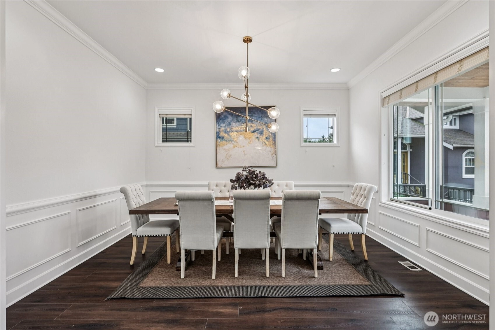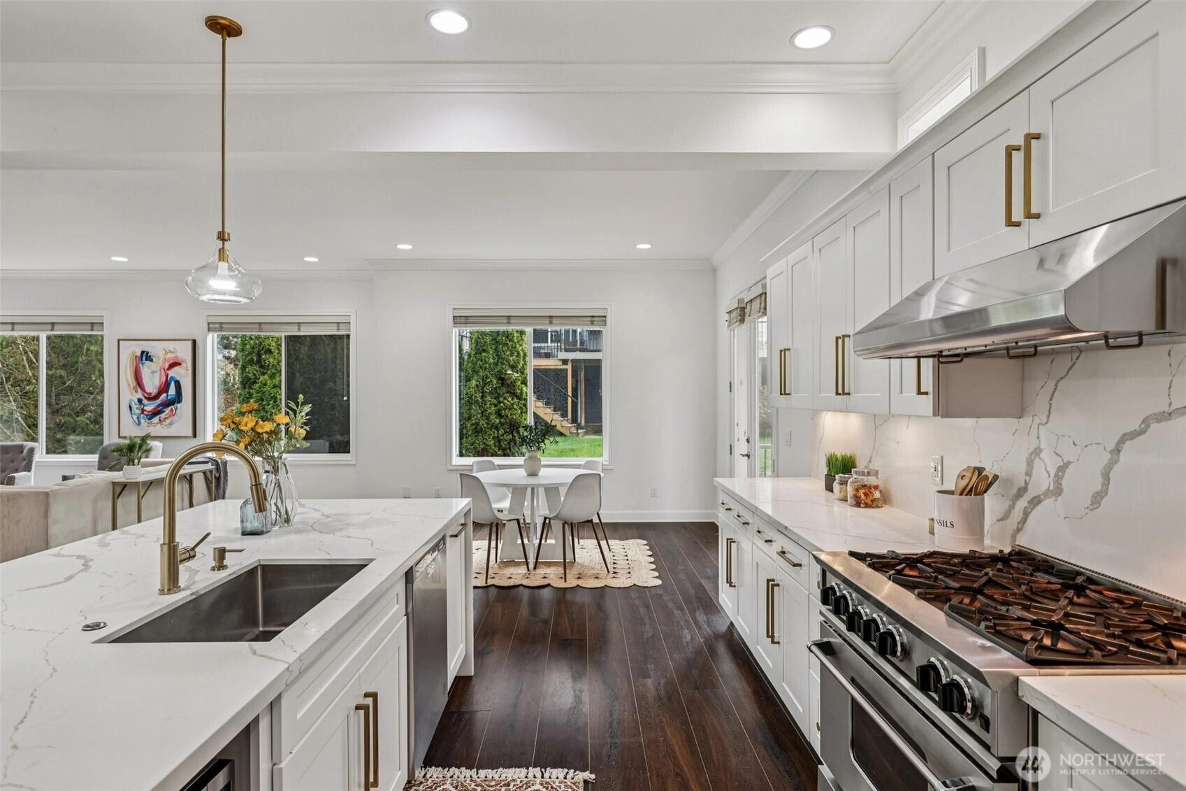 Nestled in the desirable Chateau Meadows community of West Hill, this impeccably maintained 5-bedroom, 3.5-bath home offers space, comfort, and thoughtful updates in a peaceful setting. Fresh interior paint and LVP flooring throughout the main level create a bright, cohesive feel, while large windows bring in abundant natural light. The chef’s kitchen, updated three years ago, features quartz countertops, stainless steel appliances, and a brand new dishwasher. Hardwood floors, custom millwork, and quality finishes add warmth and character throughout. The spacious primary suite includes vaulted ceilings and walk-in closets for a relaxing retreat. Additional features include central vacuum, security and sprinkler systems,A/C installed in 2024, and extra storage conveniently located near the garage. Located just minutes to I-405 and Northshore Schools, this home offers everyday convenience in a sought-after neighborhood.