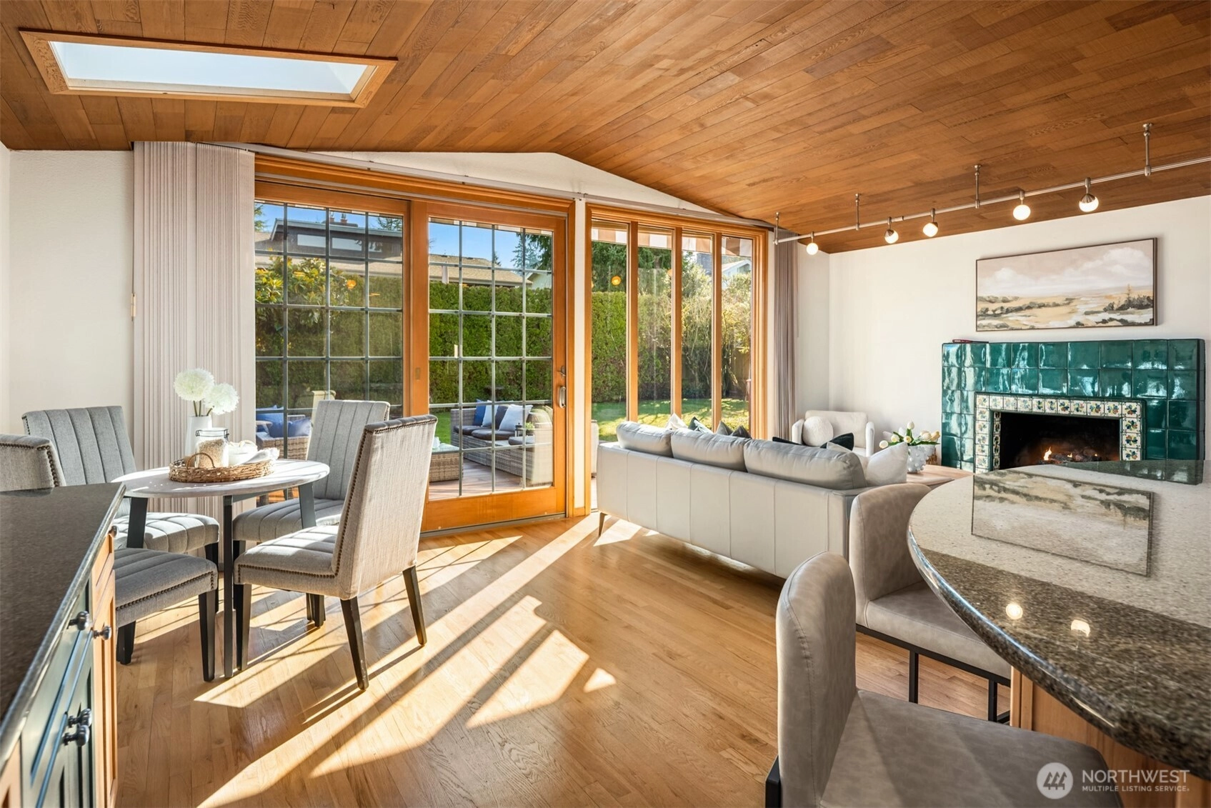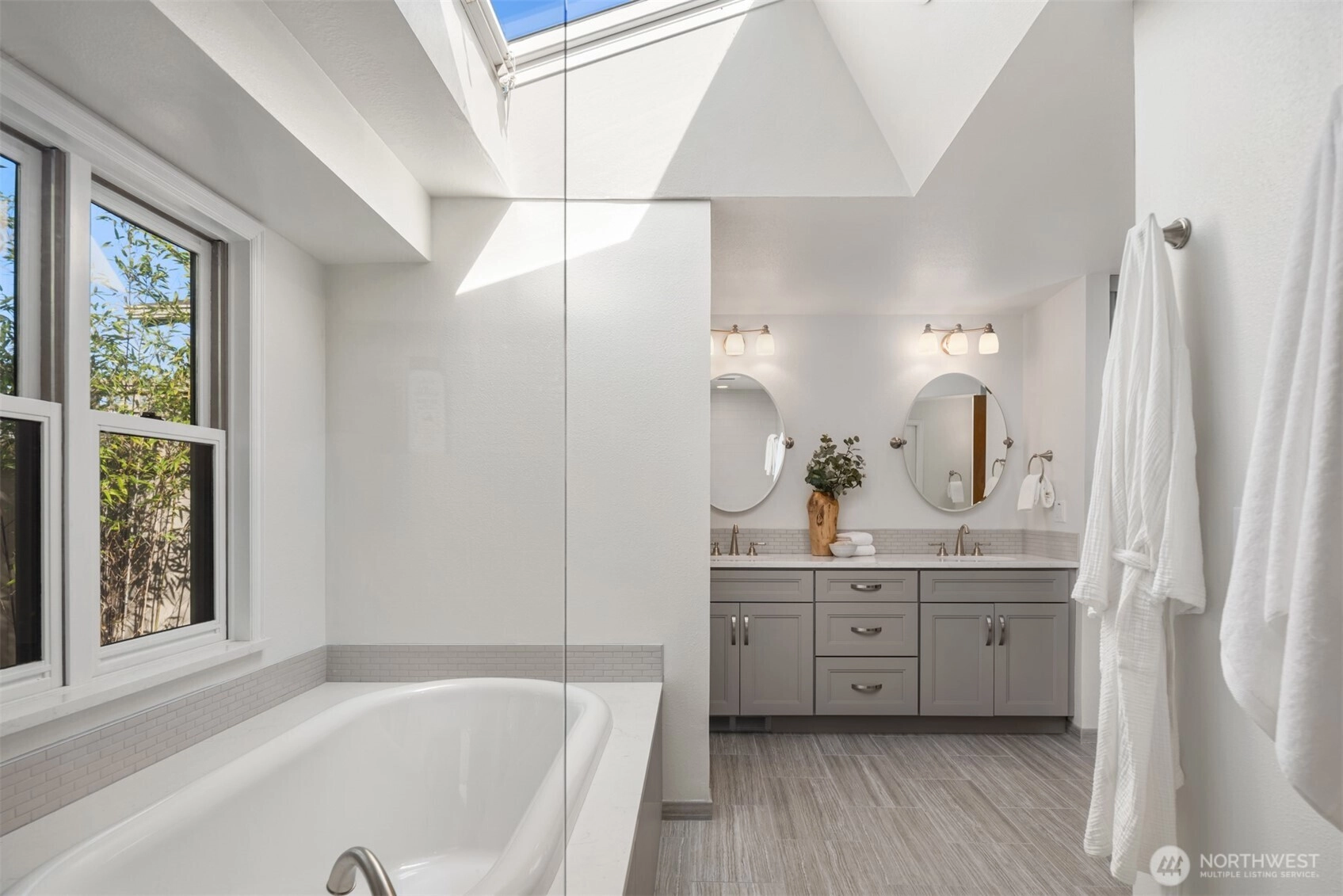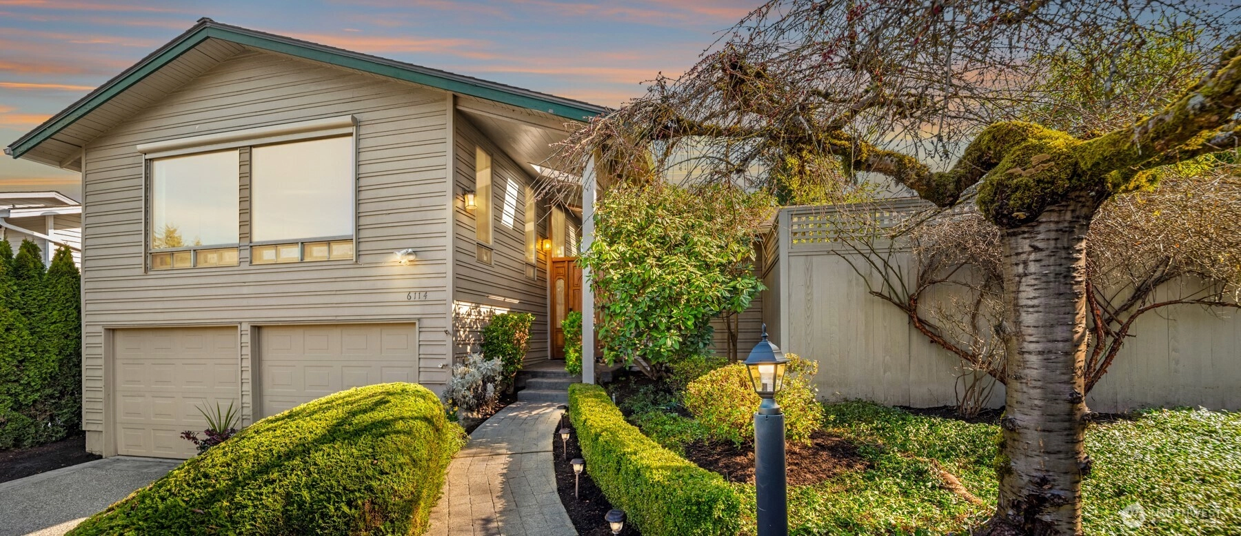 Welcome to one of West Houghton's finest addresses — a serene cul-de-sac where breathtaking west-facing views of the snow-capped Olympic Mountains and spectacular evening sunsets greet you daily. The Cross Kirkland Corridor trail entrance is just half a block away, and Houghton Beach Park, Carillon Point's marina and waterfront restaurants, Lake Washington, Google Campus, downtown Kirkland, Metropolitan Market, and Lakeview Elementary are all within blocks.Inside, a fully reimagined primary suite stuns with spa-caliber bath, custom ceramic tile, and an expansive walk-in closet with built-ins. The updated kitchen features a large island and professional Viking 6-burner gas cooktop, opening directly to a generous deck and a beautifully private backyard — flat, fully usable, with a lush grass lawn, mature landscaping, and built-in garden space perfect for the avid grower. Three gas fireplaces add warmth and ambiance throughout. Downstairs, a bedroom, ¾ bath, and oversized rec room offer compelling MIL conversion potential. Light, airy, and lovingly curated — this one is special.