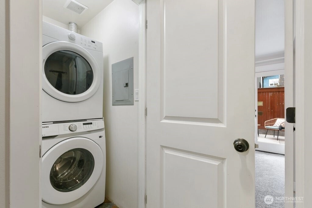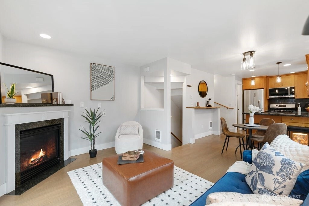 Nestled quietly off Delridge, this impeccably maintained townhouse is a breath of fresh air: sun-drenched, serene, and thoughtfully updated for the way you actually live. Freshly painted interiors glow with warmth, and the flowing open layout invites you to settle in, anchored by a cozy fireplace that makes the heart of the home feel like exactly that. A brand new washing machine, microwave, and water heater and top-down/bottom-up blinds bring effortless comfort to daily life. The downstairs bedroom spills out onto a generous covered patio with a retractable cover, your own private outdoor sanctuary, ready for morning coffee or evening wine in any season. Alley access with a dedicated parking spot rounds out this lovely package, and yes, free fiber optic internet wiring through Quantum Fiber is available. Steps to Delridge Playfield, tennis courts, winding walking trails, a beloved neighborhood brewery, coffee, pizza, and pho, with the RapidRide H Line just around the corner, making commutes a breeze.