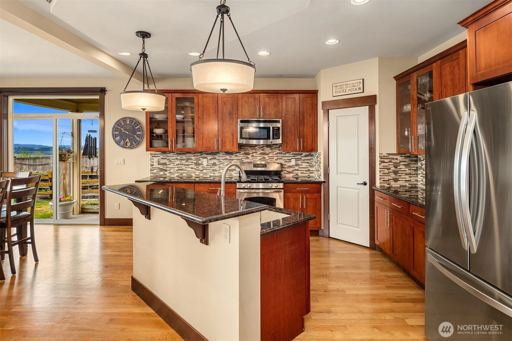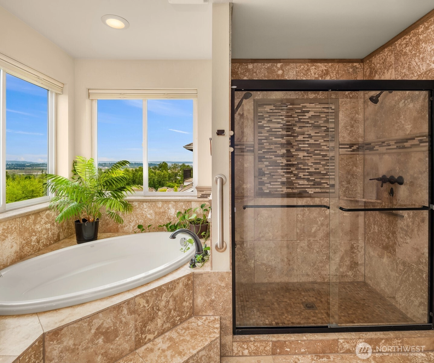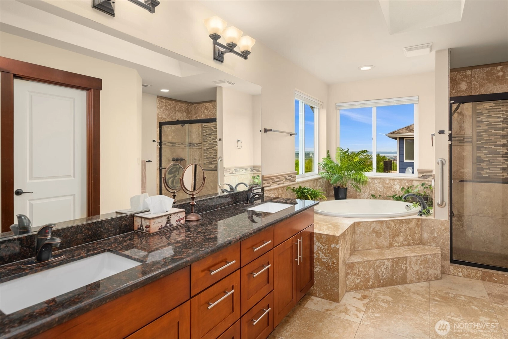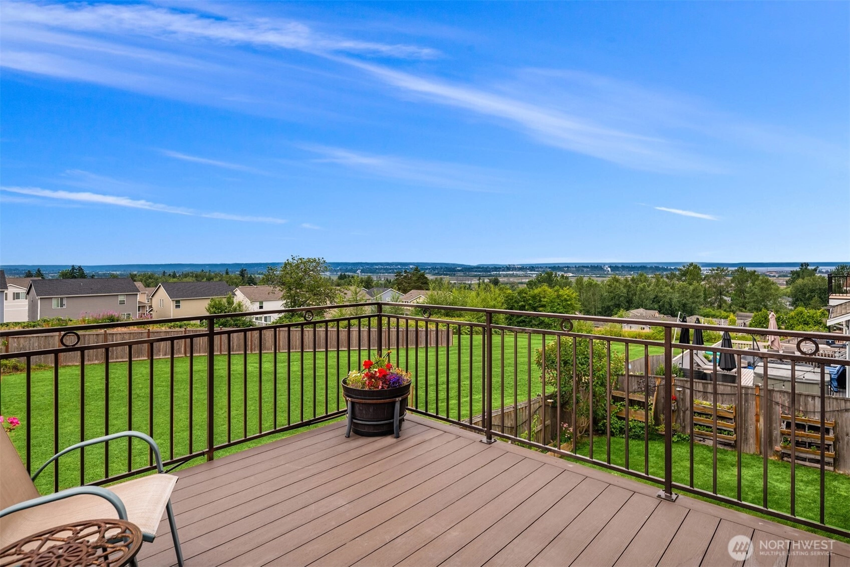 ARCHITECTURAL ELEGANCE ~ Divinely perched atop sought-after Soper Hill with sweeping 180° southerly views from Mt Pilchuck to Rainier, the Olympics, Puget Sound & the dazzling Everett skyline, this exquisite gem boasts one of the most scenic vantage points in all of Marysville! Ornate high-end finishes & sophisticated quality details abound. Spacious 2660sf open-concept 4 bed 2.5 bath masterpiece features oak hardwoods, oversized wood-wrapped view windows & extensive travertine marble highlights throughout. Formal living spaces lead to showcase granite kitchen with island bar, dining room with covered lanai & family room with slate fireplace accentuated by a stunning custom iron rail open staircase. Loft bonus room with skylights. Primary bedroom OASIS with cathedral ceilings, lavish 5-piece ensuite & french doors to top-of-the-world view balcony. Pristine & well-maintained original owner home with 3-car tandem garage & central A/C. Beautifully landscaped 6,970sf lot with sprawling lawns, greenhouse, patios, fire pit & striking curb appeal!