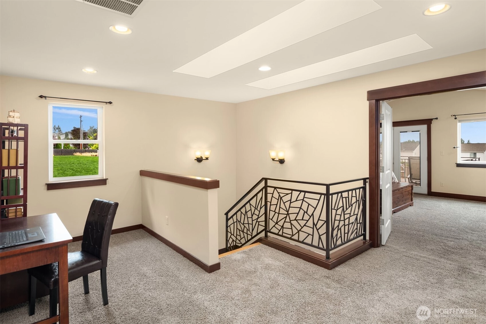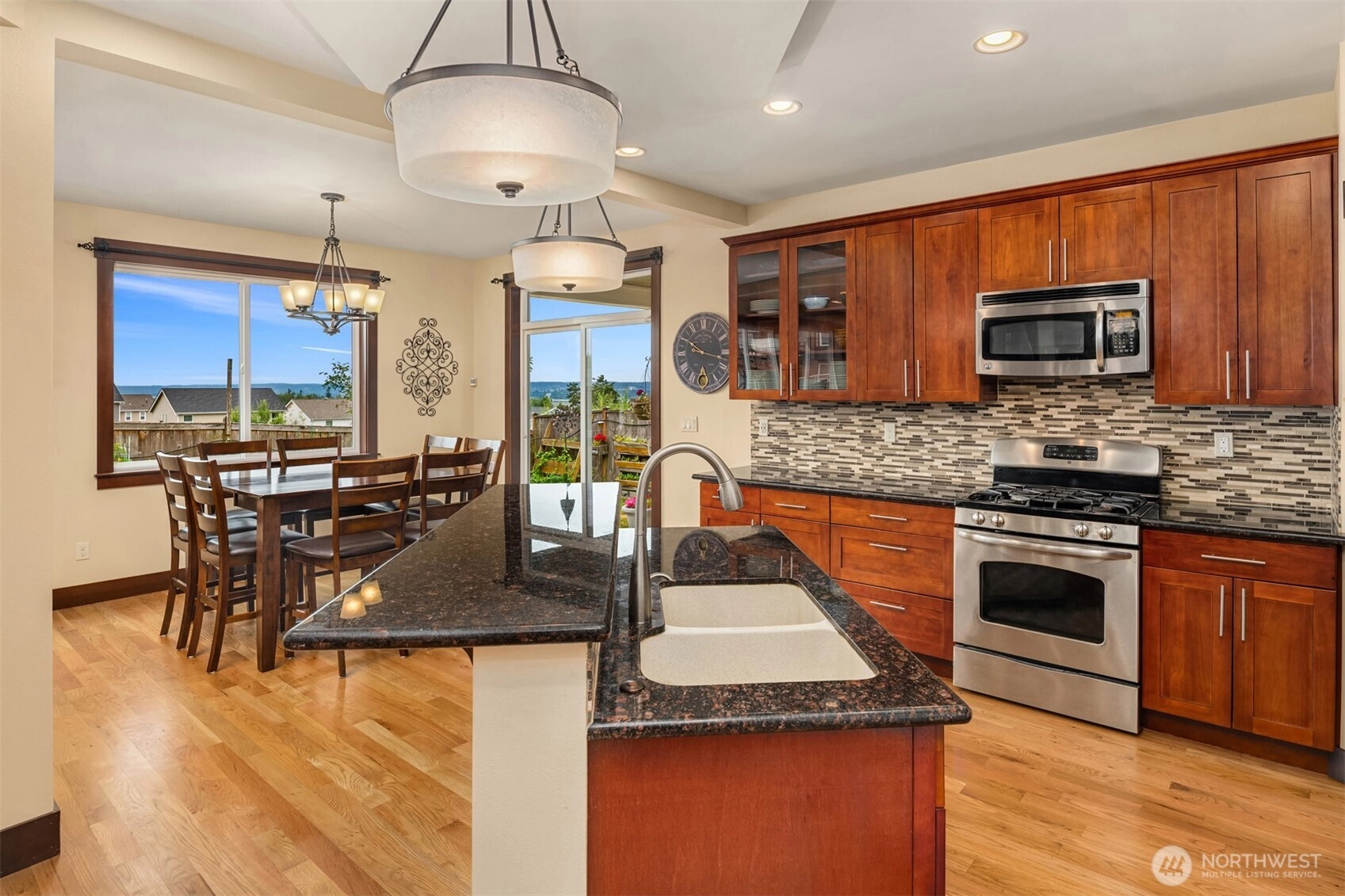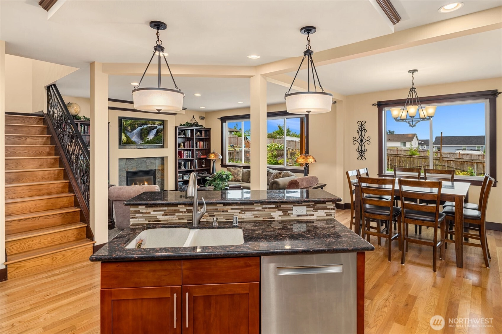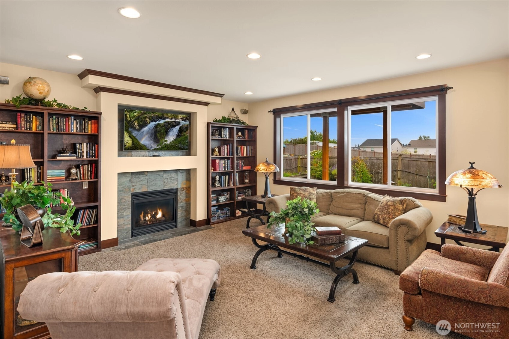 ARCHITECTURAL ELEGANCE ~ Divinely perched atop sought-after Soper Hill with sweeping 180° southerly views from Mt Pilchuck to Rainier, the Olympics, Puget Sound & the dazzling Everett skyline, this exquisite gem boasts one of the most scenic vantage points in all of Marysville! Ornate high-end finishes & sophisticated quality details abound. Spacious 2660sf open-concept 4 bed 2.5 bath masterpiece features oak hardwoods, oversized wood-wrapped view windows & extensive travertine marble highlights throughout. Formal living spaces lead to showcase granite kitchen with island bar, dining room with covered lanai & family room with slate fireplace accentuated by a stunning custom iron rail open staircase. Loft bonus room with skylights. Primary bedroom OASIS with cathedral ceilings, lavish 5-piece ensuite & french doors to top-of-the-world view balcony. Pristine & well-maintained original owner home with 3-car tandem garage & central A/C. Beautifully landscaped 6,970sf lot with sprawling lawns, greenhouse, patios, fire pit & striking curb appeal!