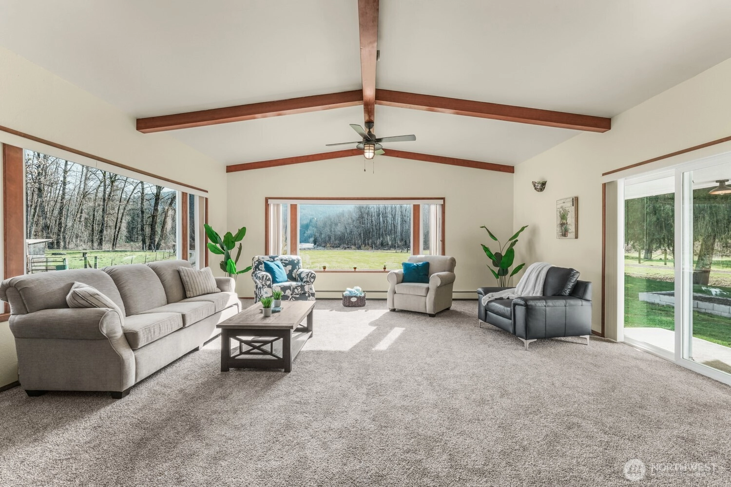 Enjoy breathtaking river & mountain views from private, secluded retreat tucked away at end of long driveway w/ lots of guest parking. Six beds & four baths plus fully equipped ADU, property offers incredible flexibility, ideal as short-term rental, event space or multi-generational living. Inside are vaulted ceilings accented by beautiful wood beams & cozy wood-burning fireplace. Basement ADU has own kitchen, bathroom, bedroom & living area w/ fireplace. Lower level has two additional bonus spaces, one designed as root cellar & other perfect for workshop or hobby area. Recent updates include fresh interior & exterior paint, updated light fixtures, hot water heaters, appliances in both kitchens, refinished trim & cabinetry, completely updated kitchen & baths, plus new floor coverings (carpet/laminate tile/tile), roof, windows & siding. The property is a peaceful space w/ many fruit trees, spacious garden area & riverside campsite. There is 10 cords of wood stocked up for the whole house wood boiler. Enjoy world-class fishing nearby. Additional features include extensive storage, three outdoor storage containers (included) & foxtail water spigots for added convenience. A rare opportunity to own a scenic & versatile property w/ endless potential. *For added peace of mind there is new blown in insulation in attic, new/updated water filtration system, emergency generator, smokehouse, shelters for live stock/chickens, separate heating for ADU.