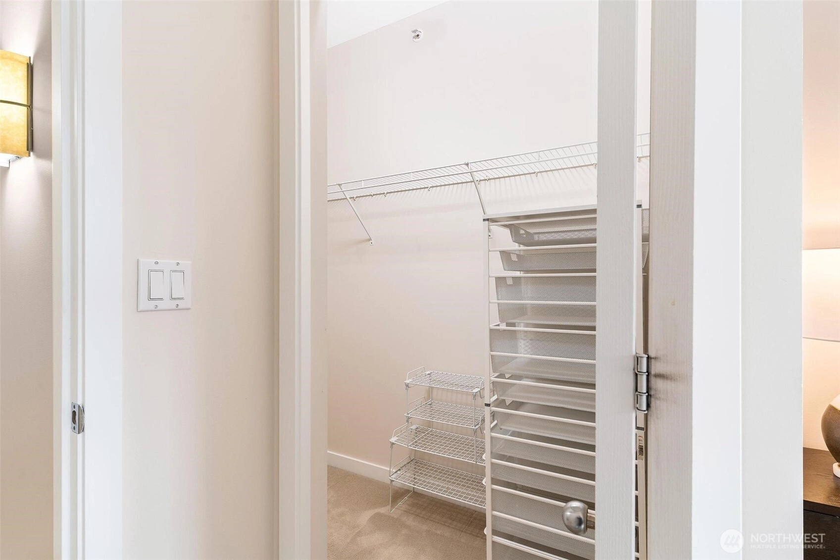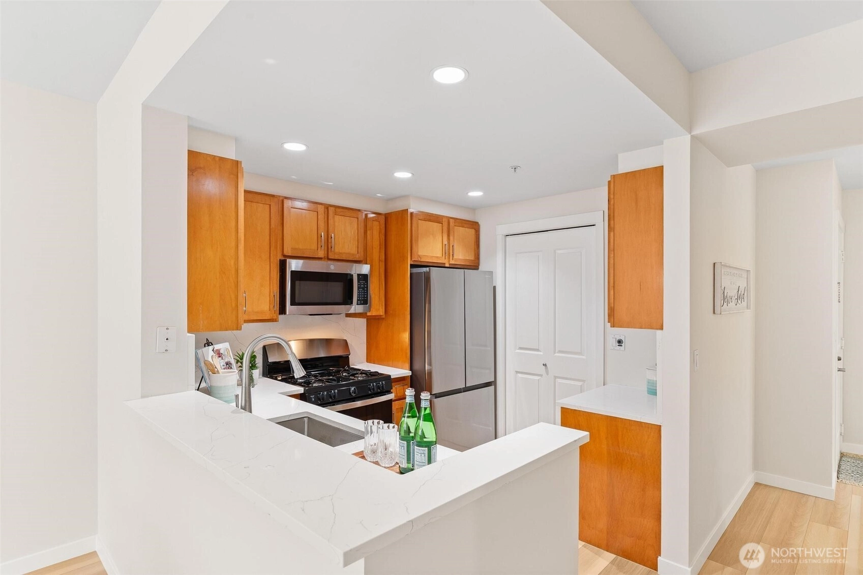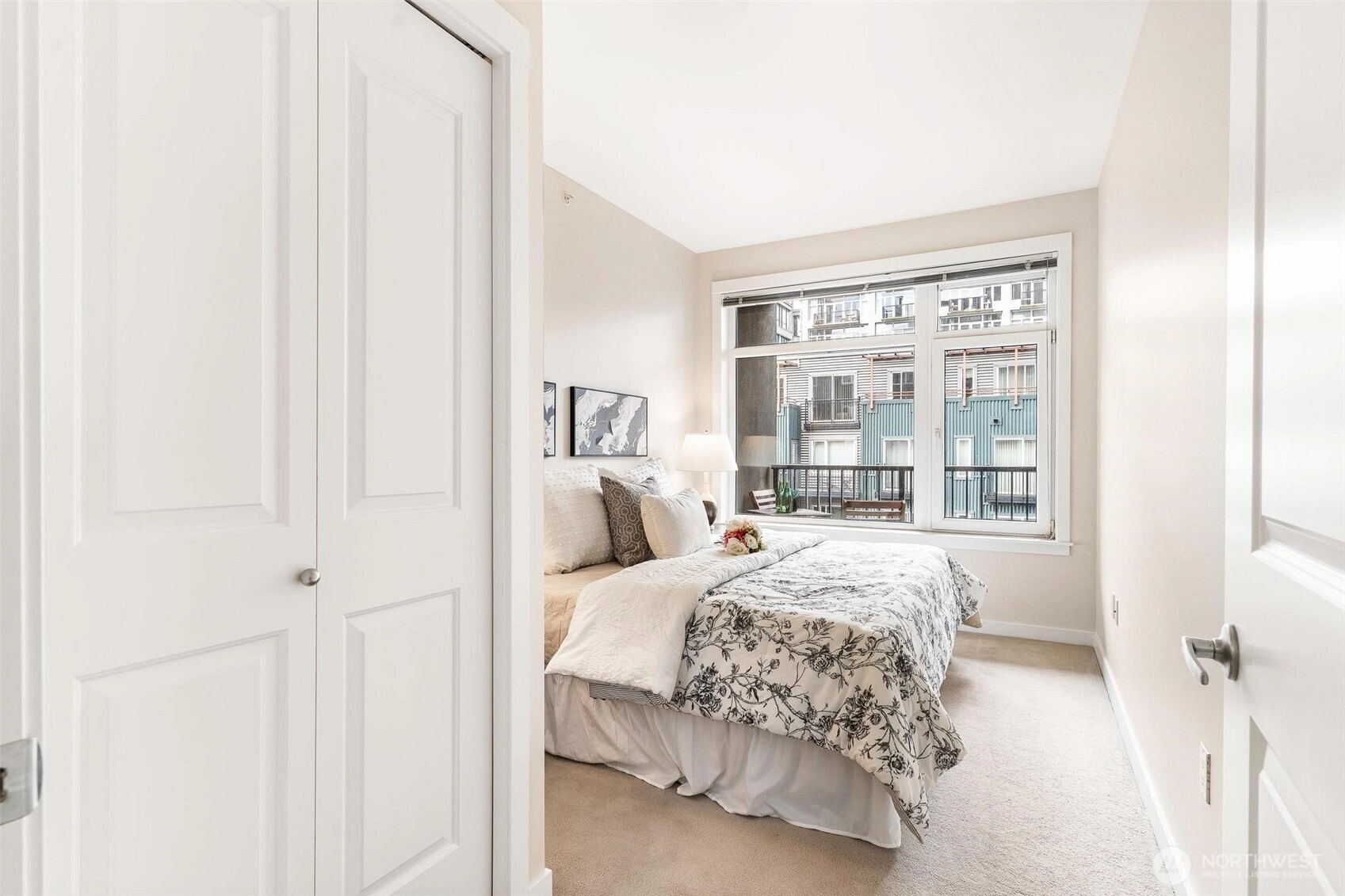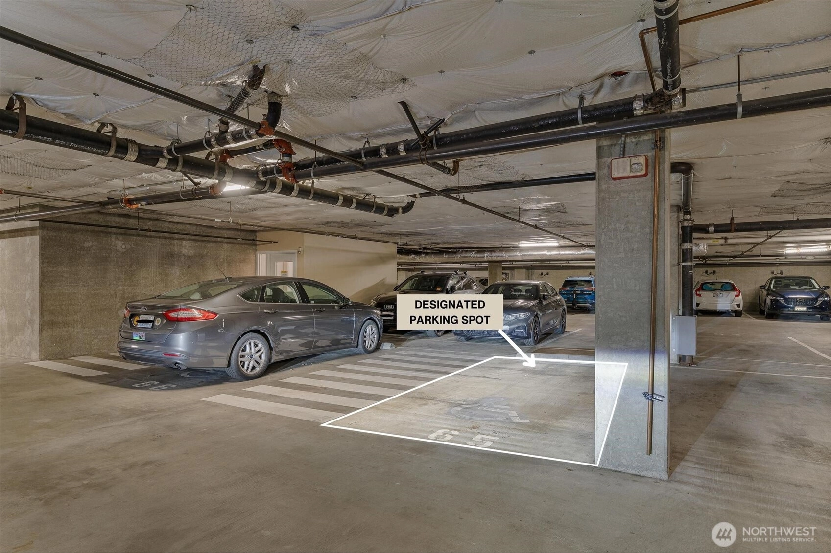 An amazing opportunity to own at The Vine in Belltown, a well-run, luxury building that takes pride in homeownership! The spacious 924sqft condo is a 1 bed, 1 bath plus a flex space that can be used as an office or guest room. The unit’s large footprint is significant for the area, as many 1-bedroom condos in this building range between 600-700sqft, making this condo a rare find for the neighborhood. Recent upgrades include new natural hickory LVP flooring, fresh paint, white quartz countertops in the kitchen and bathroom, and newer stainless-steel appliances. Open concept living/dining area with a gas fireplace, deck access with partial water views and large windows for natural light. Walk-in closet, in-unit new washer and dryer with plenty of storage space. One secure parking and storage space included. The building offers excellent amenities such as a 24-hour concierge, gym, on-site car wash and EV charger station, clubroom, rooftop deck with stunning Puget Sound views, guest suite & secure parking. The building sits in a walker's paradise (walk score 99), serving as a gateway between Belltown’s dining and nightlife and the tranquility of the waterfront.