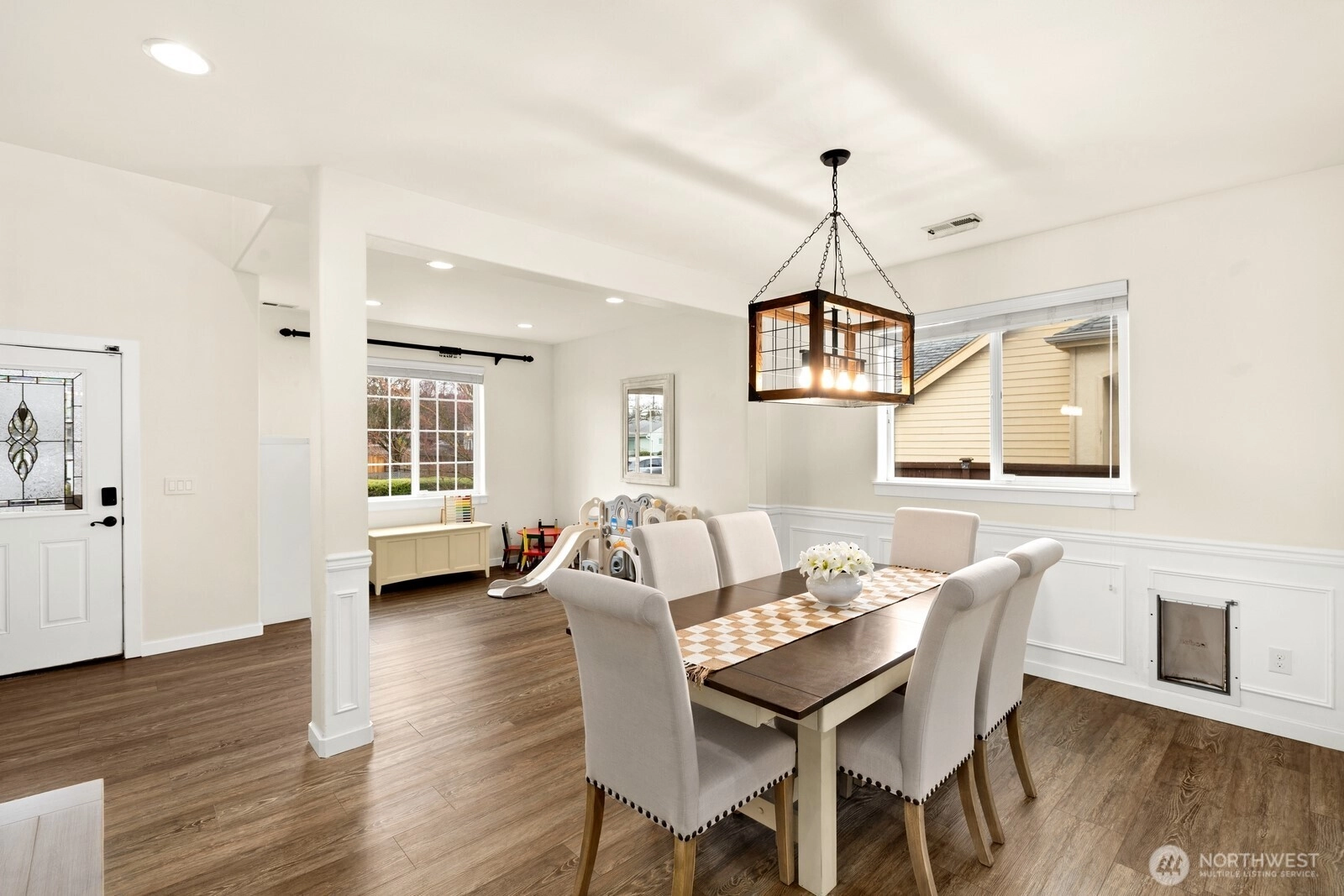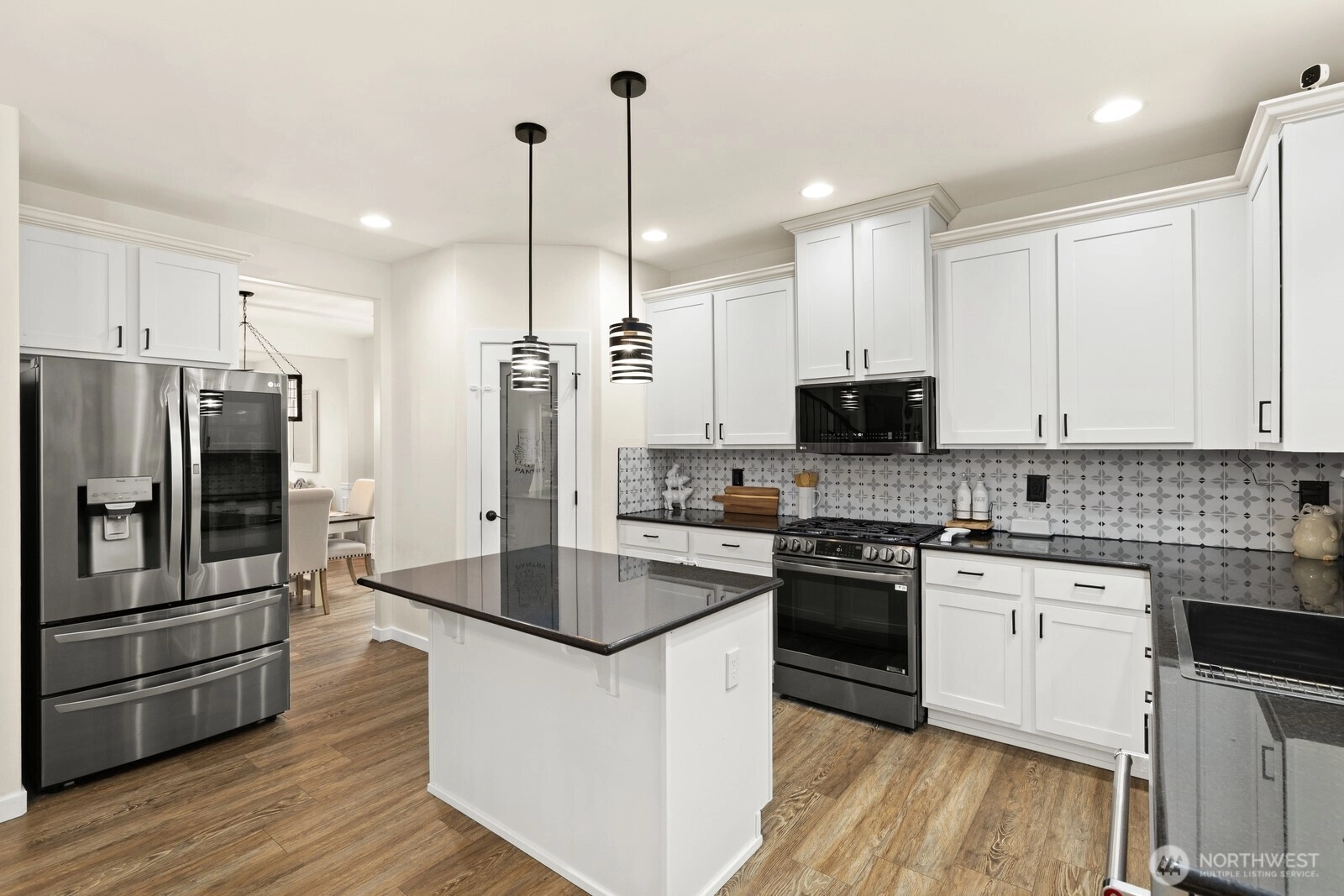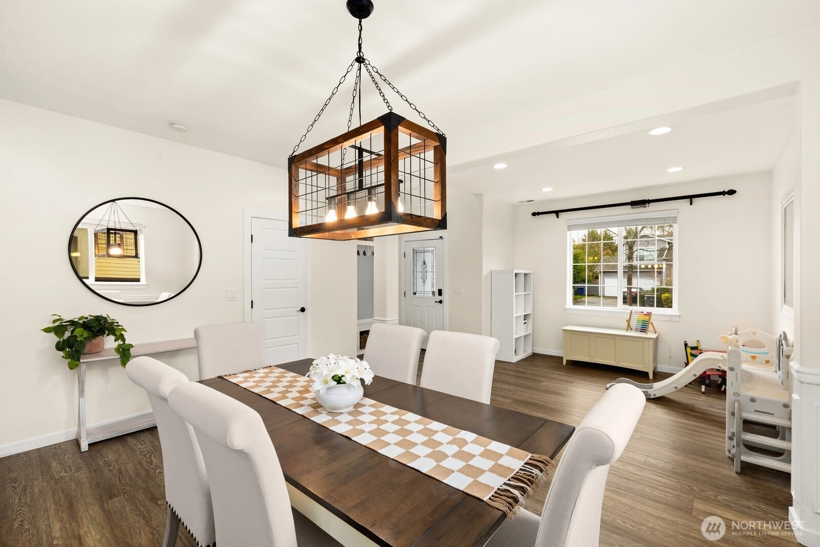 Beautifully updated and thoughtfully designed, this home offers exceptional flexibility, space, and outdoor living. The main floor features soaring 9’ ceilings, an open and inviting floor plan, updated interior paint, smart home features, and a rare second primary suite, perfect for guests or multi-generational living. Upstairs, enjoy a spacious family room ideal for relaxing or entertaining, along with updated bathrooms and gorgeous, unique design touches that add warmth and character throughout the home. In addition to the 5 bedrooms, there are 2 additional flex spaces that can be used as an office, family room, extra bedroom, etc. The exterior is just as impressive. A charming white picket fence frames the front yard, while parking is abundant with four off-street spaces plus a 3-car garage with additional storage. Step into the backyard oasis designed for both function and fun, custom lighting, a cozy fire pit, and a one-of-a-kind BBQ shack that can also serve as a workshop, hobby space, or creative retreat. This home seamlessly blends everyday comfort with standout features inside and out. Amazing location with easy access to the freeway and all that downtown Sumner has to offer. Don't miss the epic Mt Rainier views from the downstairs sitting room, upstairs bedrooms and additional family room. Pre-inspected and rate buy down available.