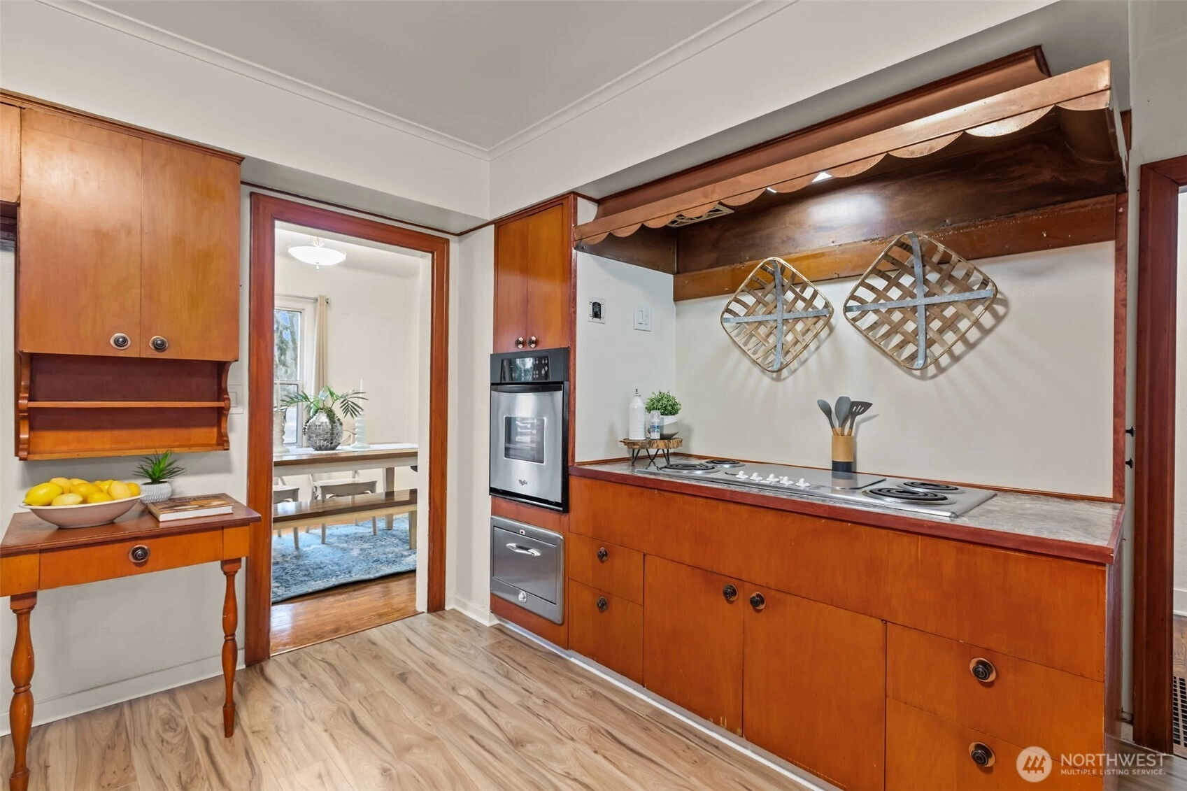 Welcome to this charming and character-filled 3-bedroom, 1-bath home nestled in the heart of Elbe, where vintage details meet thoughtful updates and outdoor adventure is right at your doorstep. A new architectural roof was installed in 2023, along with updated plumbing and electrical, providing peace of mind while preserving the home’s timeless appeal. Inside, beautiful hardwood floors flow throughout, complemented by solid wood built-ins, antique glass doorknobs, and classic craftsmanship that create warmth and personality in every room. The spacious kitchen features new flooring and a delightful retro dining nook with a built-in banquette, evoking nostalgic diner-style charm perfect for morning coffee or cozy meals with friends. The sizable basement offers versatility, ideal for storage, a recreation room or home gym.Upstairs has 2 bedrooms with builtins and a cozy nook with built in desk and shelving. Step outside to enjoy a large fenced yard, deck for entertaining, a carport, and a separate shop, providing ample space for hobbies, projects, and outdoor living.Located just minutes from the entrance to Mount Rainier National Park and close to Mineral Lake and Alder Lake, this home is a dream for outdoor enthusiasts. Enjoy a short walk to downtown Elbe, local dining favorites, and the iconic railroad dining cars. Whether you’re seeking a full-time residence, weekend retreat, or a short-term rental, this inviting home offers the perfect blend of charm, comfort, and adventure.