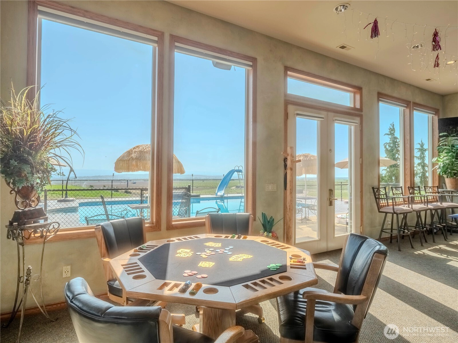 Second Kitchen Bath Off Primary Built-In Vacuum Ceiling Fan(s) Dbl Pane/Storm Window Dining Room Fireplace Fireplace (Primary Bedroom) French Doors Hot Tub/Spa Jetted Tub Wet Bar Wired for Generator