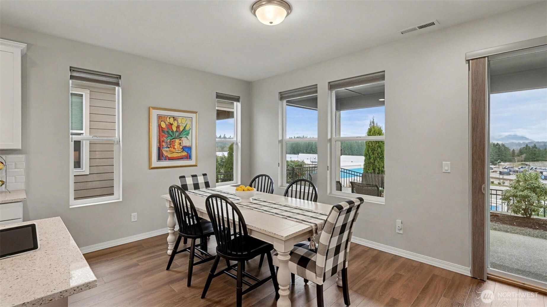 Welcome to your next chapter at Meadow Ridge, a sought-after 55+ community in the heart of Maple Valley. This thoughtfully designed 2-bedroom, 2.5-bath rambler offers comfortable single-level living, stunning territorial views, and a peaceful neighborhood setting. Built in 2021, the home blends modern finishes with a light-filled, open layout. The kitchen anchors the living space with quartz countertops, a large island, gas cooktop, and high-end appliances—perfect for hosting gatherings or enjoying a quiet evening at home. Luxury vinyl plank flooring flows throughout the main living areas and bedrooms, creating both durability and style. A versatile bonus/den space provides flexibility for a home office, hobby room, or additional living area. Large windows frame beautiful views and fill the home with natural light. Step outside to the covered concrete patio, an inviting space to start the day with coffee or unwind in the evening while taking in mountain views and fresh air. Additional features include upgraded Hunter Douglas window treatments with blackout shades in both bedrooms, HardiePlank siding, AC, and modern construction built in 2021. Meadow Ridge residents also enjoy access to a neighborhood clubhouse available for gatherings and events, and the HOA fee includes front yard maintenance. Ideally located near Maple Valley shops, restaurants, parks, and local amenities, this home offers convenient, low-maintenance living in a welcoming community.