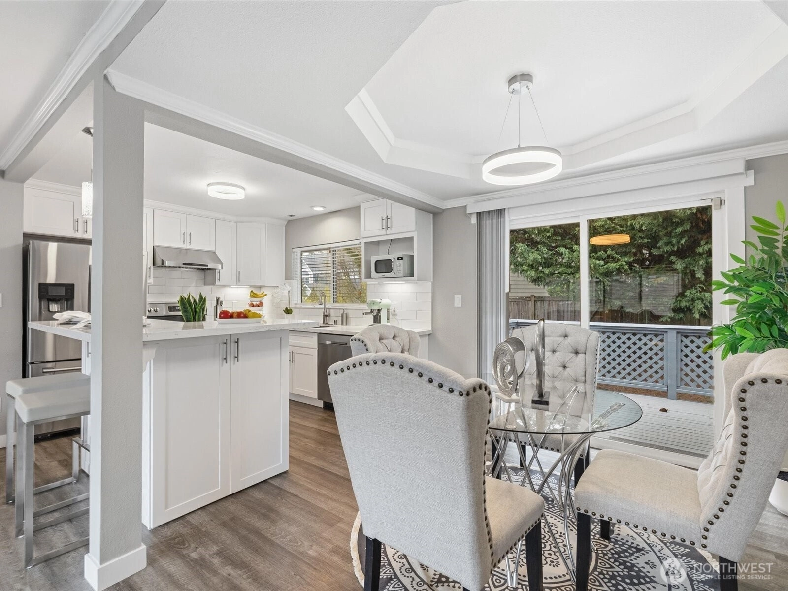 Welcome to an exceptional opportunity in Kirkland’s sought-after North Rose Hill—featuring a fully finished backyard studio and offering one of the area’s most compelling values. This beautifully maintained home blends comfort, convenience, and thoughtful updates, creating a truly versatile living experience. The inviting split-level design offers a functional, well-planned layout, highlighted by a tastefully updated kitchen and bathrooms that bring a fresh, modern touch. The light-filled main level showcases spacious living and dining areas that flow seamlessly into the kitchen, complete with stainless steel appliances and generous workspace. Downstairs, enjoy a large secondary living area perfect for relaxing or entertaining, along with a flexible den or office space. The lower level is also plumbed for a second kitchen, offering excellent potential for multi-generational living or added flexibility. Step outside to a fully fenced backyard designed for both gathering and unwinding, featuring a large deck and open lawn. The standout feature is the fully finished backyard studio—ideal for a home office, fitness space, creative retreat, or private escape. Ideally located near parks, shopping, and everyday amenities, this home offers an incredible lifestyle in one of Kirkland’s most desirable neighborhoods.