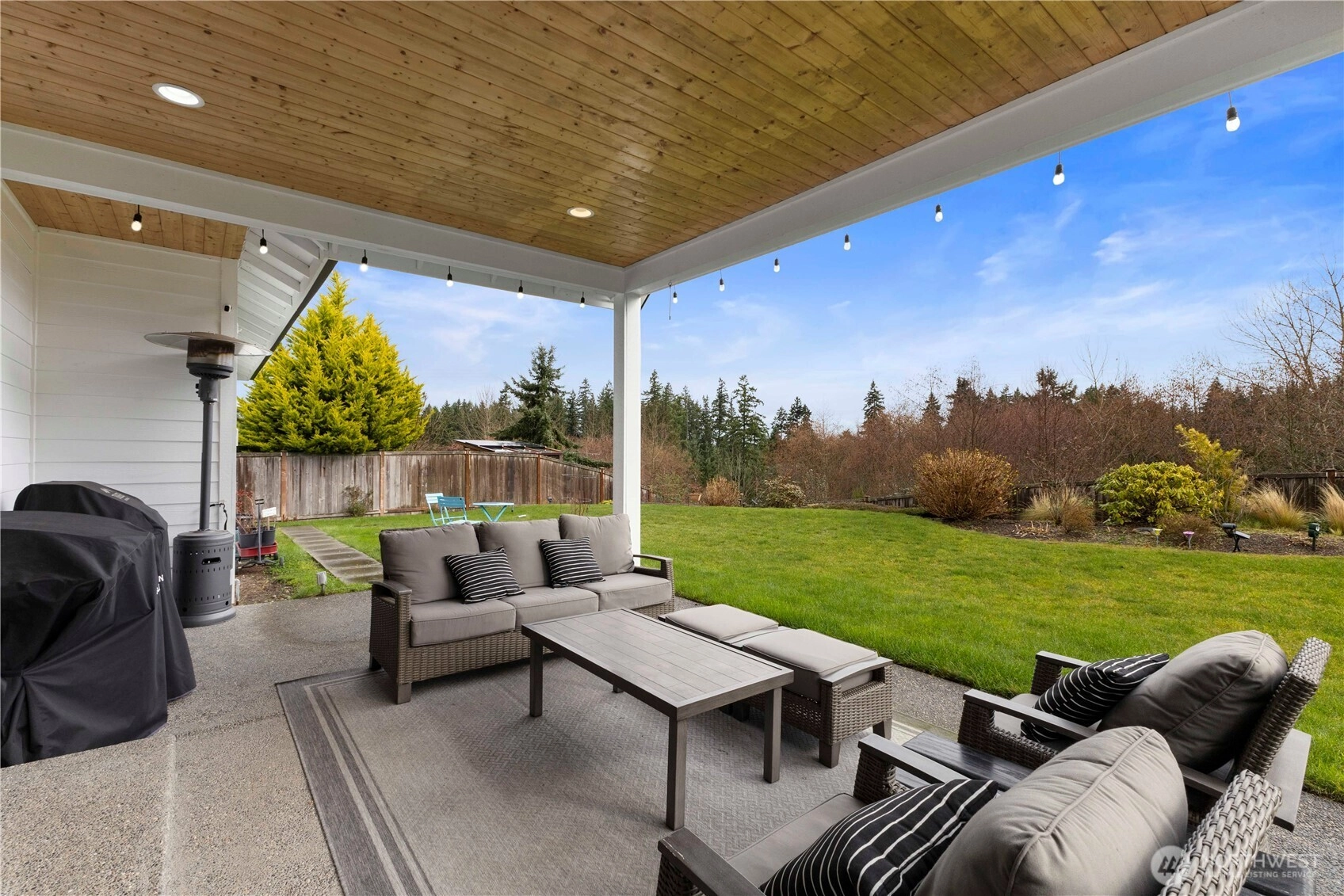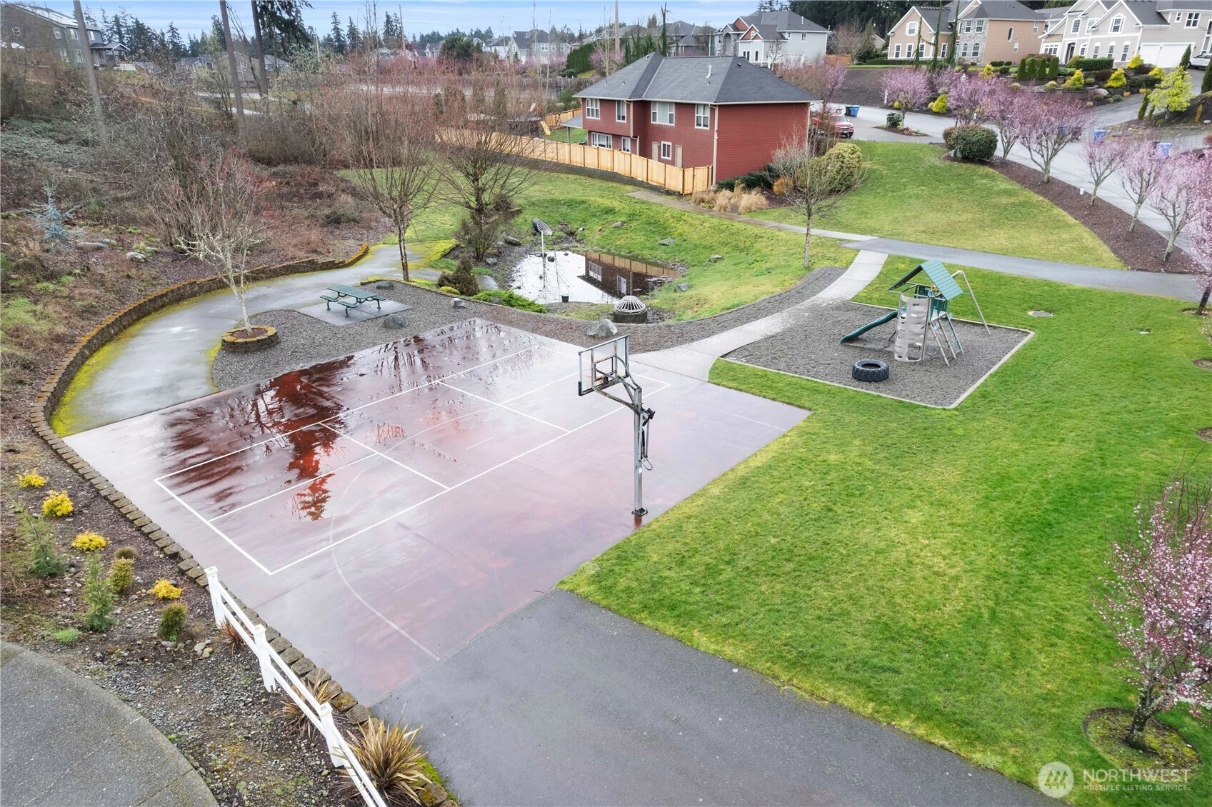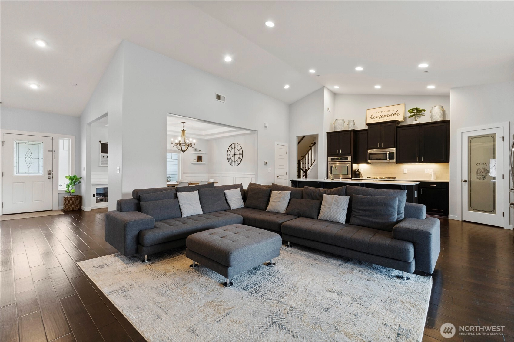 Welcome home to this beautifully maintained 4-bedroom, 2.5-bath rambler with a spacious bonus room upstairs, nestled in the gated Grandview community in desirable Lake Tapps. Located within the coveted Dieringer School District, this home offers the perfect blend of comfort, privacy, and convenience. Step inside to soaring vaulted ceilings and an inviting great room featuring newer interior paint and a cozy fireplace—perfect for relaxing evenings at home. The thoughtfully designed floor plan includes ceiling fans in every bedroom, a generous bonus room ideal for a home office, media space, or playroom, and a large utility room complete with a utility sink for added functionality. The primary suite is a true retreat, boasting newer interior paint, a soaking tub, a fireplace, two large closets and plenty of space to unwind at the end of the day. The kitchen shines with newer quartz countertops, double ovens, and a massive island offering both style and practicality for everyday living and entertaining. Outside, enjoy the private, fully fenced yard space with a covered patio designed for year-round entertaining. Permanent Govee lighting adds charm and convenience in every season, while new exterior paint enhances the home’s curb appeal. An EV hookup adds modern efficiency to this already exceptional property. With its gated setting, expansive lot, and thoughtful upgrades throughout, this Lake Tapps gem is ready to welcome you home.