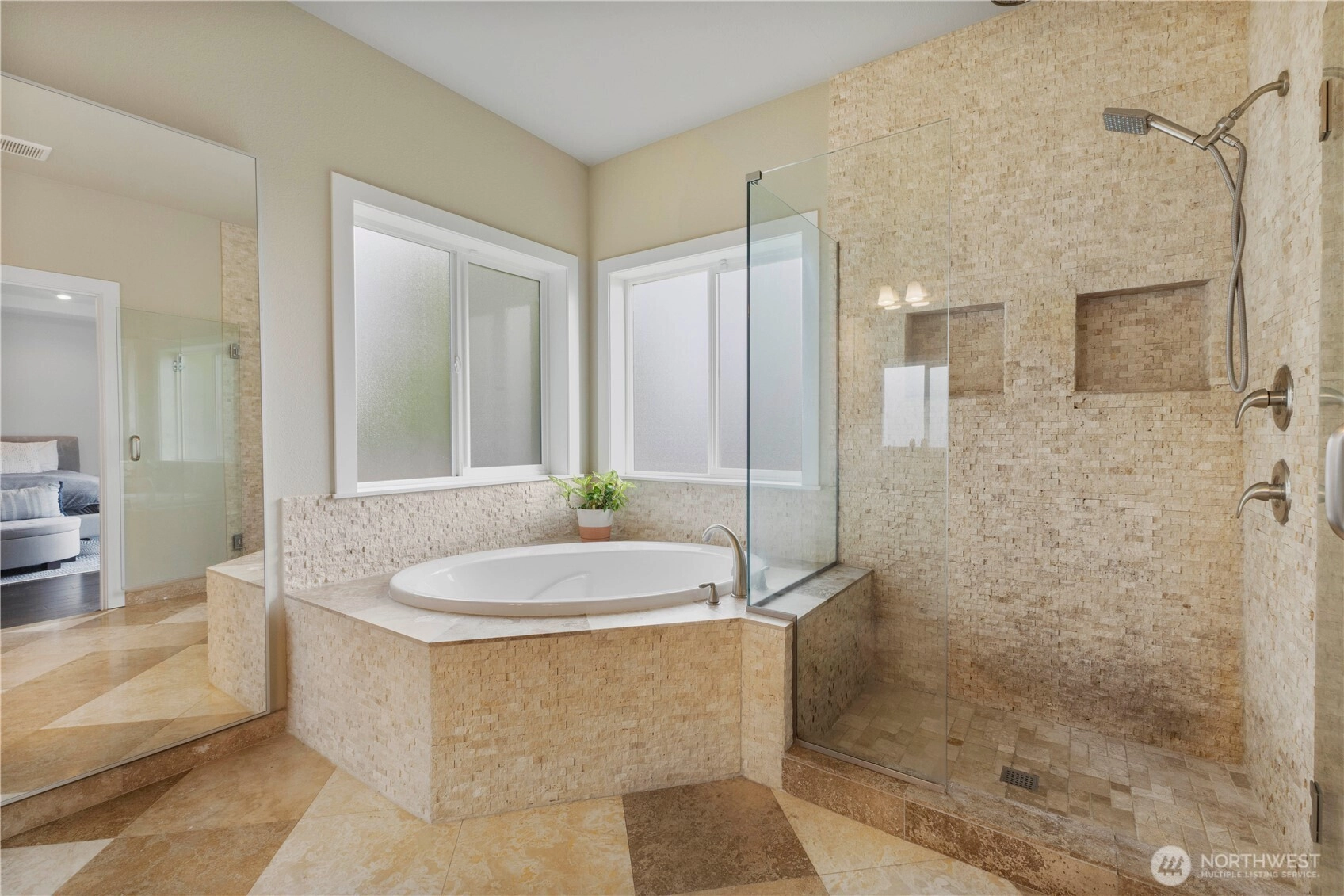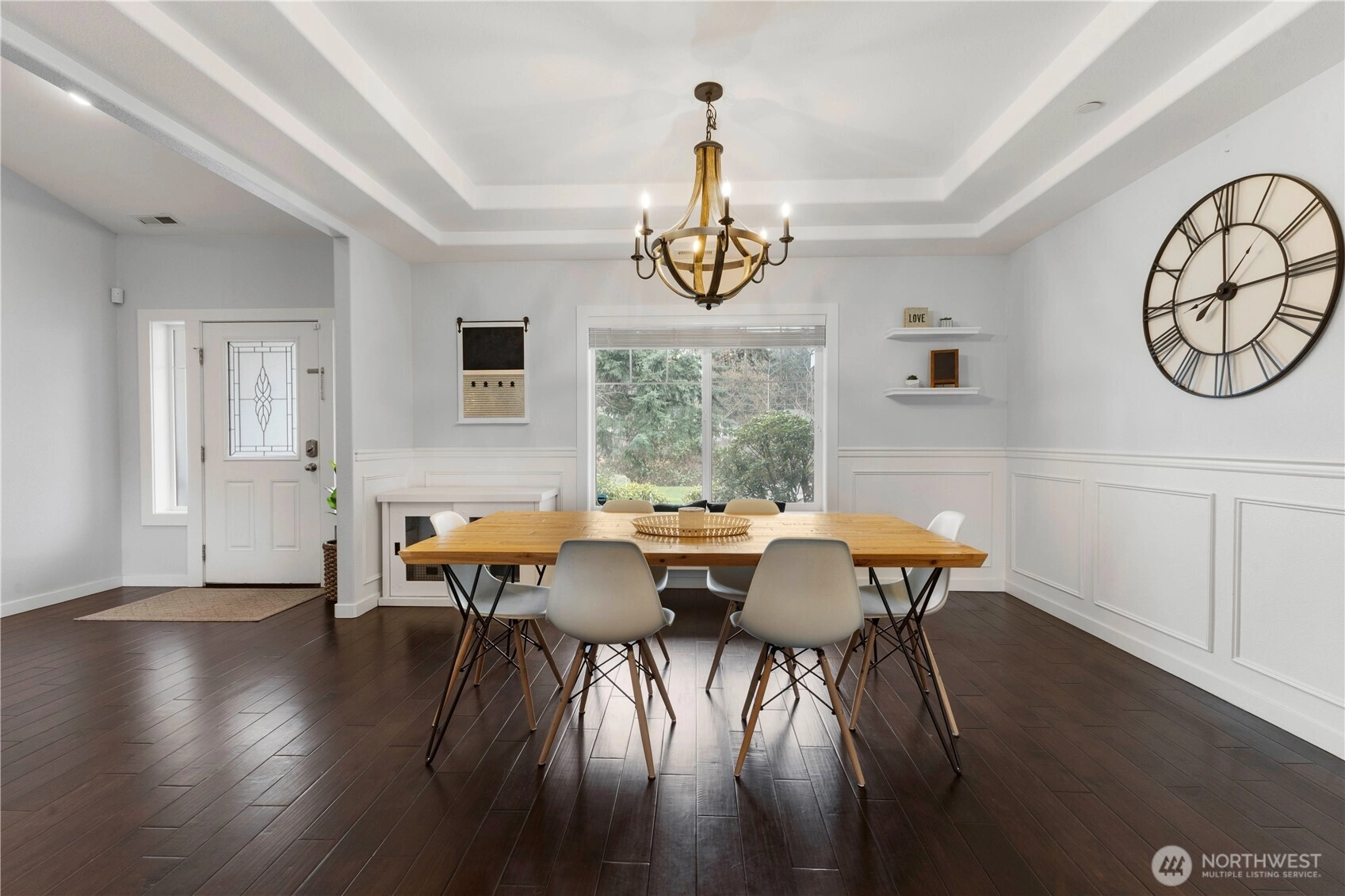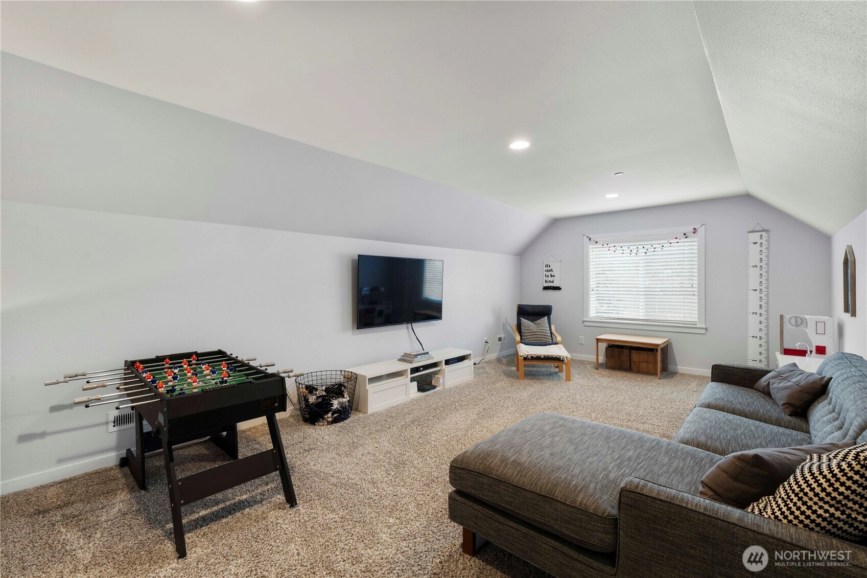 Welcome home to this beautifully maintained 4-bedroom, 2.5-bath rambler with a spacious bonus room upstairs, nestled in the gated Grandview community in desirable Lake Tapps. Located within the coveted Dieringer School District, this home offers the perfect blend of comfort, privacy, and convenience. Step inside to soaring vaulted ceilings and an inviting great room featuring newer interior paint and a cozy fireplace—perfect for relaxing evenings at home. The thoughtfully designed floor plan includes ceiling fans in every bedroom, a generous bonus room ideal for a home office, media space, or playroom, and a large utility room complete with a utility sink for added functionality. The primary suite is a true retreat, boasting newer interior paint, a soaking tub, a fireplace, two large closets and plenty of space to unwind at the end of the day. The kitchen shines with newer quartz countertops, double ovens, and a massive island offering both style and practicality for everyday living and entertaining. Outside, enjoy the private, fully fenced yard space with a covered patio designed for year-round entertaining. Permanent Govee lighting adds charm and convenience in every season, while new exterior paint enhances the home’s curb appeal. An EV hookup adds modern efficiency to this already exceptional property. With its gated setting, expansive lot, and thoughtful upgrades throughout, this Lake Tapps gem is ready to welcome you home.