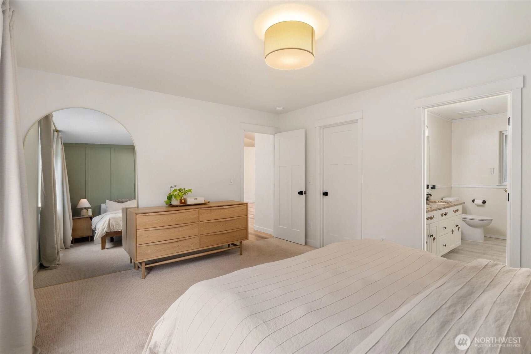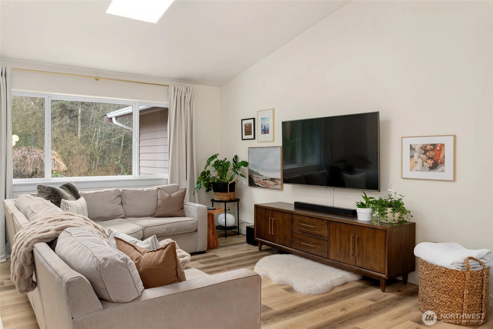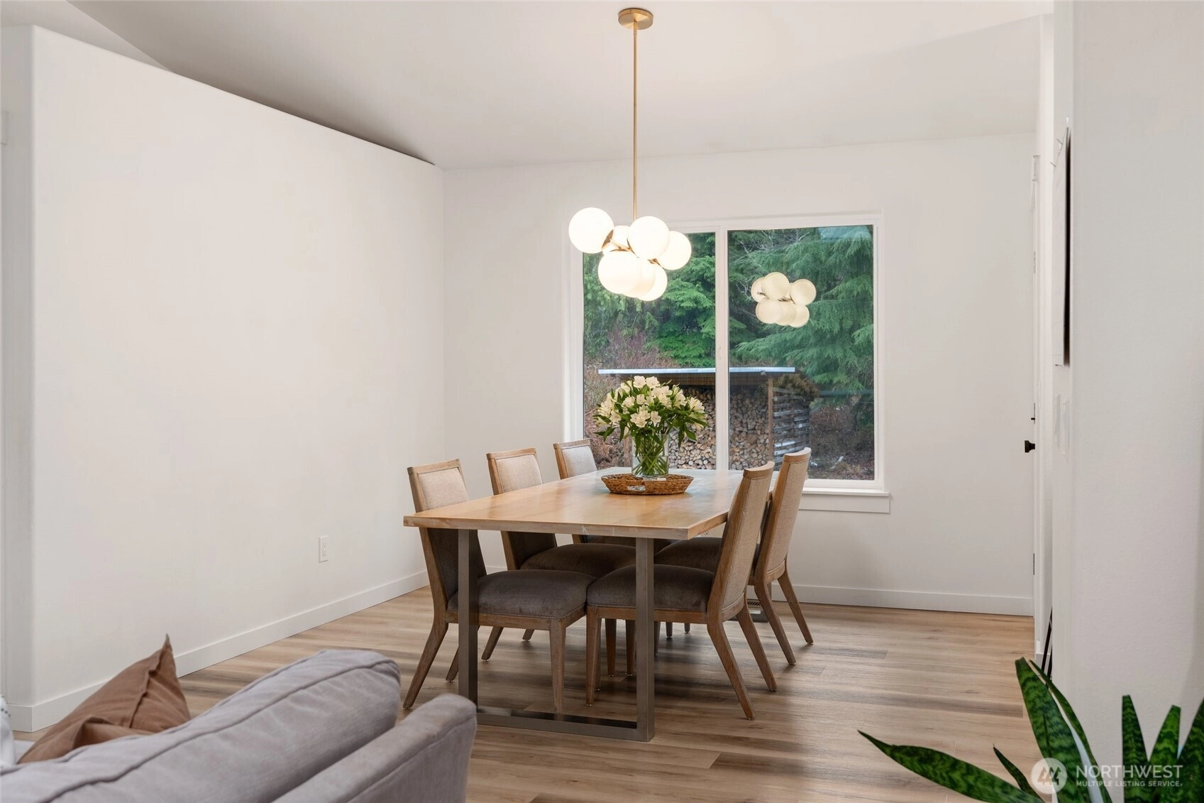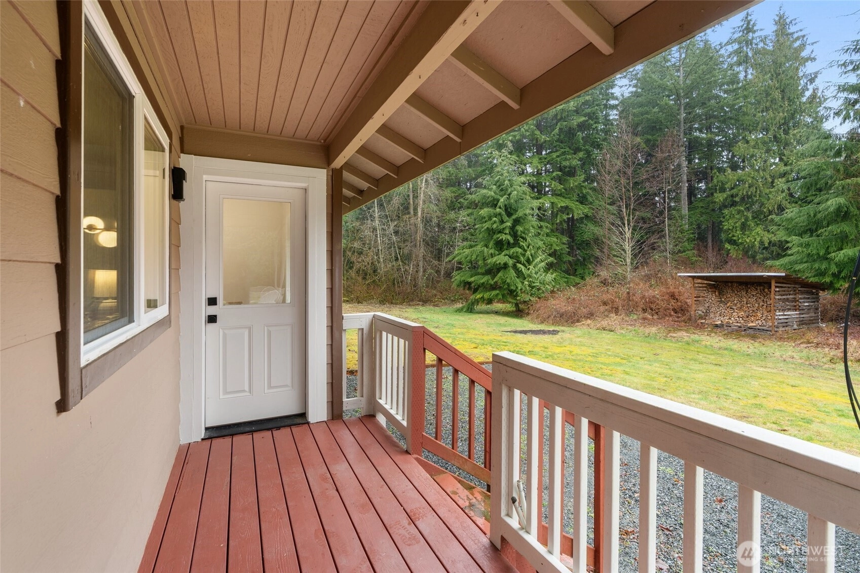 Polished Arlington rambler on a massive 5 + acre lot. This beautifully updated 3 bedroom 2 bath home offers almost 1500 square feet of living space with fresh interior updates throughout. LVP flooring, new interior doors and trim, custom two tone cabinetry with new hardware, granite countertops + kitchen-Aid appliances give the home a modern and refined feel. The primary suite features an attached bath with dual sinks, a sage accent wall, and new carpet, while the additional bedrooms also have new carpet and plenty of natural light. Vaulted ceilings with skylights enhance the bright open floor plan, highlighted by a West Elm dining fixture, built-in accent walls, and charming shiplap details. The updated secondary bath boasts a modern vanity and tile. New windows, tankless water heater and a high-efficiency heat pump + furnace with air conditioning provide comfort year round. Outside, a 2 car garage, additional outbuilding, and storage shed offer plenty of space for projects, hobbies, or storage. This home is on a 4 bed septic system that could be ideal for future DADU or addition. This home blends thoughtful updates, modern style, and a serene private setting on a generous lot, ready to be enjoyed as your forever home.