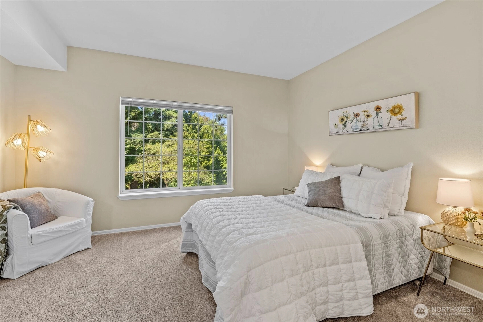 Pre-Inspected and truly move-in ready! Updated middle-floor condo nestled between Woodinville and Bothell in the desirable Woodinview community, offering the rare combination of single-level living with NO STAIRS and NO RENTAL CAP, making it an exceptional opportunity for snowbirds, investors, or anyone looking to live in now and rent later. Step inside this immaculate home to discover updated bathrooms, fresh paint, LVP flooring, 9-foot ceilings, and an open layout that feels bright and welcoming. The well-equipped kitchen features stainless appliances, while the spacious Primary Suite offers a spa-like 3/4 bath and generous closet. A second bedroom flexes beautifully as a home office or den. In-unit washer and dryer and a private deck round out the comfort and convenience. The Woodinview community delivers sports courts, a playground, pet-friendly grounds, pickleball courts just up the street, and ample parking. Lock-and-leave living doesn't get easier than this. Located minutes from the freeway, bus lines, Burke Gilman Trail, UW Bothell, both downtown Woodinville and Bothell, and Kirkland and Totem Lake, with top-rated Northshore Schools nearby. Whether you're seeking a turnkey investment, a seasonal retreat, or a home with long-term rental potential — this one checks every box. Note: Listing photos are staged; home is unfurnished.