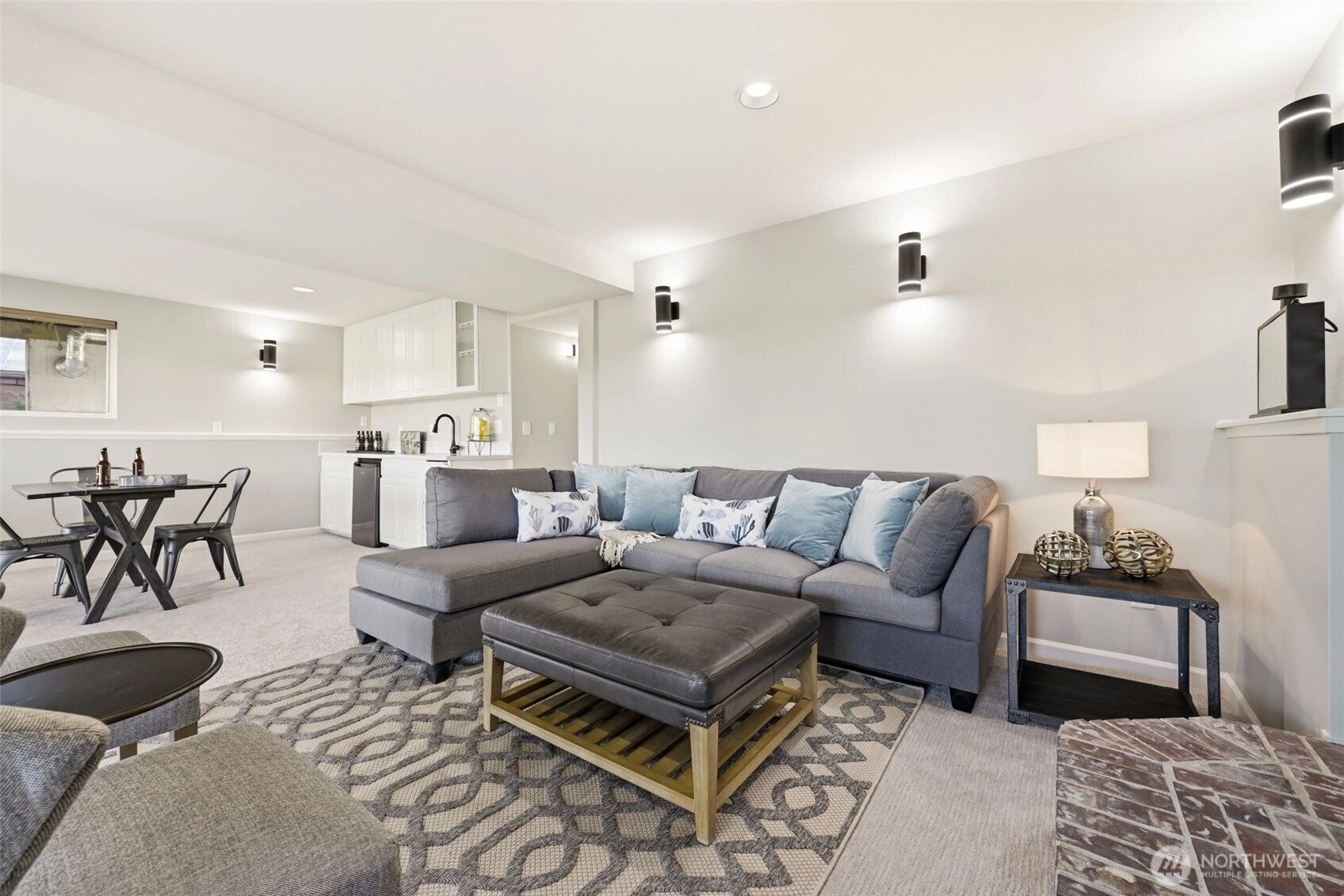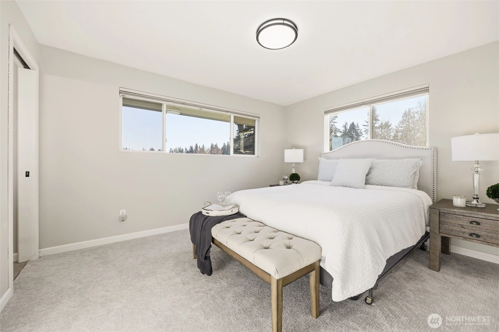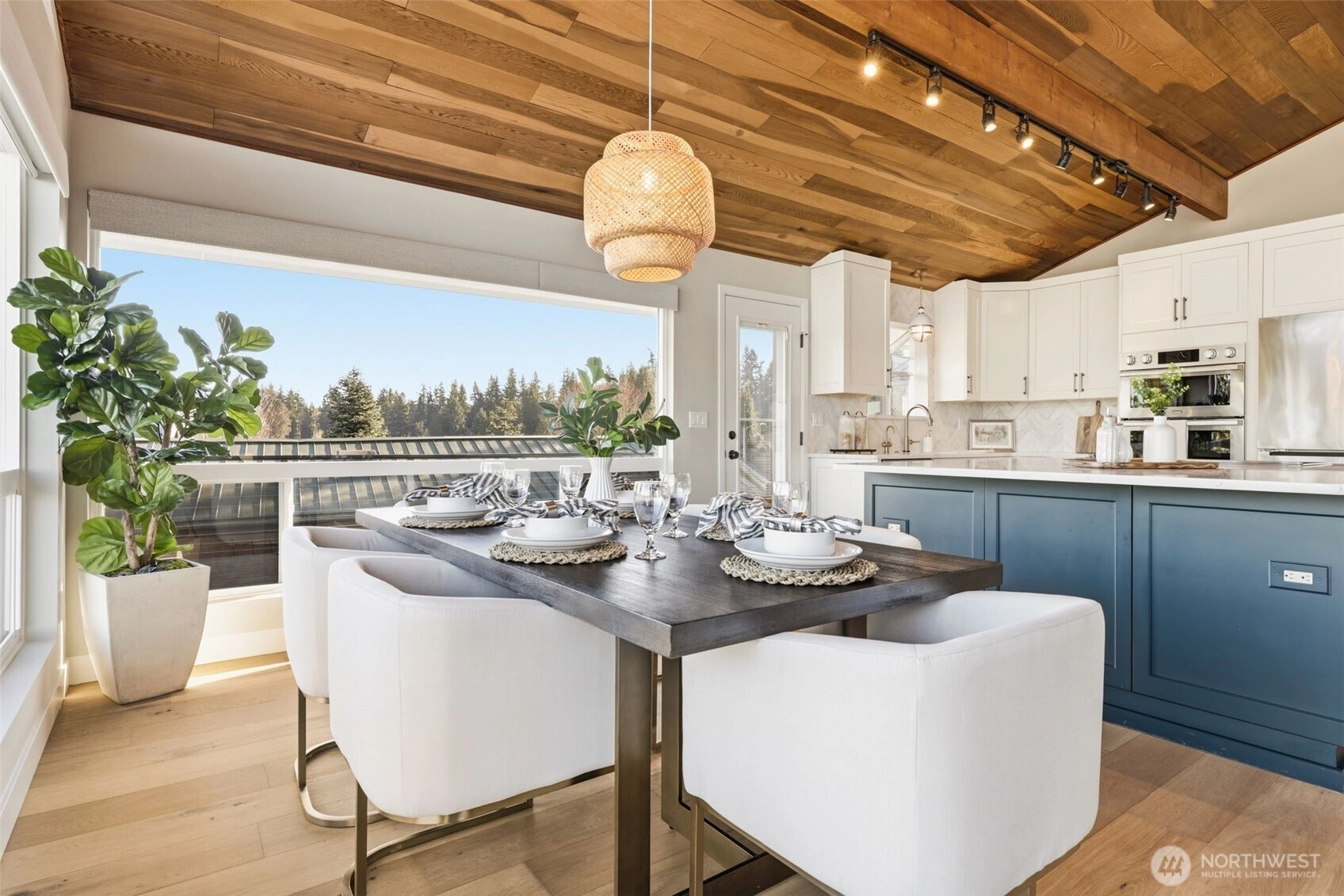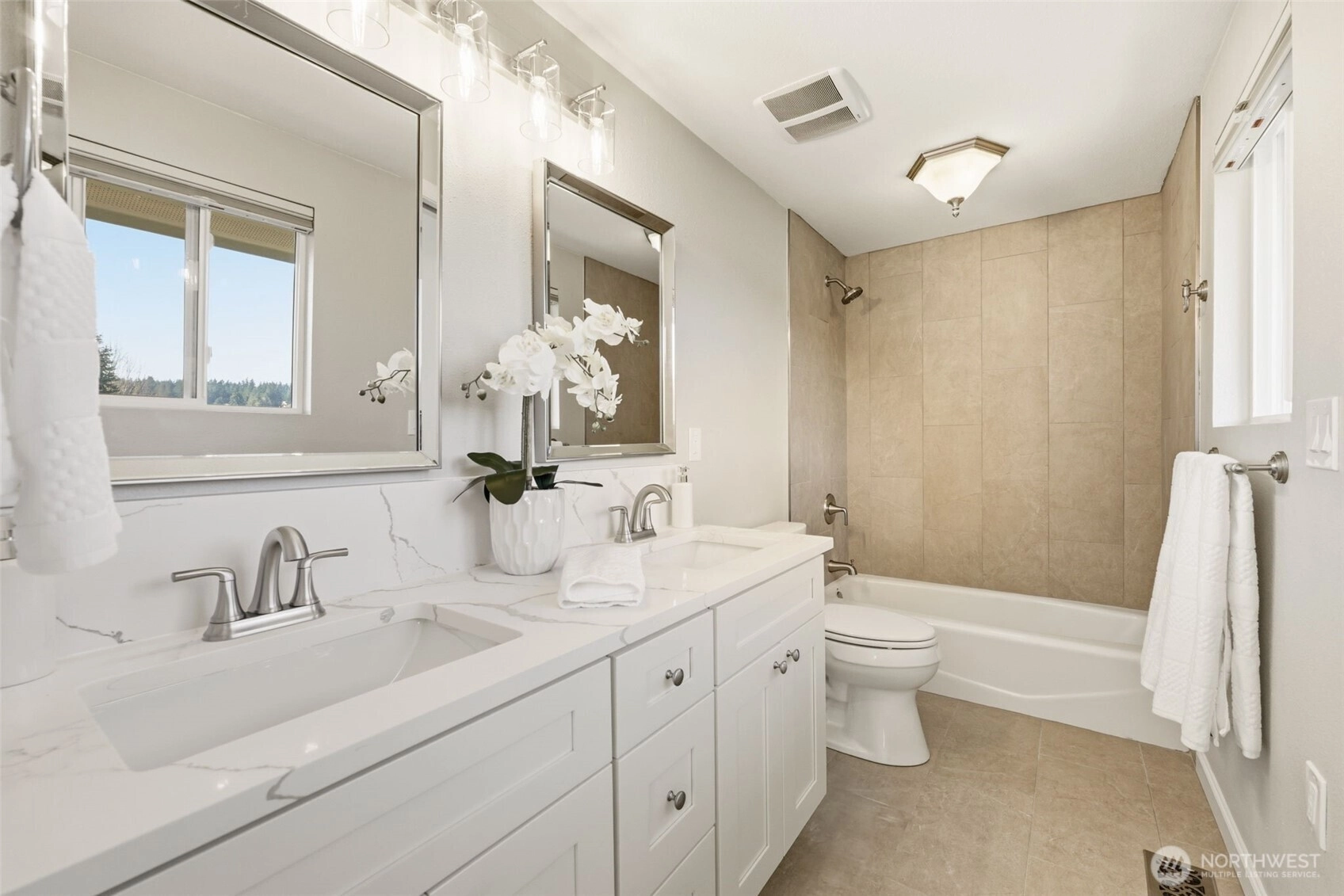 A true Lake Tapps treasure, this exceptional Lakeridge home sits above the shoreline capturing breathtaking panoramic views of Mt. Rainier, the Cascade Range, & the lake’s shimmering waters. Positioned on a beautifully landscaped .30-acre lot with 70 feet of waterfront, this property offers an incredible blend of natural beauty & refined living. The home features 4 bedrooms & 3 bathrooms with a bright, open layout designed for both everyday comfort & entertaining. The spacious living room showcases vaulted ceilings & a cozy fireplace, creating an inviting space while framing stunning lake & mountain views. At the heart of the home is the beautifully remodeled chef’s kitchen, complete with an oversized island, induction cooktop (gas ready), & quality finishes that make the space both functional and impressive. Additional highlights include new carpet throughout, a dedicated office, & two fireplaces. The primary suite features an updated bathroom with dual vanities, while the lower-level bath has been fully remodeled with freestanding tub, new tile, & vanity. Outdoor living is exceptional with a large view deck, covered patio, hot tub, & fire pit. The professionally designed grounds feature over $500,000 in landscaping, highlighted by a dramatic fountain and cascading waterfall. Waterfront amenities include 70 feet of shoreline, a private dock, & covered boat lift. Additional features include RV parking with 30 amp power hookup. Access to Jenks Park & boat launch.