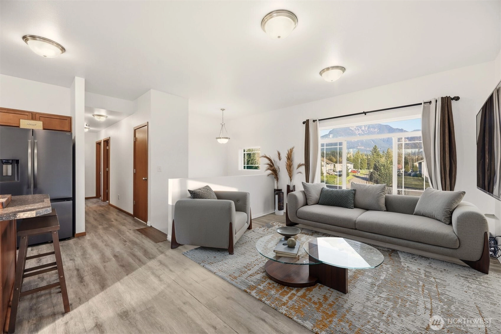 Escape to the foothills of the Cascades where space, scenery, and adventure come together. Nestled on over an acre at the end of a peaceful cul-de-sac, this beautifully updated 3-bedroom, 2.75-bath home offers breathtaking mountain views and the kind of outdoor lifestyle the Pacific Northwest is known for. The expansive yard, complete with fruit trees and wide open lawn - creates the perfect setting for gatherings, summer evenings around the fire pit, gardening, or simply enjoying the quiet beauty of nature. Step inside to a bright, refreshed interior featuring newly installed hickory vinyl stairs, luxury vinyl plank flooring upstairs, and freshly painted spaces that feel both modern and welcoming. The kitchen shines with new appliances and opens to a brand-new deck, an ideal spot for morning coffee while watching the mountains glow at sunrise. Just beyond your backyard sits the Wallace River Salmon Hatchery, offering seasonal fishing opportunities and a front-row seat to local wildlife. Outdoor enthusiasts will love having Wallace Falls State Park minutes away along with more than 50 hiking trails within 15 miles, scenic apple orchards in your backyard, and incredible rafting along the Skykomish River. This is more than a home, it’s a gateway to the Northwest lifestyle where mountain views, outdoor adventure, and peaceful living meet. Welcome Home!