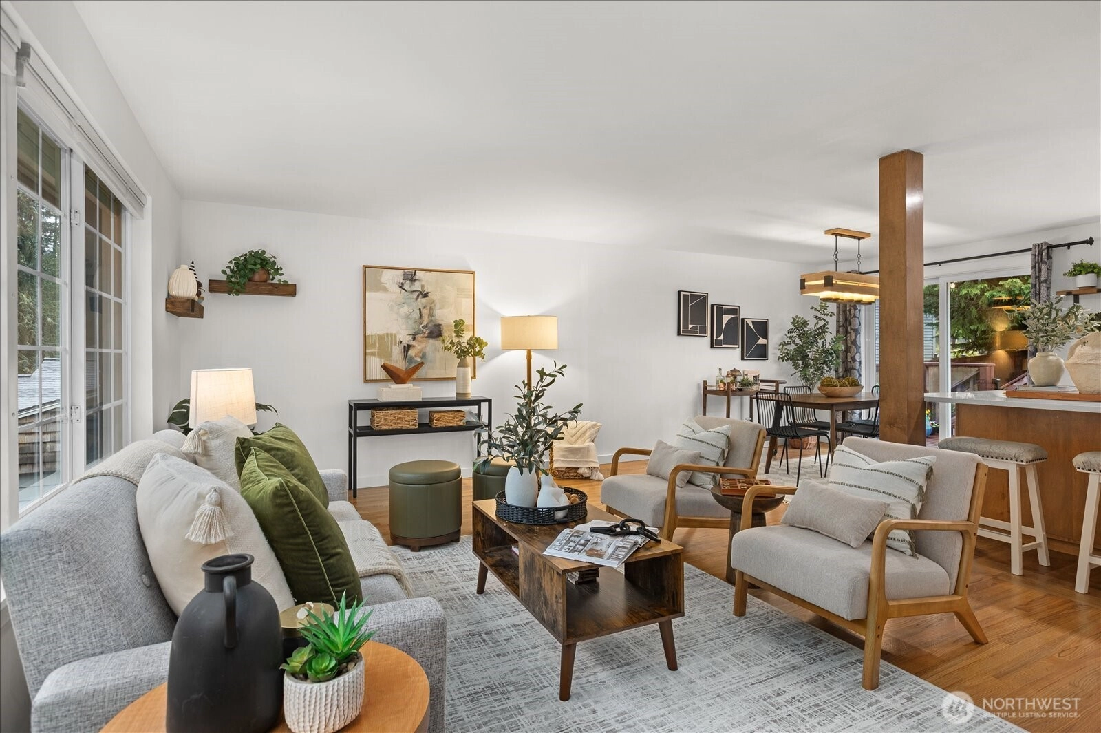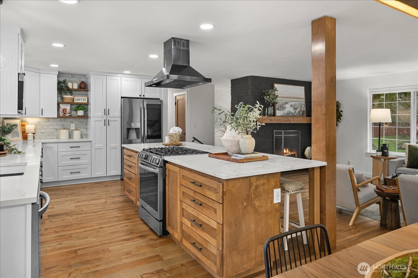 Fully remodeled Edmonds home on beautiful corner lot offers space, style and move-in ready living. The main living area was reimagined with the addition of a structural beam, creating a bright open-concept layout between the kitchen, dining, and living spaces perfect for entertaining and everyday living. The updated kitchen features stylish finishes and flows seamlessly into the heart of the home. Hardwood and luxury vinyl plank flooring run throughout. Complemented by beautifully remodeled bathrooms, custom closet organizers and a spacious primary w/ en-suite. Lower level offers expansive living room with potential for 4th room/office, large laundry and 1/2 bath. Outdoor living is equally impressive with a Trex deck, bonus patio, and fire pit area ideal for relaxing evenings or gathering with friends. The expansive 1/4 acre property is fully fenced and offers exceptional privacy along with a large garage, brand new asphalt driveway, and additional gravel parking with room for RVs, boats, or hobbies. Full tear off and replaced roof, new water heater, insulated garage doors w/ smart openers and bonus garage heater makes great shop space. Fully inspected, professionally cleaned, landscaped, and staged, this home is truly move-in ready. Located just minutes to downtown Edmonds, waterfront parks, dining, shopping, and commuter routes. The perfect balance of privacy, convenience, and modern living!