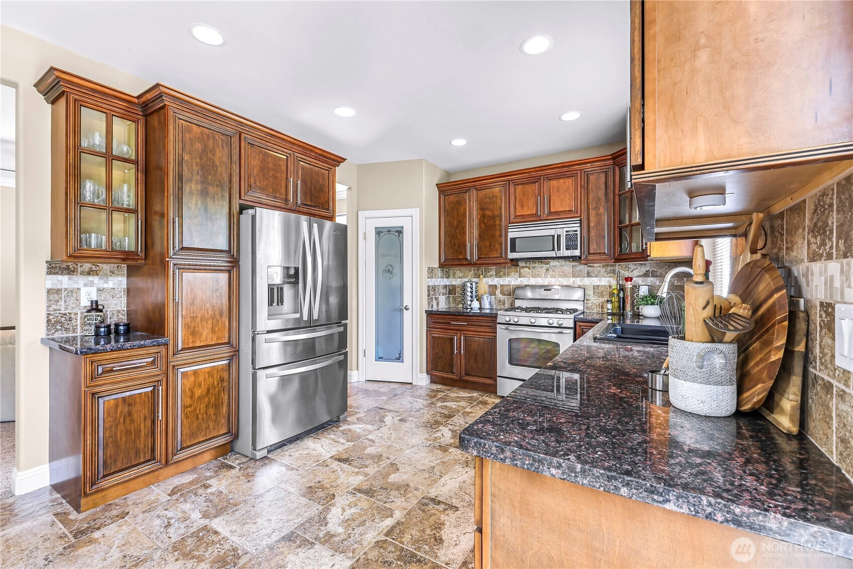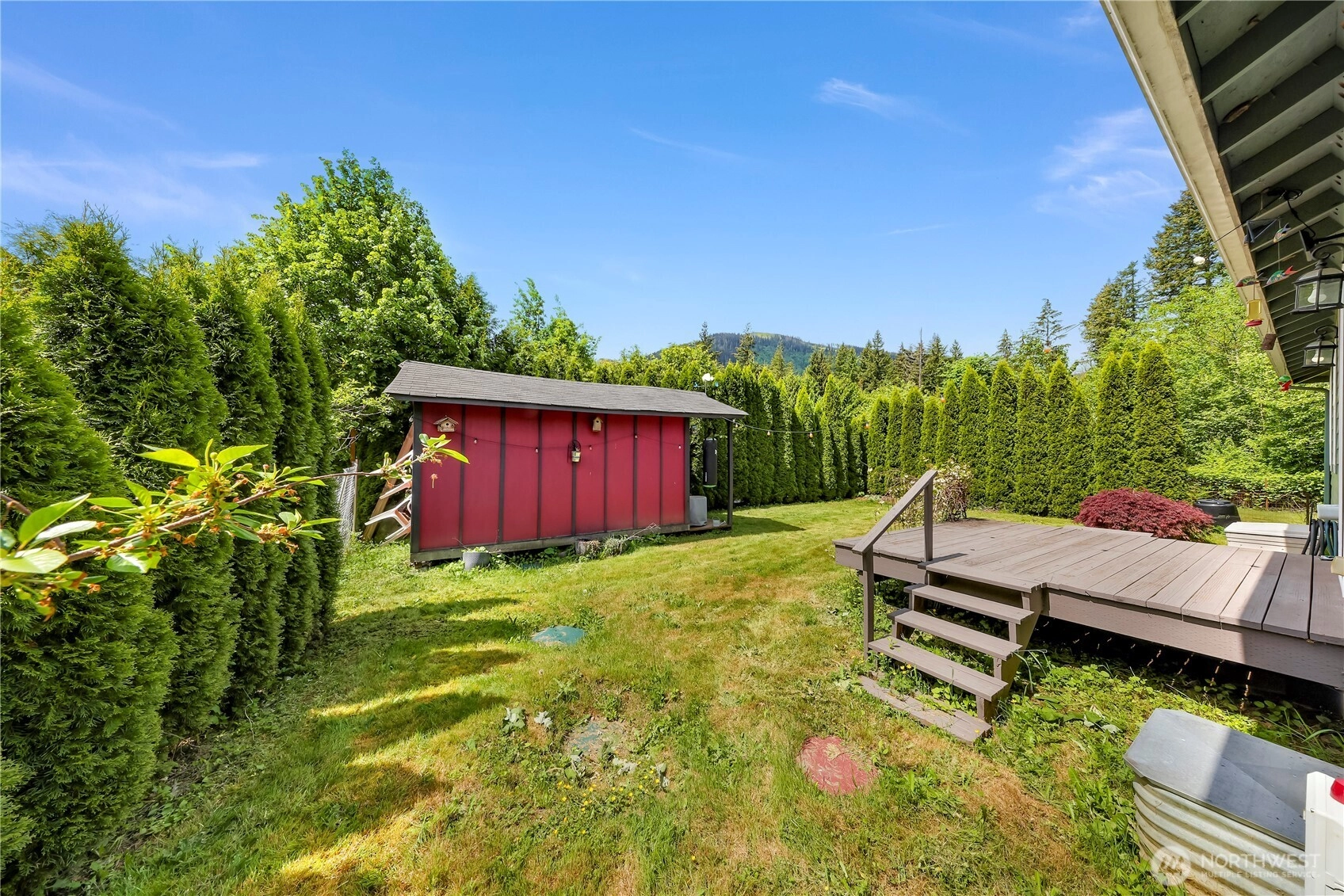 Single-level custom home with territorial and mountain views in a quiet Kendall neighborhood, on the foothills of Mt. Baker Ski Area! Set on a flat, fully fenced lot with mature landscaping and privacy hedges, this property offers rare seclusion — a vacant lot and alley to the right and privately owned land behind ensure no immediate rear neighbors. Enjoy a level driveway with exposed aggregate concrete, welcoming front porch, spacious backyard, comfortable deck for outdoor relaxation, and a versatile storage shed. Inside, 9’ ceilings, crown molding, travertine-style tile floors, and a stone fireplace create warmth and character. The thoughtfully designed floor plan offers both openness and privacy — a generous foyer opens to a large living room, while a cozy family room with fireplace flows seamlessly into the kitchen and dining area. Granite countertops, stainless steel appliances, and a pantry complete the well-appointed kitchen. Bedrooms are privately situated down a separate hallway. The primary suite features a soaking tub and separate shower. Solid mahogany 42” front door, newer exterior paint, and quality materials throughout reflect pride of ownership. Located in the scenic foothills of the North Cascades, just 30–40 minutes to Bellingham. Minutes from Mount Baker Ski Area, Silver Lake Park, hiking trails, waterfalls, breweries, and year-round outdoor recreation. A perfect full-time residence or mountain retreat.